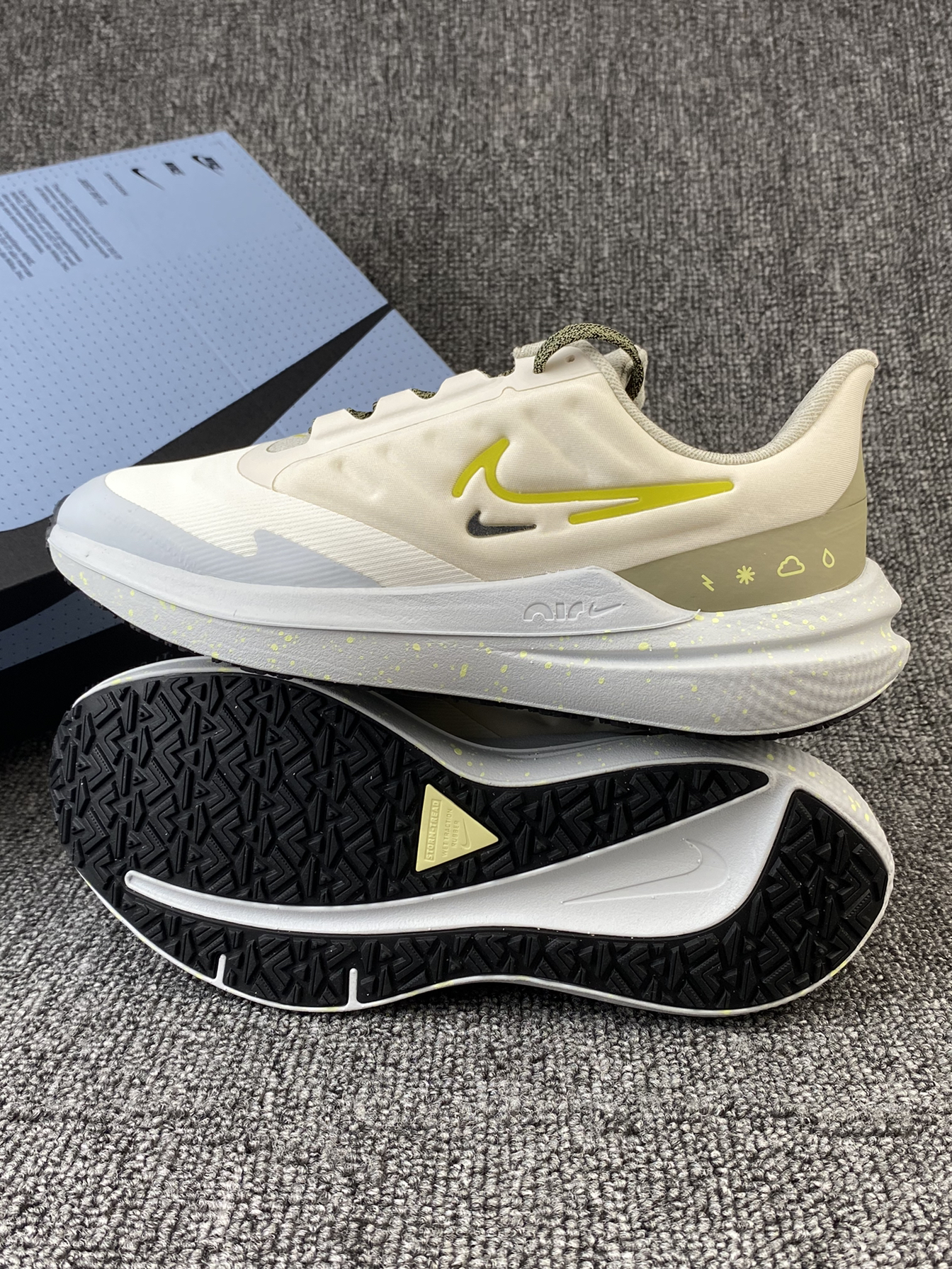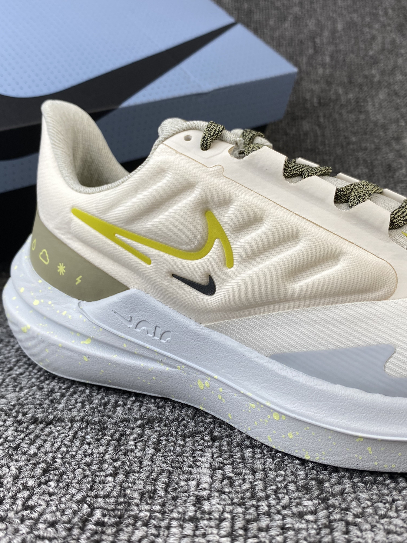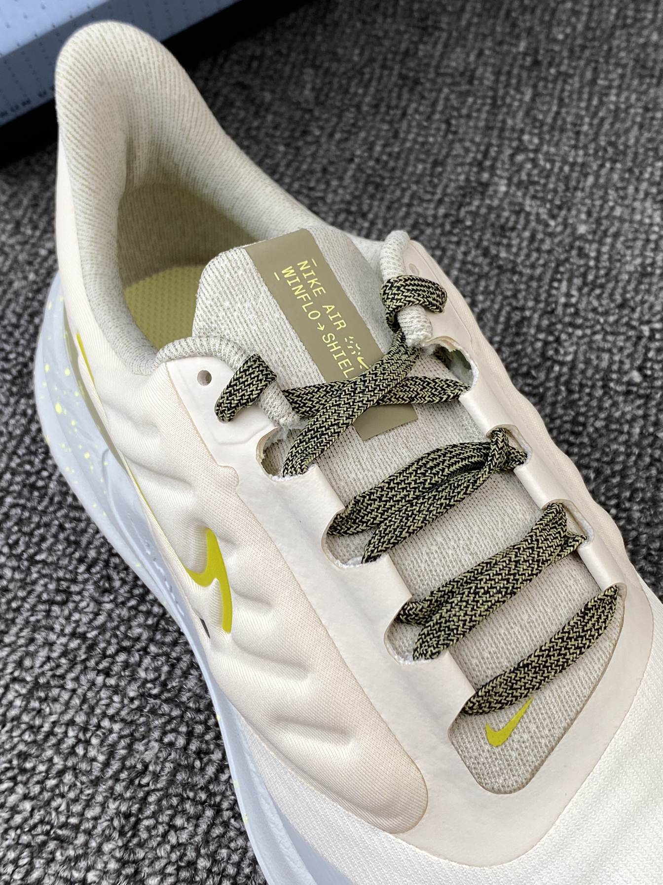 👟Nike Winflo 9 Shield 跑鞋 ✨Winflo 9都不陌生吧!这次发售新配色啦!鞋子整体以白黄色为主,很清新亮眼的色调。 🌸鞋面采用的是织物以及合成材质拼接的,同时加入了拒水处理,就算是在下雨天穿着也不用担心啦!另外鞋侧加入了太空棉,很好的提升了鞋子的舒适感。中底部分内置全掌Air缓震配置,脚感很好。 🌟颜值很高且很好穿的跑鞋真的很爱!目前刚刚发售,喜欢的我觉得可以再等等~