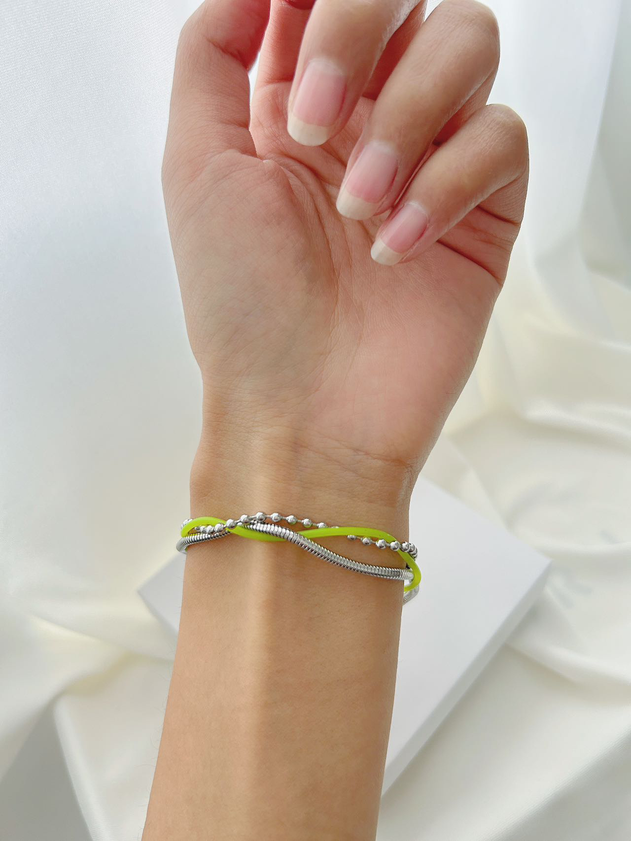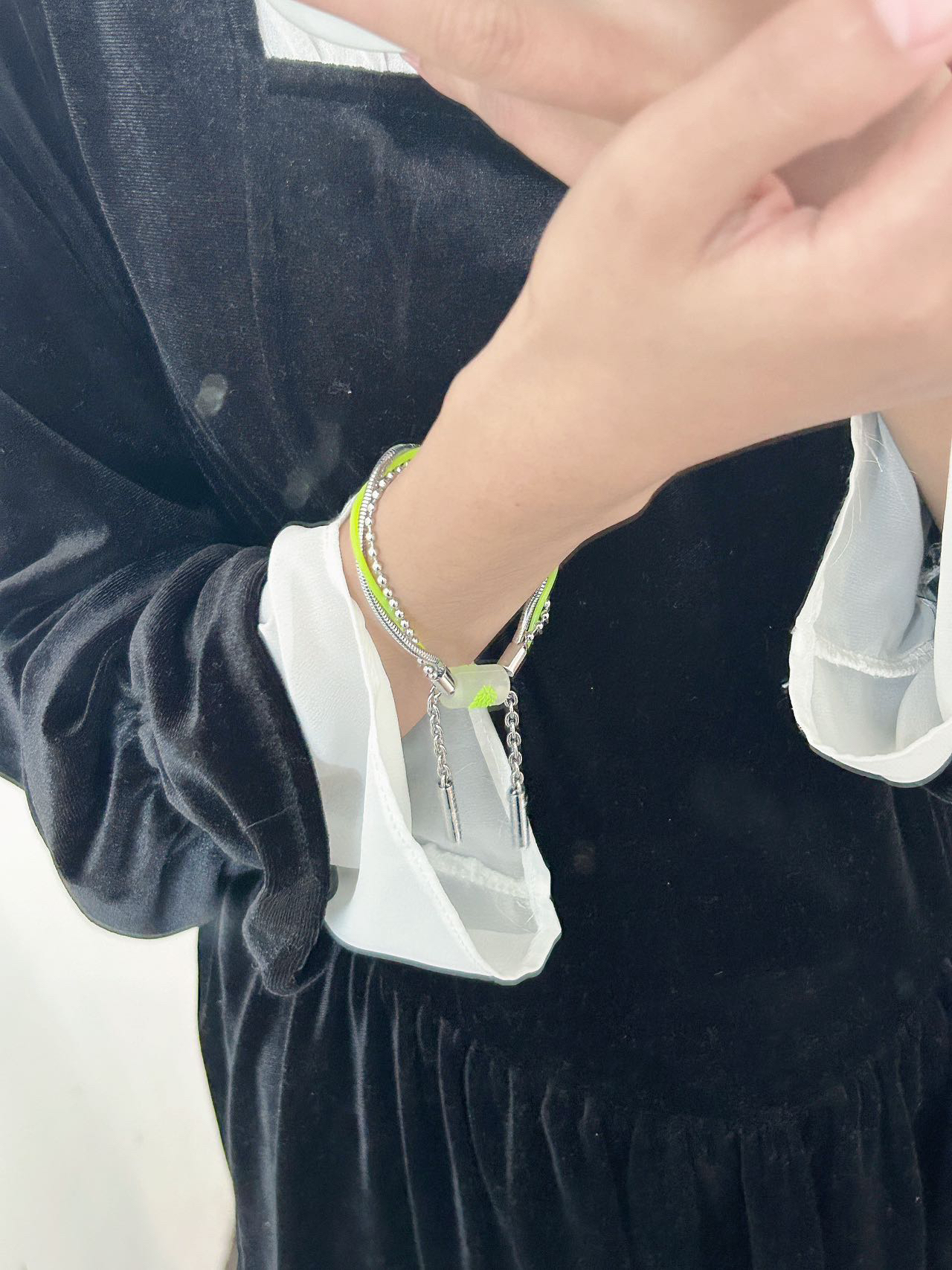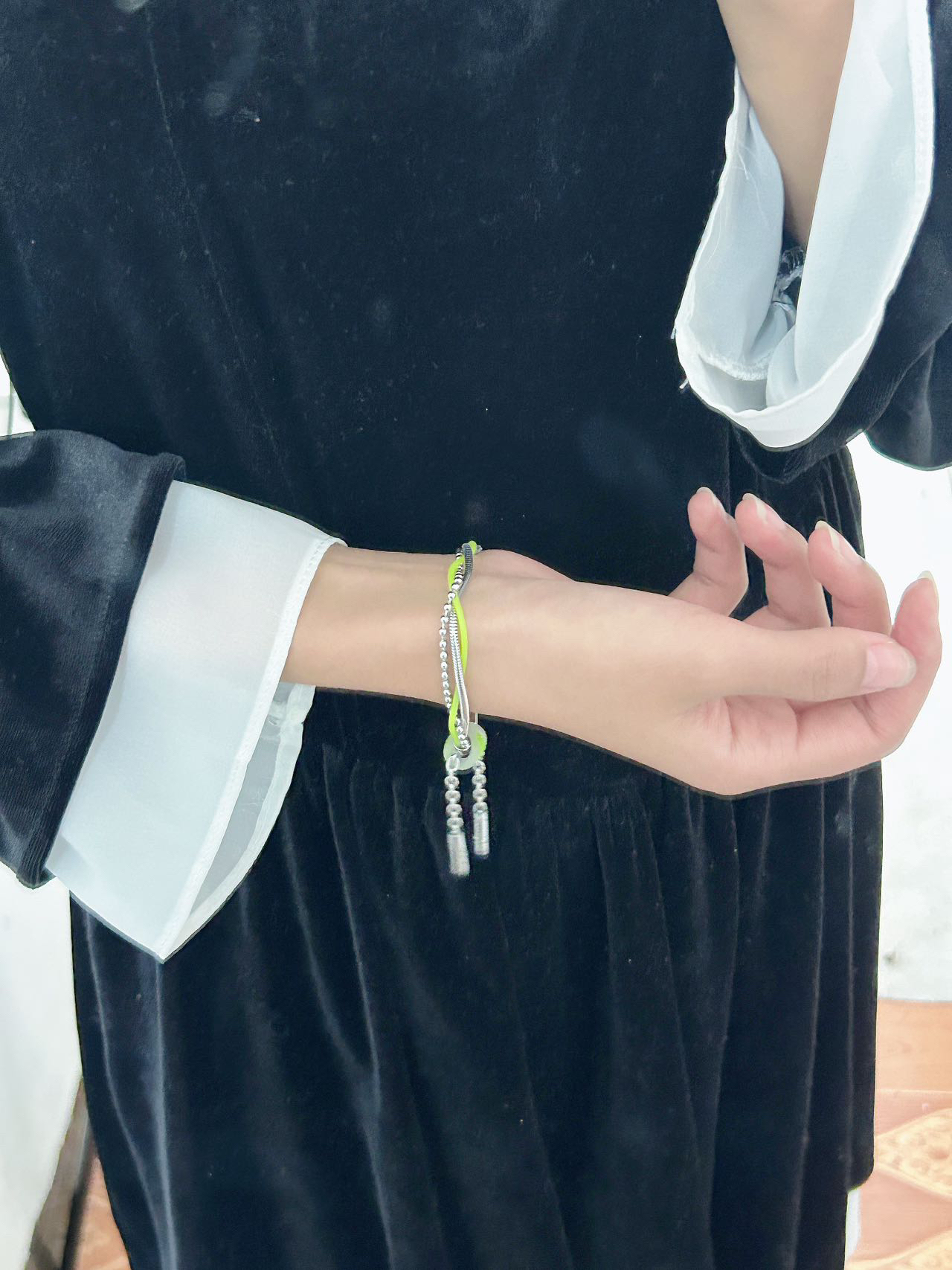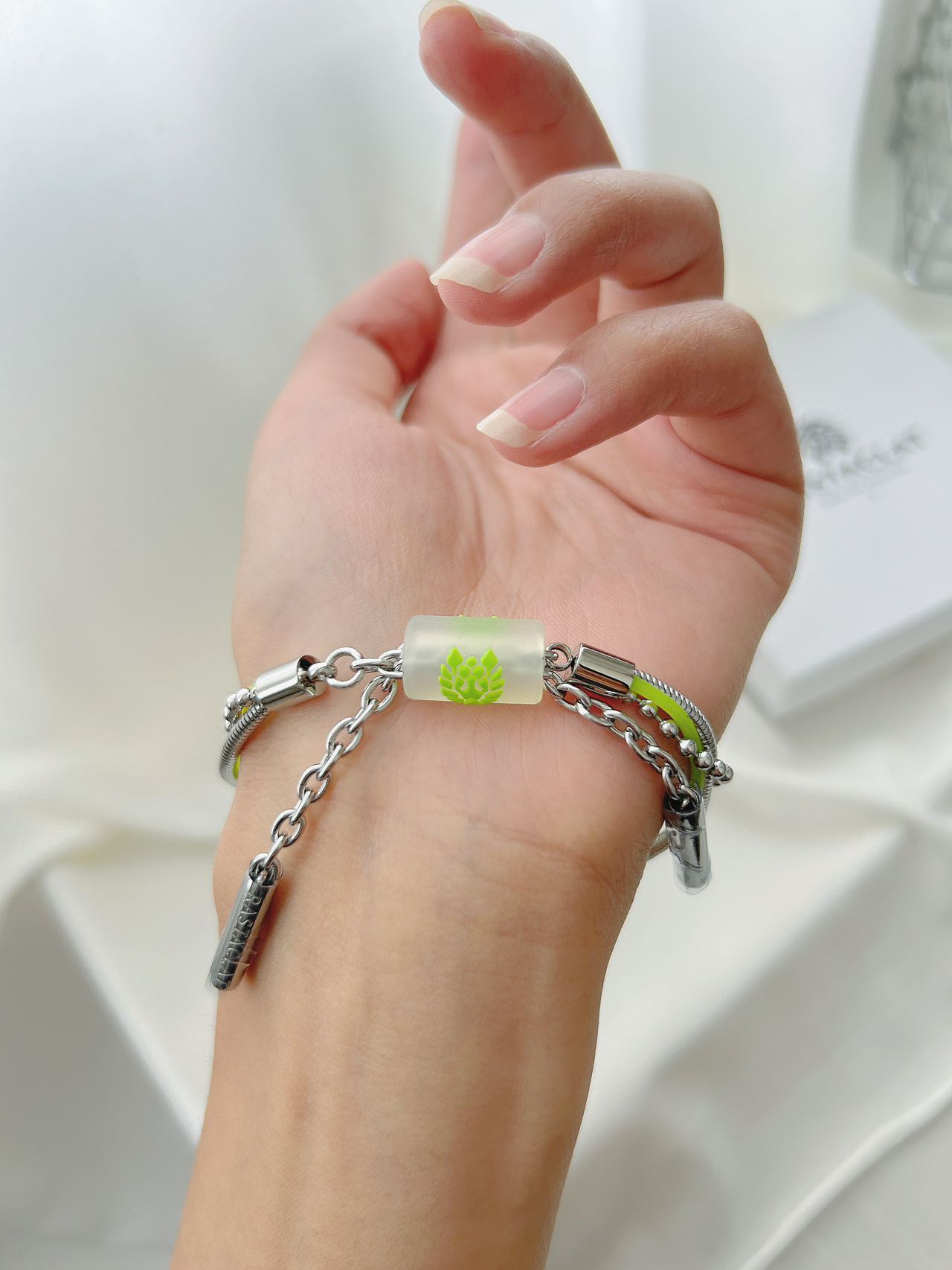 炒鸡好看呐~三层叠戴设计,一条就能get叠戴效果,终于不用花心思搭配手链啦~ 绿色巧妙的融合到银饰里,真的一绝,可以随时调节大小,四季都可🦁~