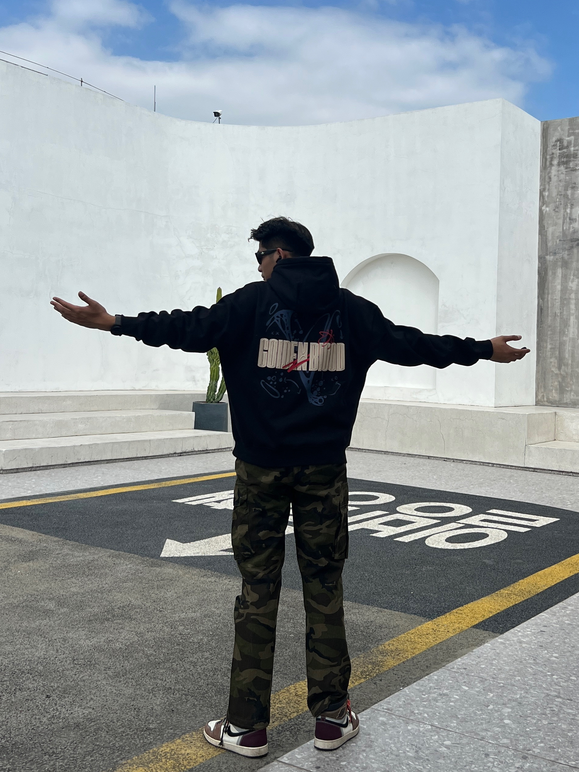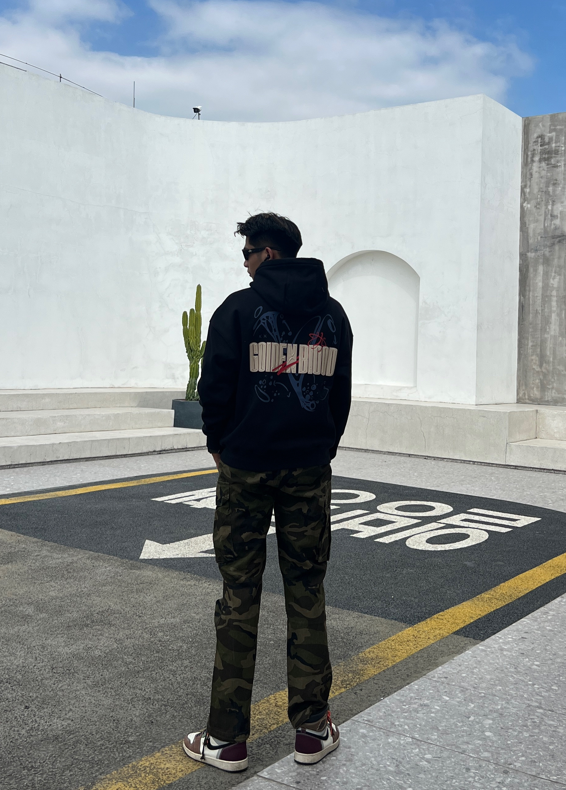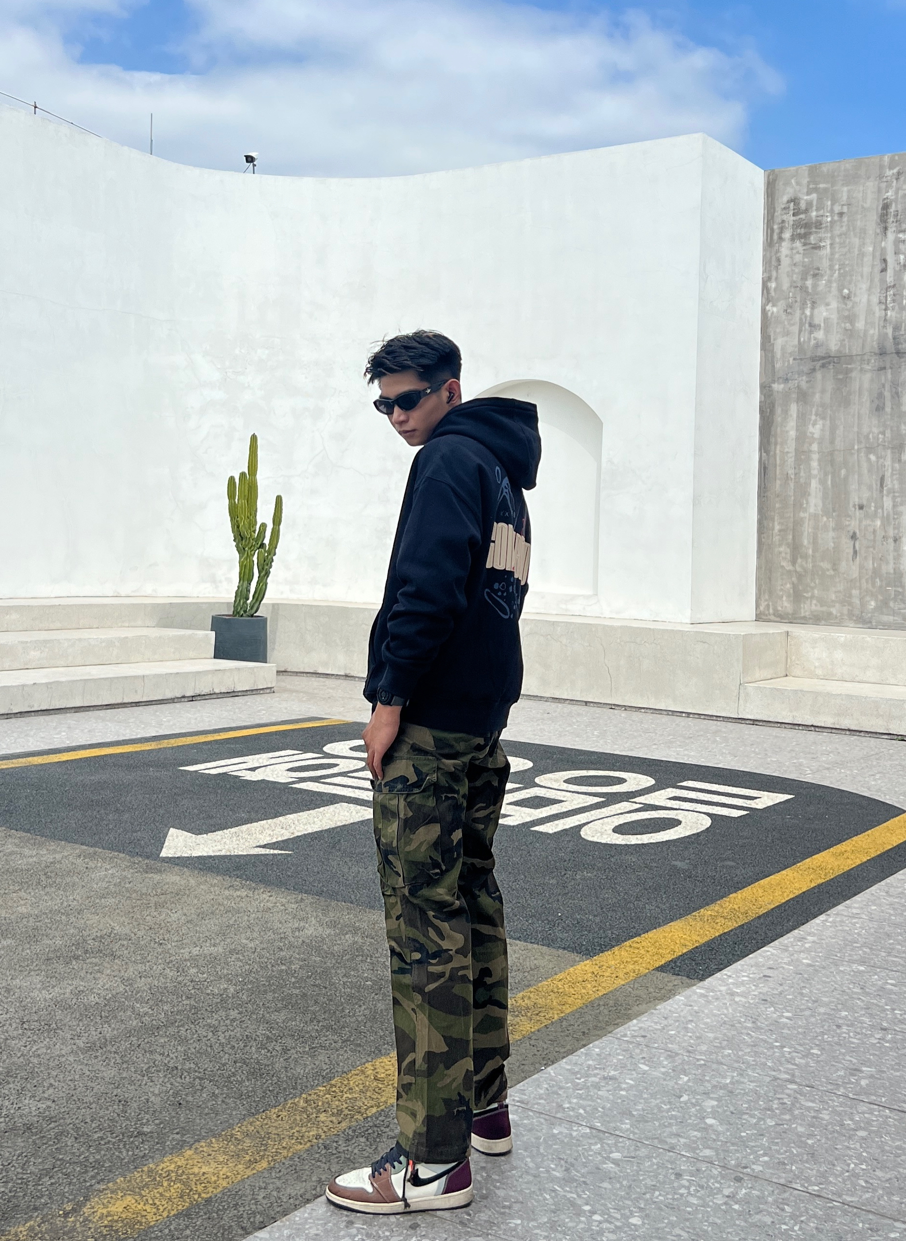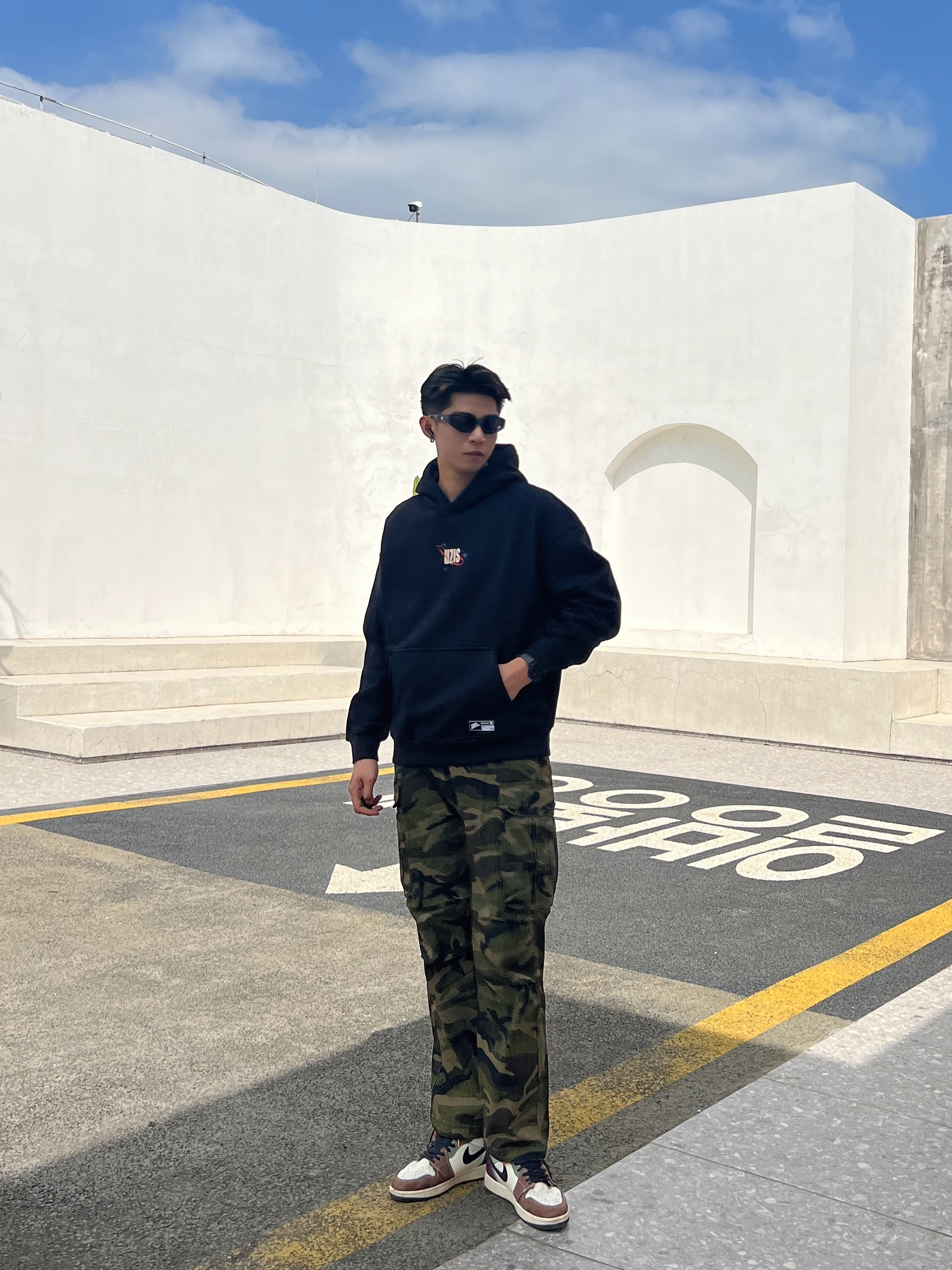 180|男生|秋冬百搭时尚[藤原浩] 简约、质感、色彩。 👔上衣黑色 上身效果很显气质 很有质感 质量也没有任何问题 干净利落 搭配迷彩休闲工装裤 这款裤子很腿长 显帅气 痞帅痞帅 整体效果 宽松干净利落。