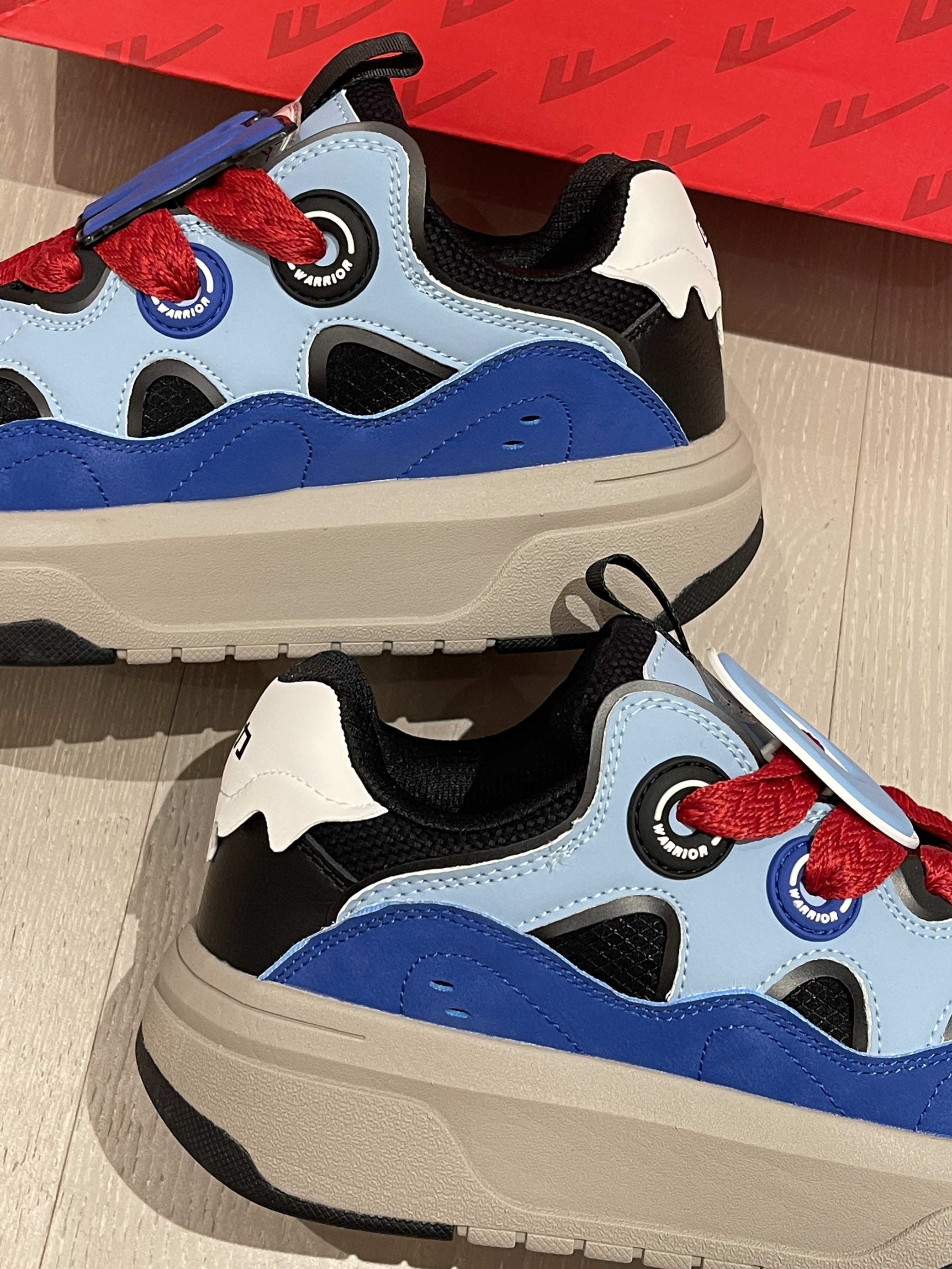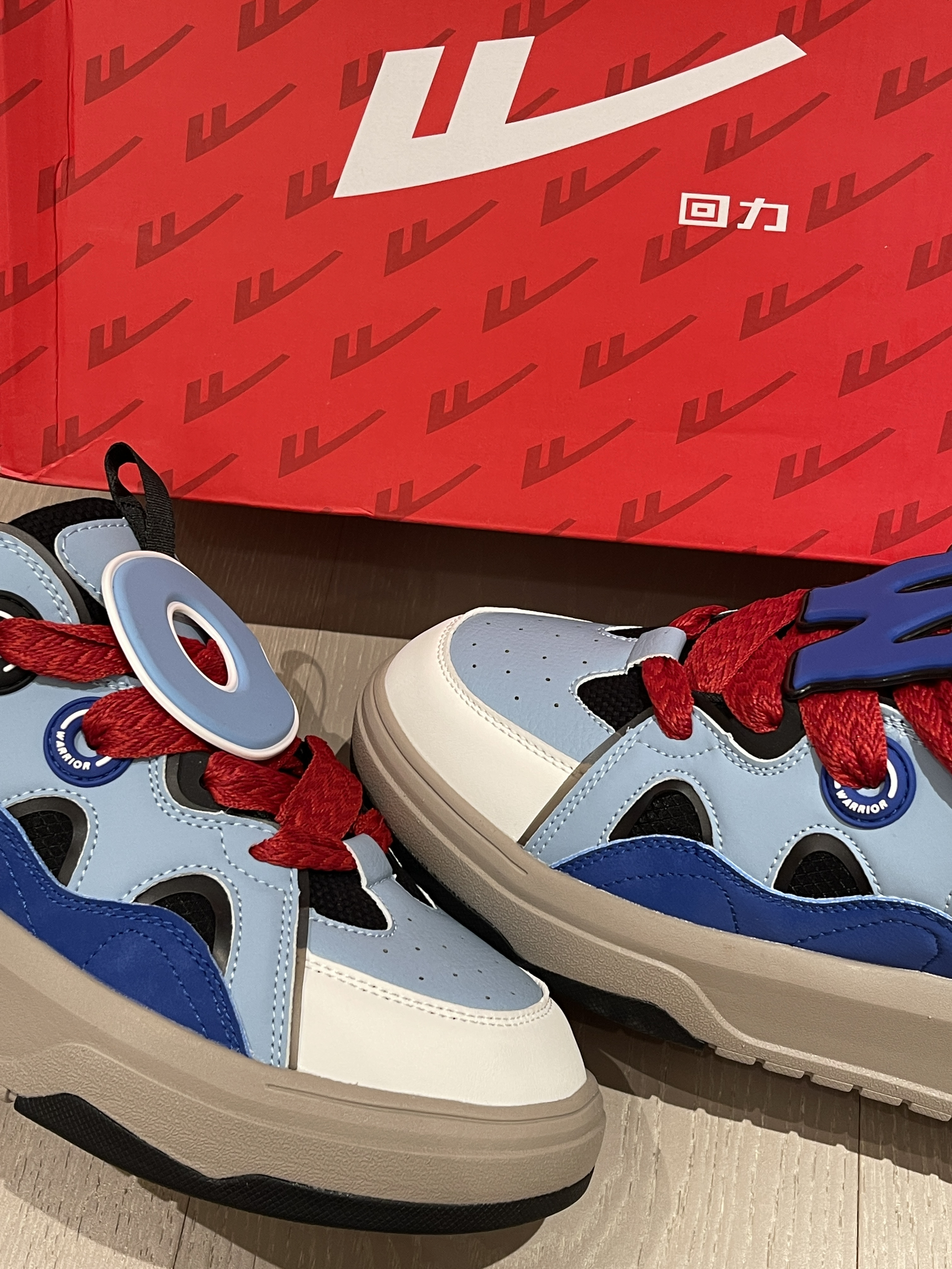 天气渐凉,你的换季新品准备好了吗‼️ Warrior|回力 厚底耐磨 低帮板鞋“蓝白”,采用热门的面包鞋型为基础进行改造升级,没有传统的那种臃肿拖沓,整体造型更加精致!鞋面采用灰蓝白三种柔软皮革进行拼接设计,鞋面点缀WO品牌设计(W arri O r),设计感十足!厚实软弹的中底,上脚舒适且增高~🤩
