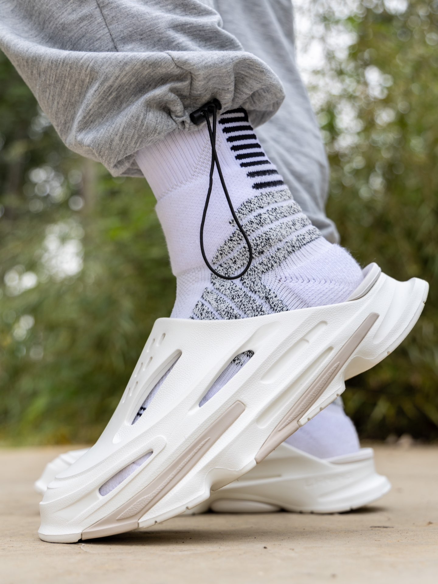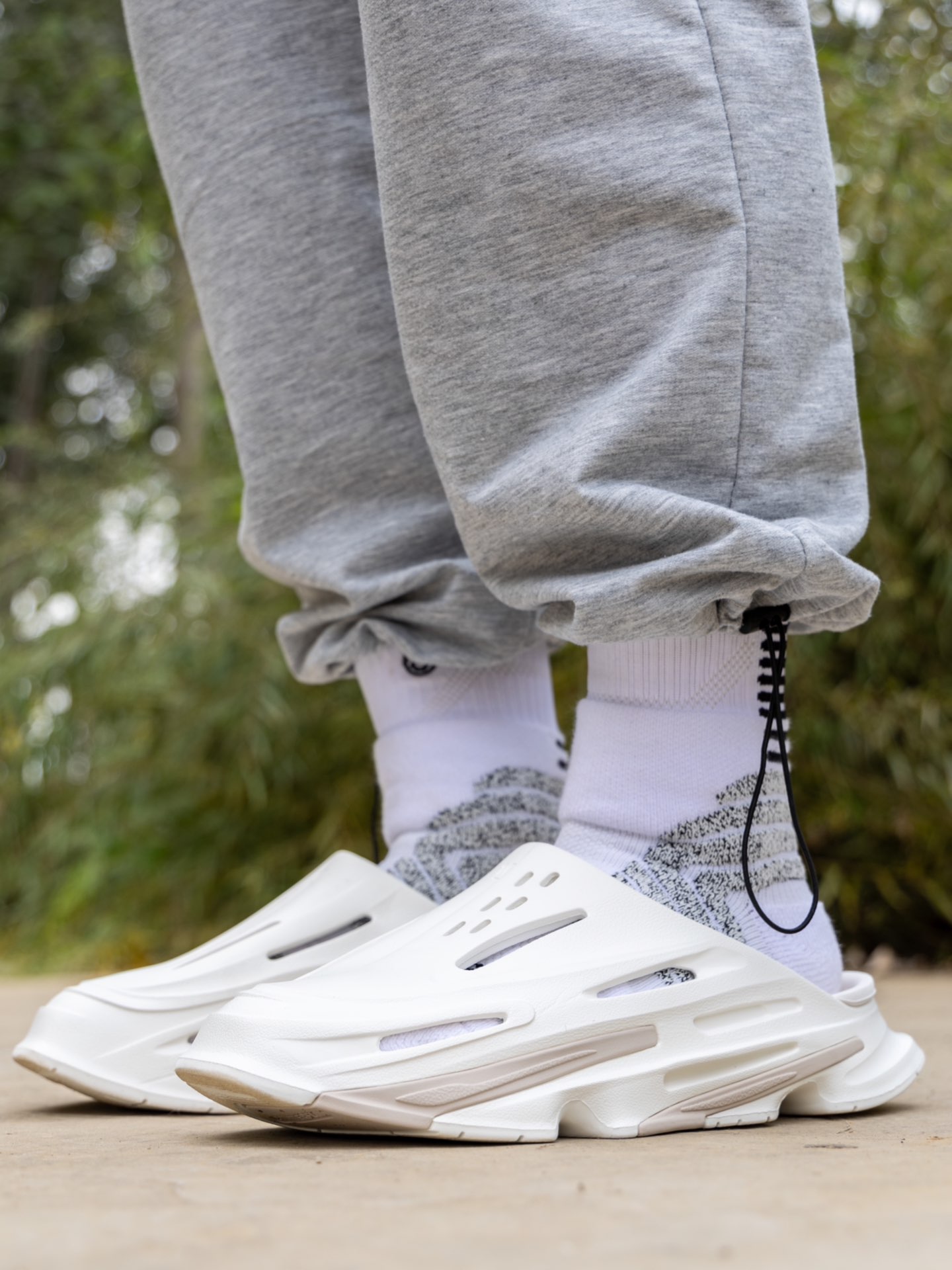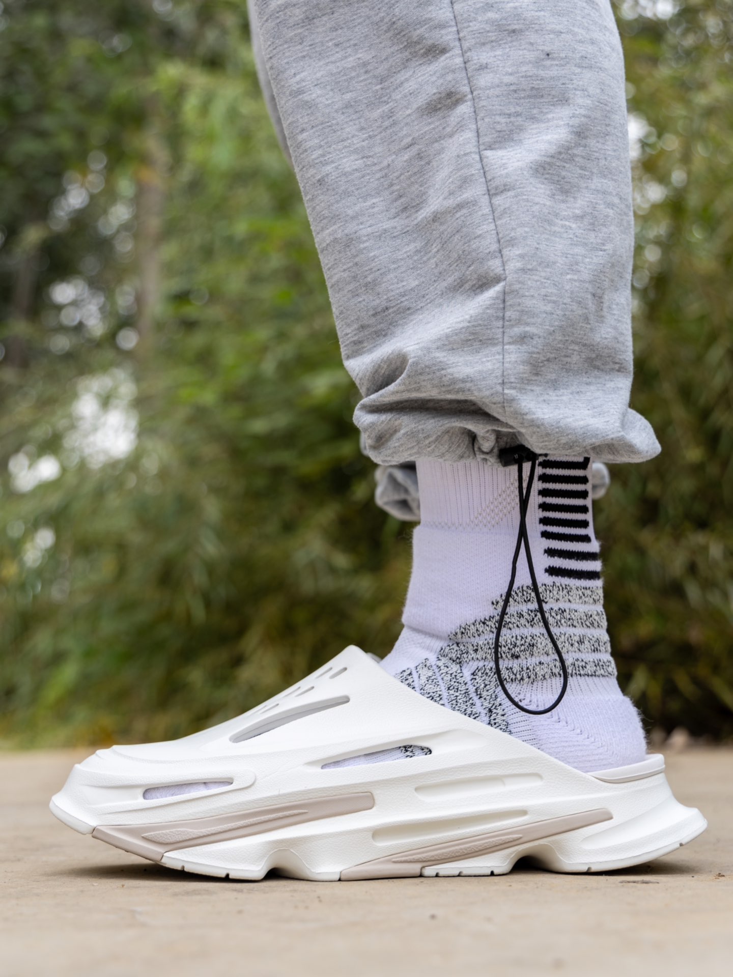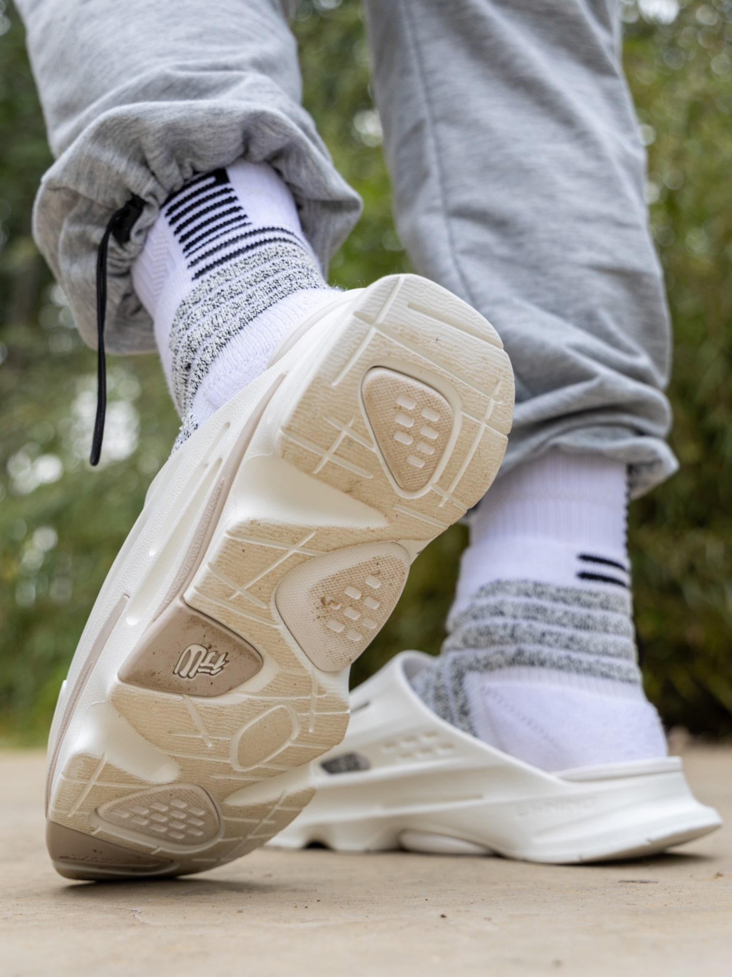 这双李宁CF溯行山拖鞋的外观我觉得很好看,有点洞洞鞋的既视感,侧面有孔洞设计和线条点缀,整体看上去层次感十足。挺适合出街穿搭的,侧颜很帅,上脚好看而且脚感也不错。 整体脚感属于比较韧弹的,踩起来没有明显的“踩屎感”但支撑很好,鞋仓空间充足,穿起来没有磨脚或者卡脚的情况,穿着舒适性我很满意。毕竟是一双不到百元的拖鞋,要颜值有颜值,要舒适性有舒适性,真没啥可挑剔的。 拖鞋中底采用到了双层的缓震...
