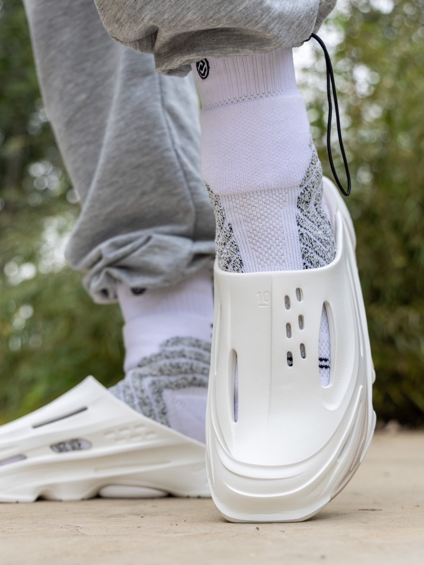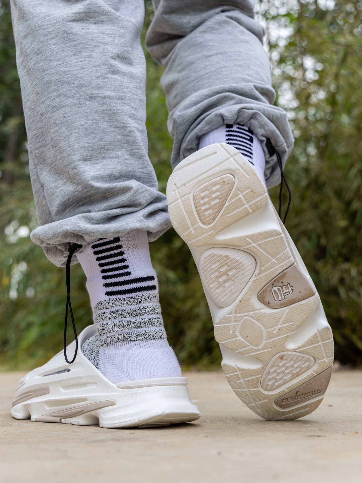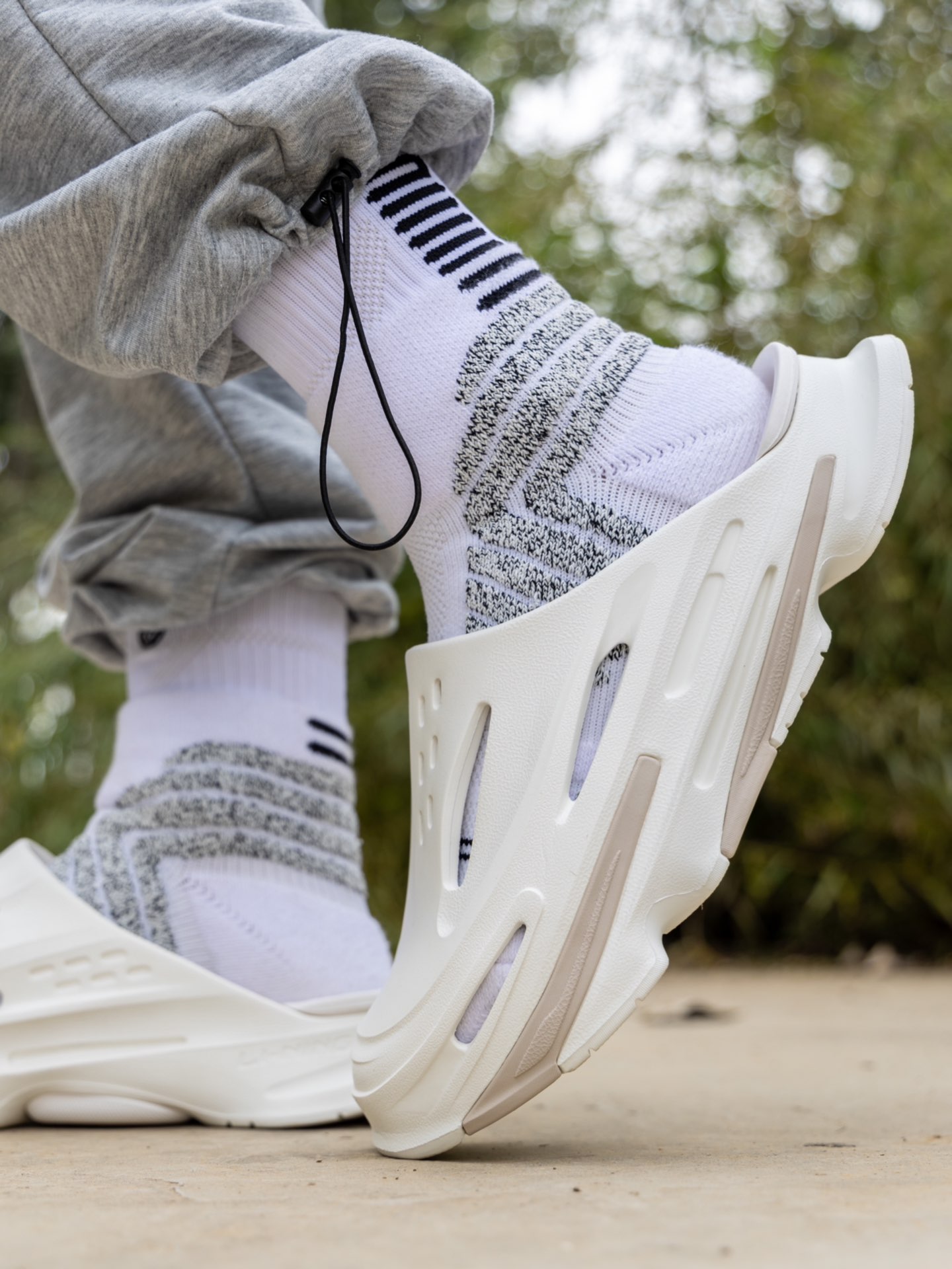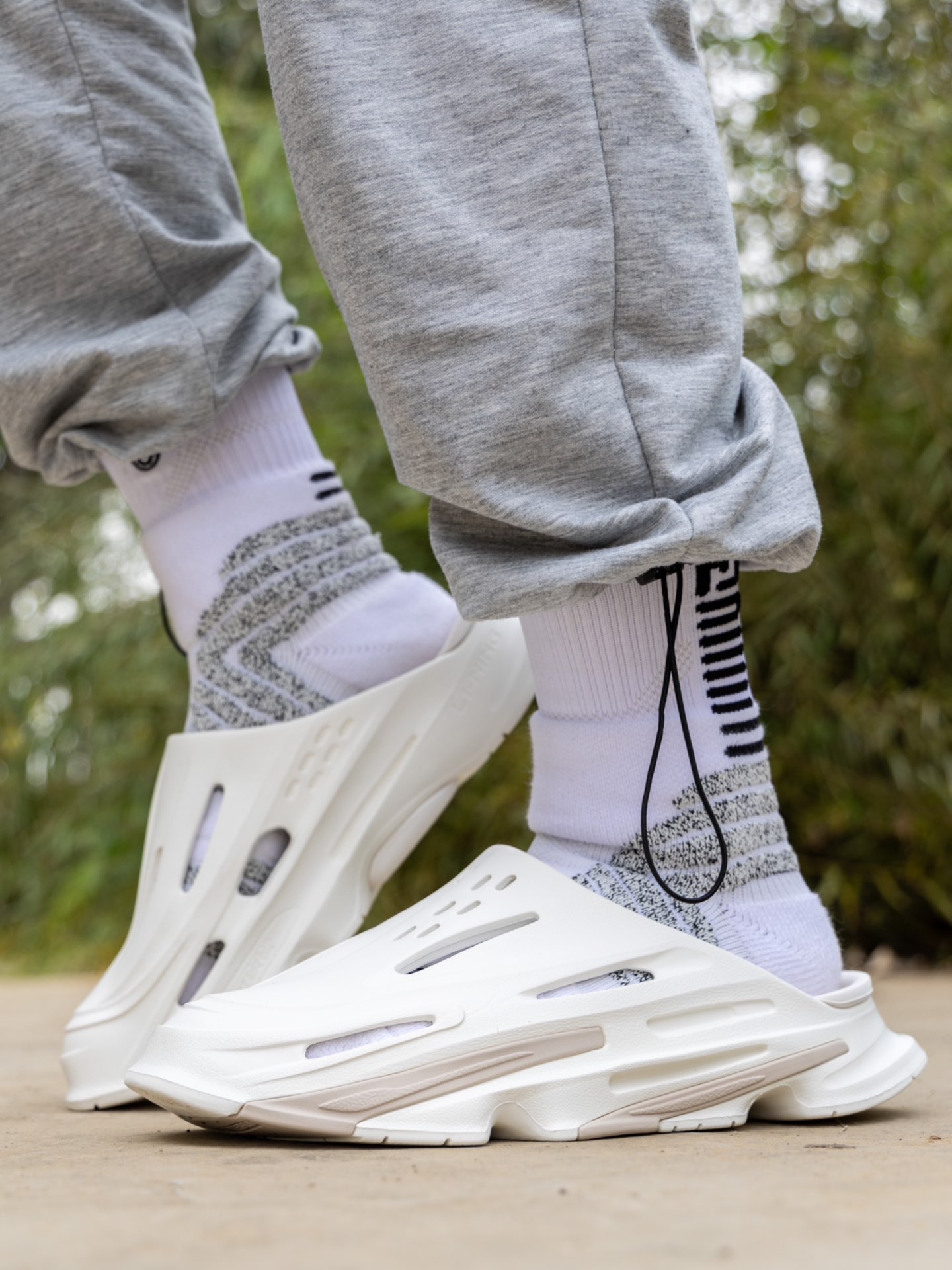 这双李宁CF溯行山拖鞋的外观我觉得很好看,有点洞洞鞋的既视感,侧面有孔洞设计和线条点缀,整体看上去层次感十足。挺适合出街穿搭的,侧颜很帅,上脚好看而且脚感也不错。 整体脚感属于比较韧弹的,踩起来没有明显的“踩屎感”但支撑很好,鞋仓空间充足,穿起来没有磨脚或者卡脚的情况,穿着舒适性我很满意。毕竟是一双不到百元的拖鞋,要颜值有颜值,要舒适性有舒适性,真没啥可挑剔的。 拖鞋中底采用到了双层的缓震...