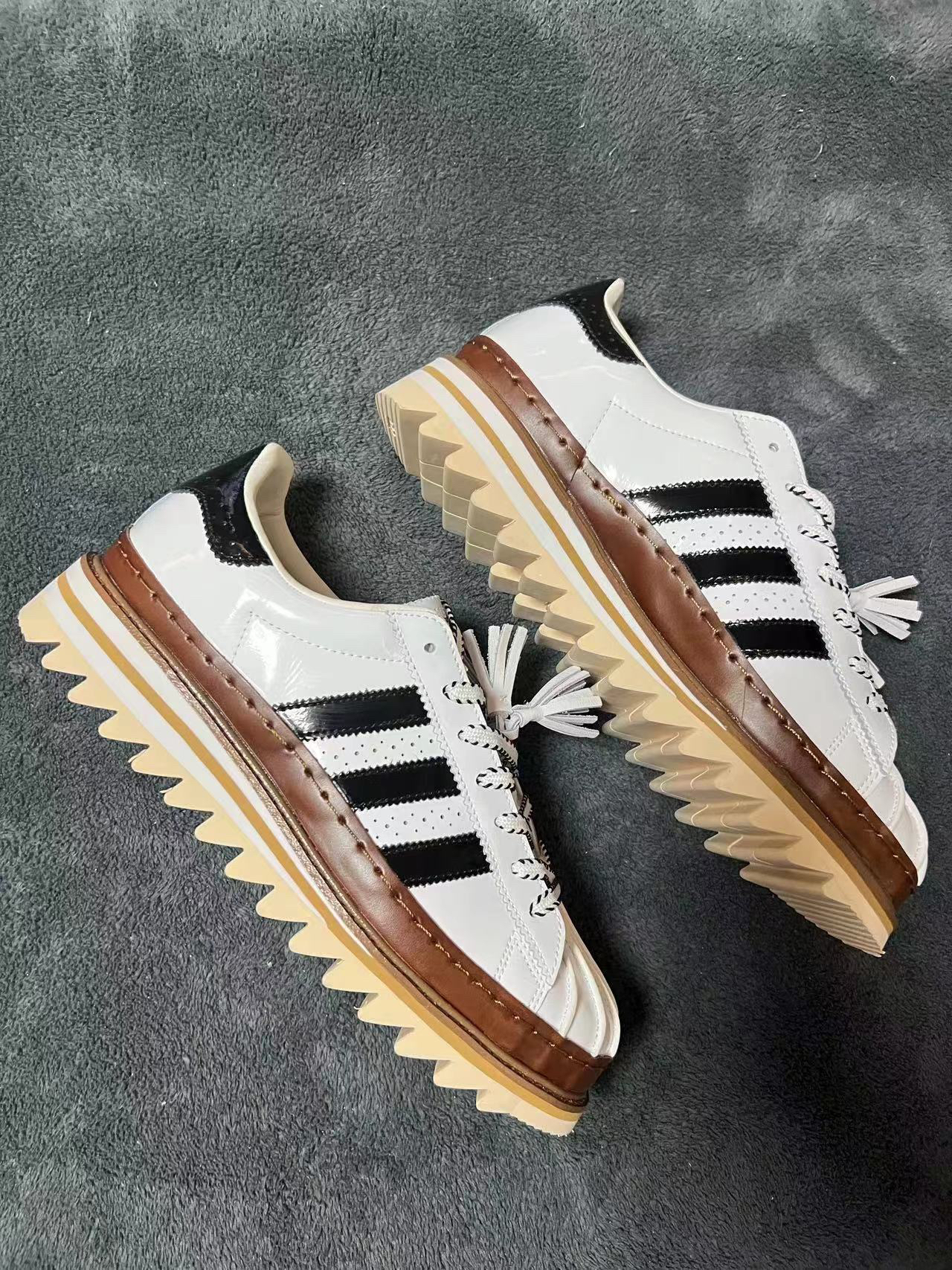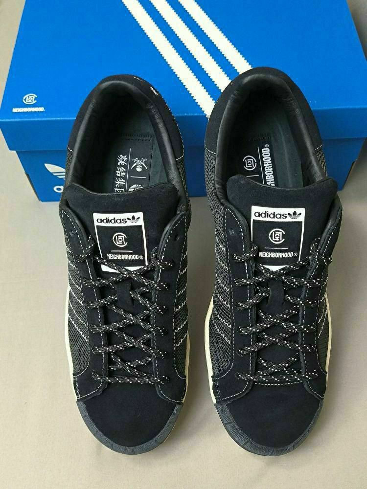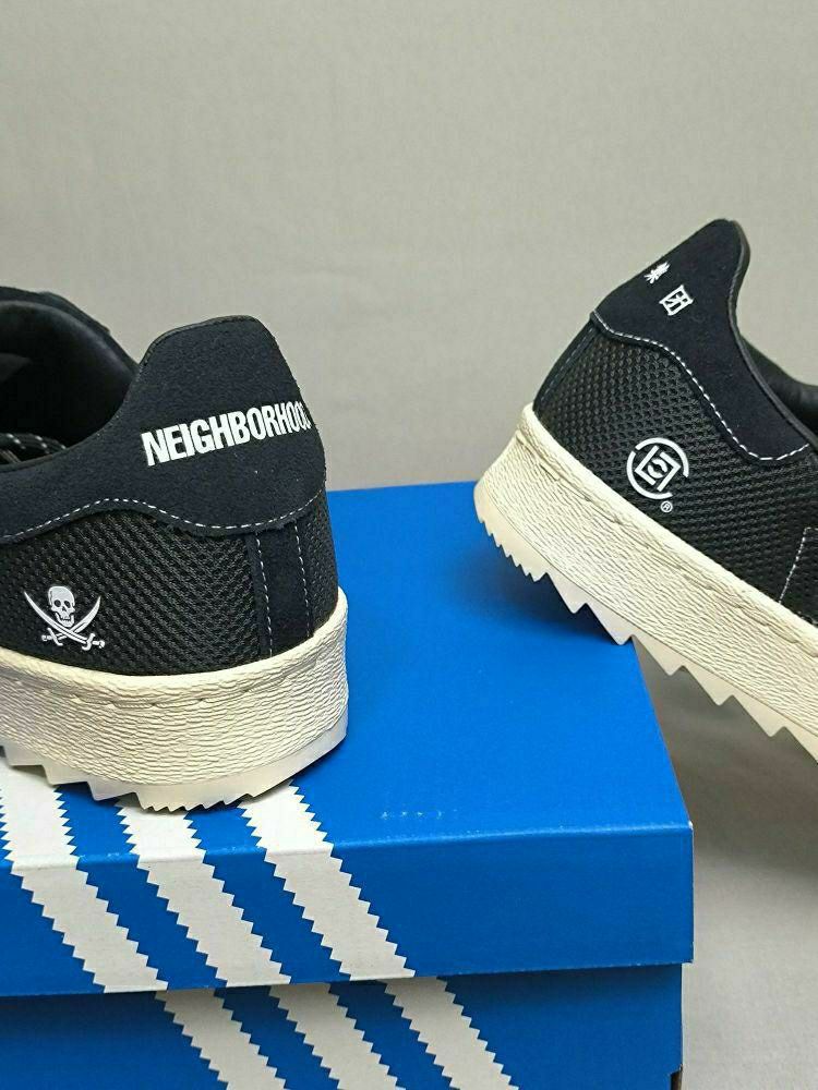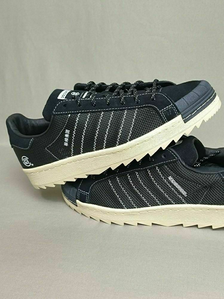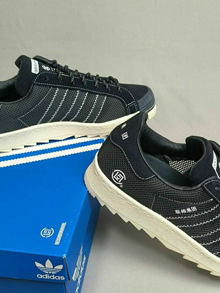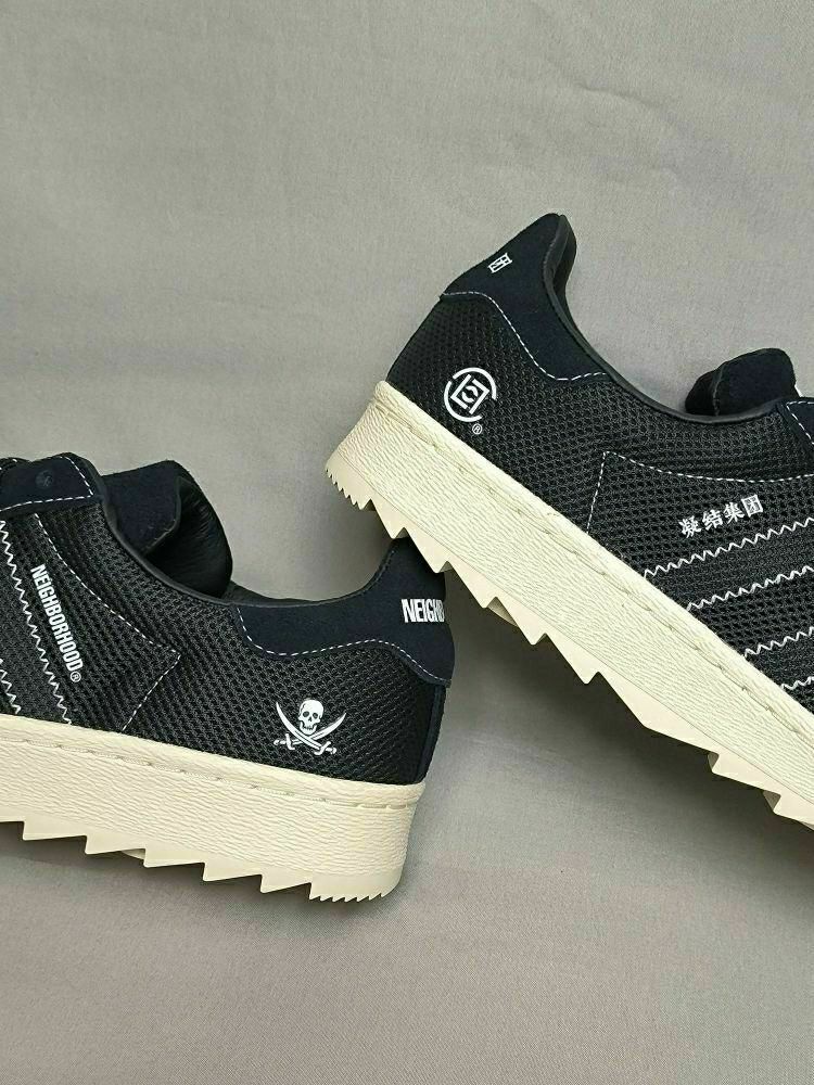 陈冠希与adidas阔别20年后回归首次合作,就带一双巨帅的三方联名,NEIGHBORHOOD × CLOT × adidas originals superstar 黑色三方联名 💗经典的superstar轮廓的牛皮革👟身,两侧鞋面采用网状织物镂空设计🧐,标志性的反光三条纹映衬网布鞋面,做旧的锯齿鞋底装点仿旧半贝壳🐚头,👟舌上的三方品牌logo标签🏷️点名三方联名身份,鞋跟处CLOT和海盗骨🦴...
