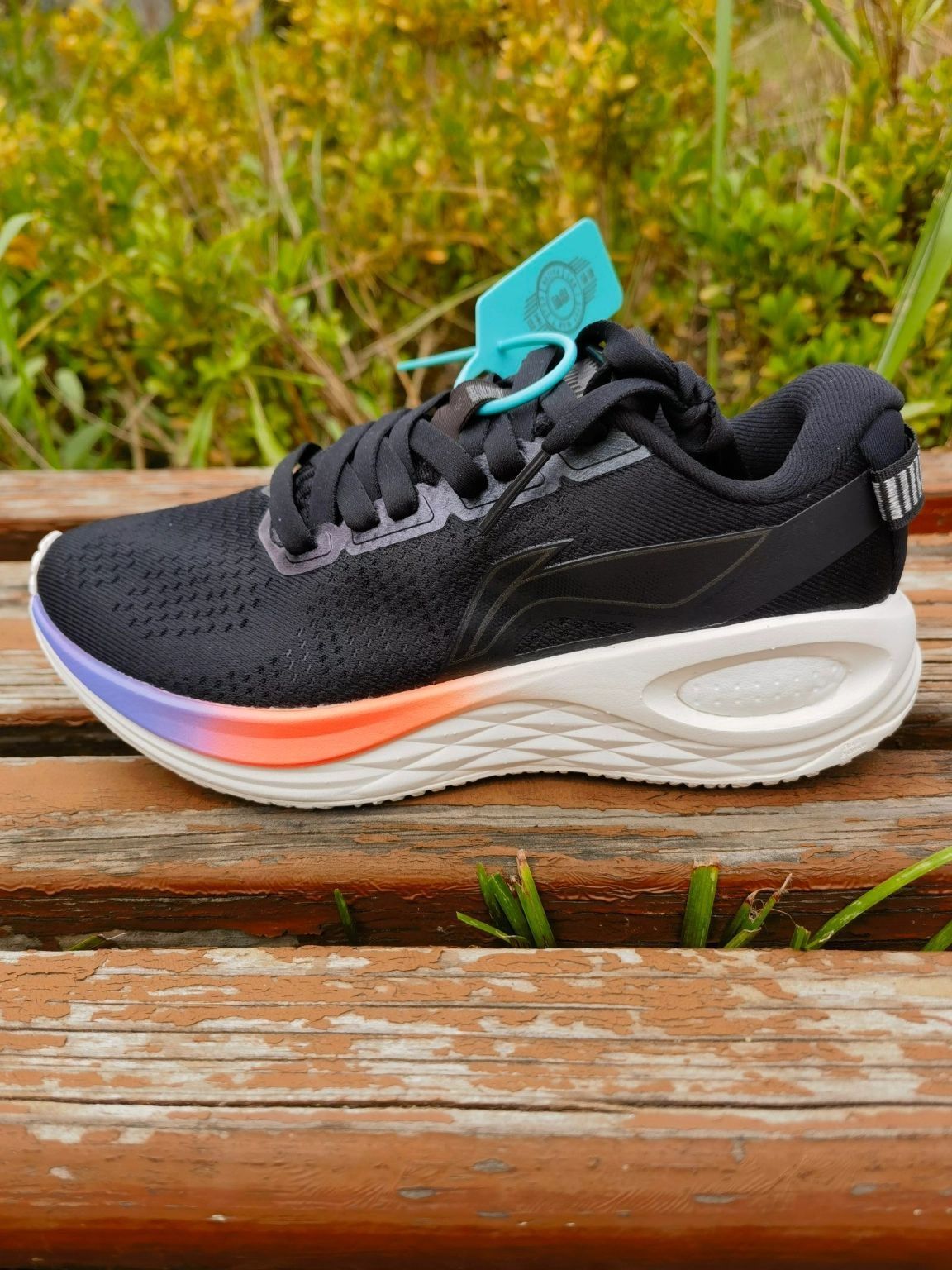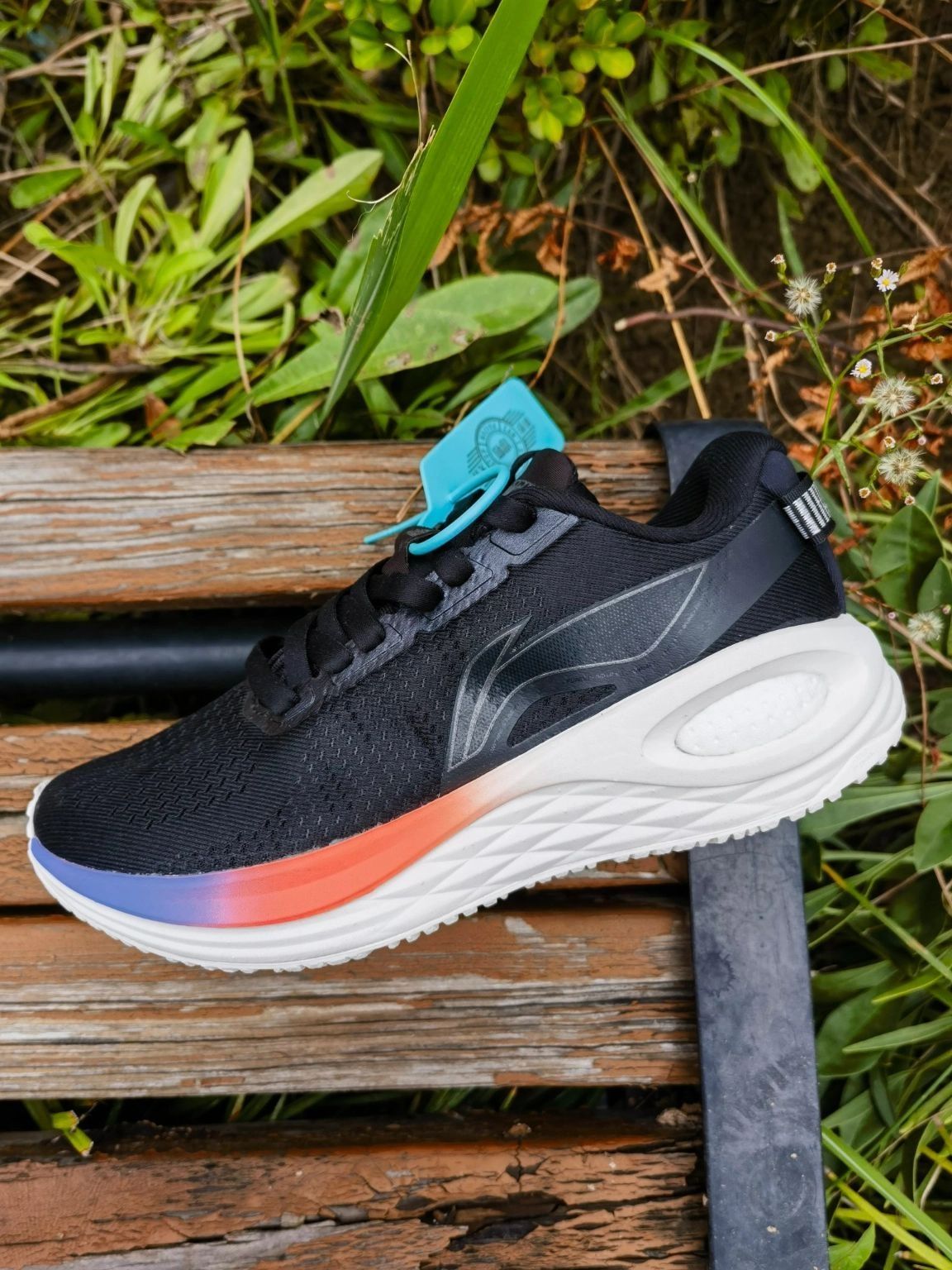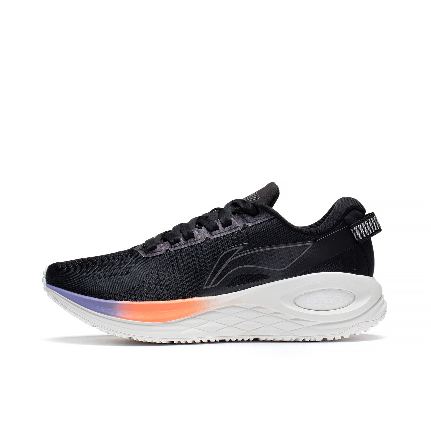 李宁烈骏六代跑鞋鞋面上班部分整体黑色在搭配醒目橙紫颜色的点缀,酷酷中带点活力感,犹如黑夜中明亮的星星,体现出视觉感,这种独特的色彩组合不仅展示了跑鞋的时尚感,还赋予了穿着者与众不同的个性魅力。 烈骏六代跑鞋鞋面材质采用高强度透气网布制作鞋面,确保了在运动过程中双脚能够得到充分的通风和舒适包裹。 鞋舌鞋跟海绵填充设计提升穿着舒适性