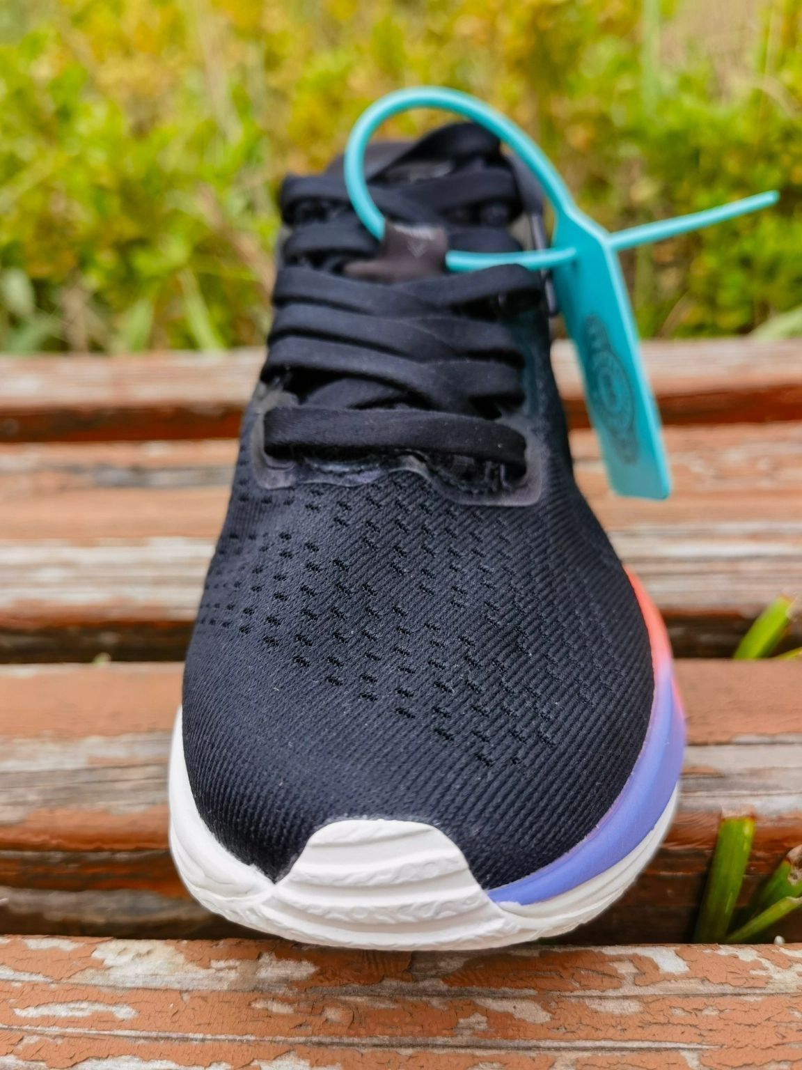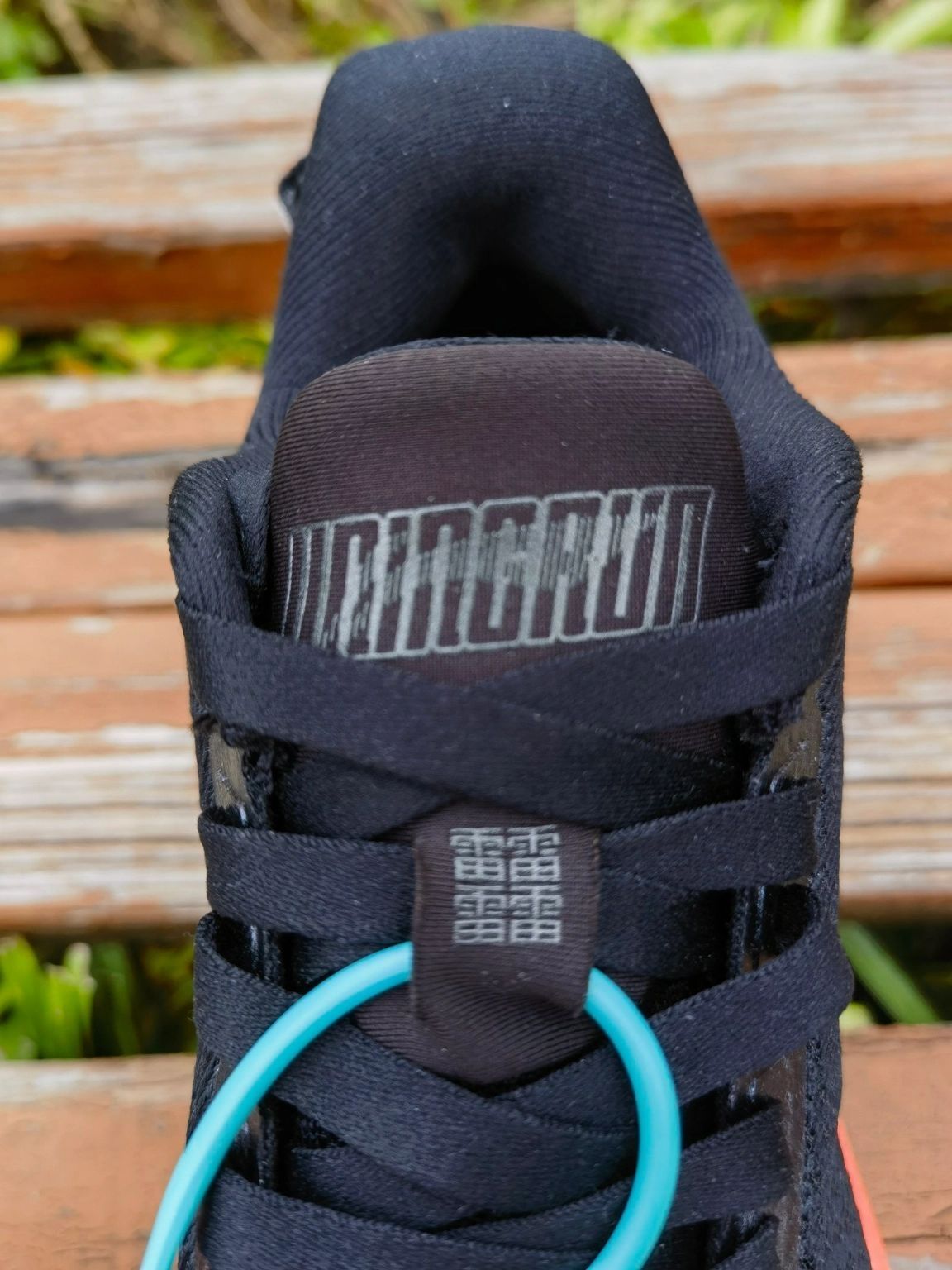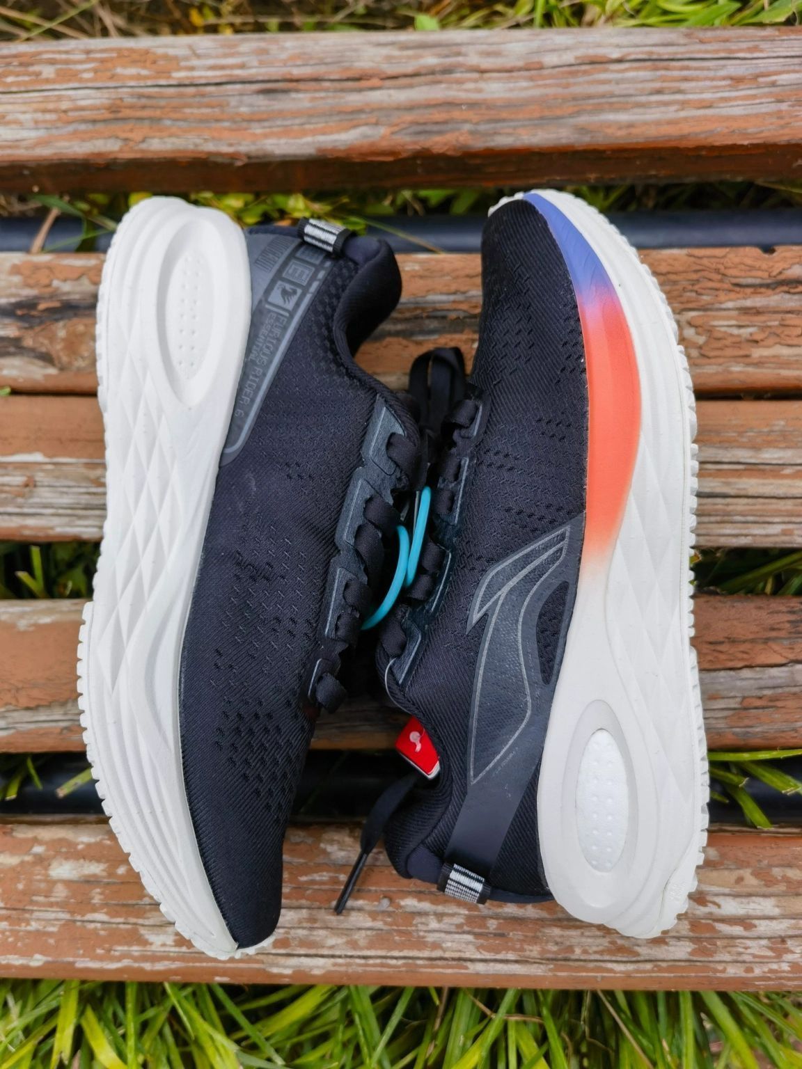 李宁烈骏六代跑鞋鞋面上班部分整体黑色在搭配醒目橙紫颜色的点缀,酷酷中带点活力感,犹如黑夜中明亮的星星,体现出视觉感,这种独特的色彩组合不仅展示了跑鞋的时尚感,还赋予了穿着者与众不同的个性魅力。 烈骏六代跑鞋鞋面材质采用高强度透气网布制作鞋面,确保了在运动过程中双脚能够得到充分的通风和舒适包裹。 鞋舌鞋跟海绵填充设计提升穿着舒适性