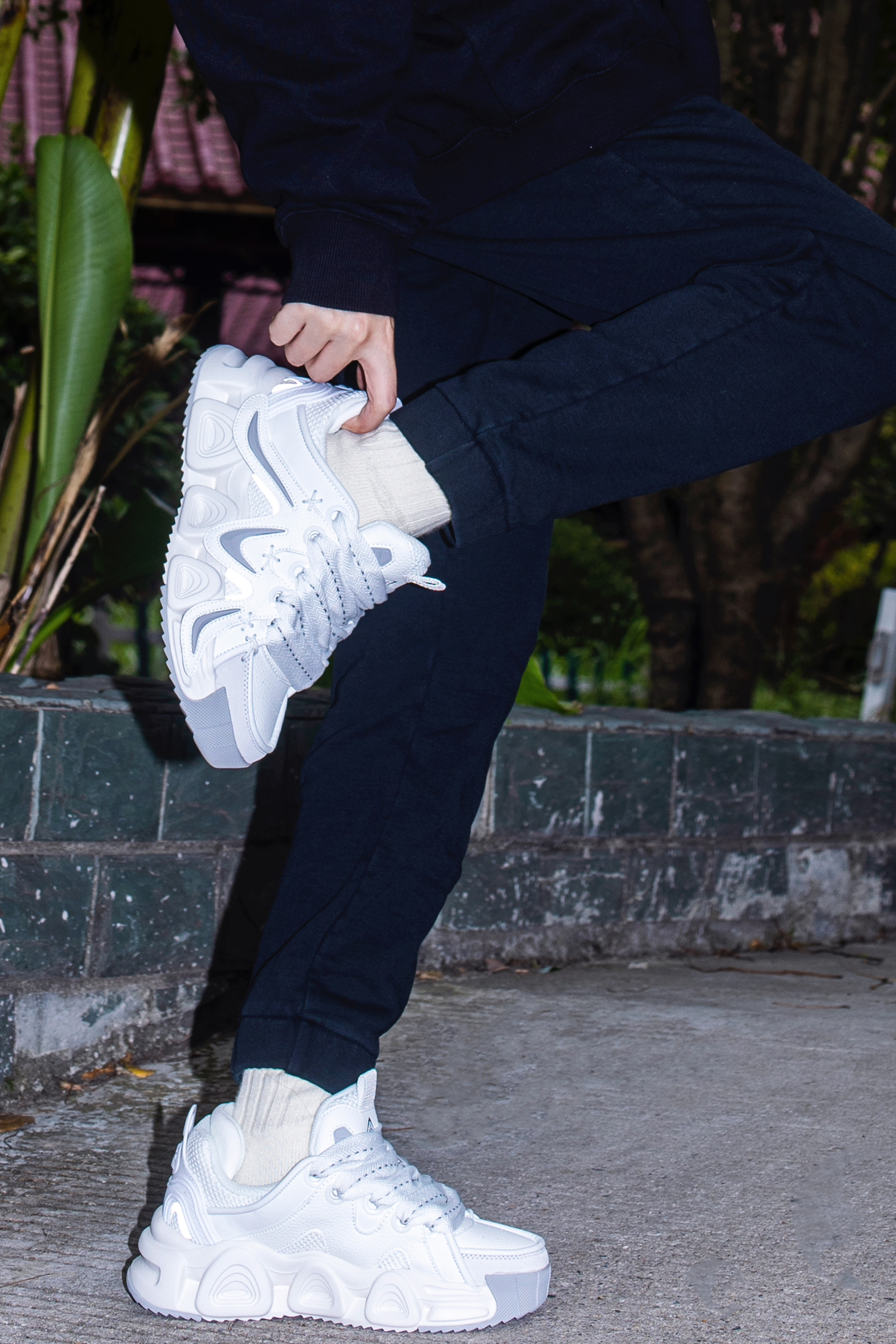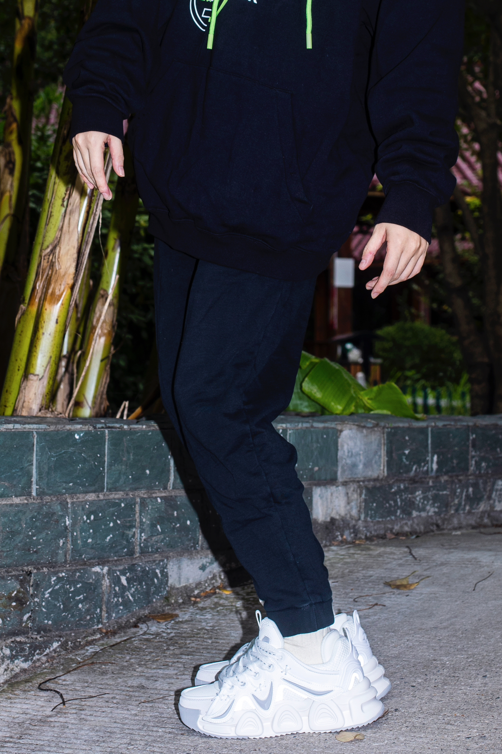 天气慢慢冷下来 日常我喜欢穿简单的卫衣卫裤 今天分享一套懒人快速出门运动穿搭 穿搭指南: 上身一件黑色连帽卫衣 荧光绿的抽绳和印花增加一些小个性 下身一条黑色束脚卫裤 上下都是宽松的版型 才更随性休闲 上脚一双masongarments新款老爹鞋 以白色为主色调加上局部灰色很有层次 厚底老爹鞋是秋冬的百搭单品了 上脚舒适 还能隐形增高不少 这样一套黑色系运动风的感觉是真的帅