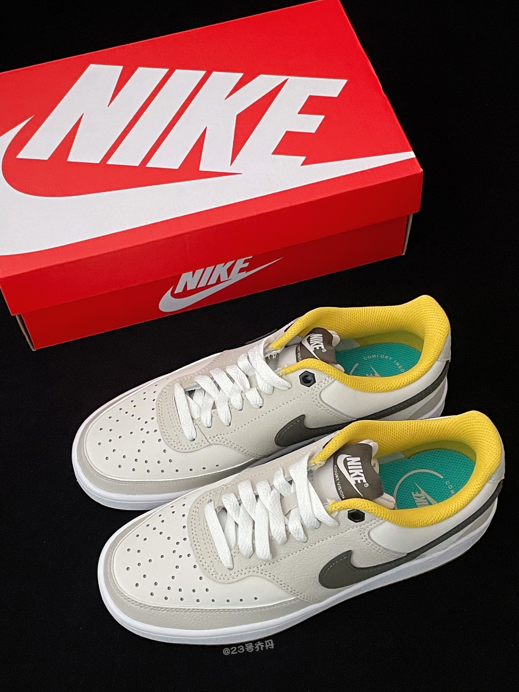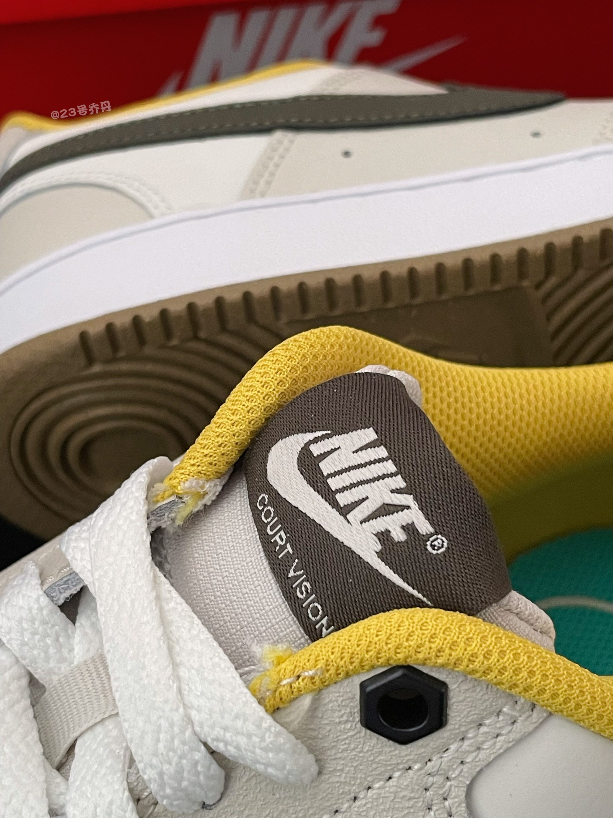 今天给大家分享这双近期发售的 Nike Court Vision Low『白色』板鞋👟 整双鞋采用了米白/奶咖/深橄榄绿/黄色等搭配 鞋面选用了麂皮+荔枝纹路皮革+硬质皮革拼接 整体的质感很到位 麂皮部分要注意打理 鞋头密集的透气孔保证了良好的透气性 鞋舌与鞋尾均设计有品牌Logo刺绣图案 最后一组鞋带孔为特别的黑色六边形造型 白色的中底和咖啡色多纹路的橡胶底收尾 整体来说这是一双兼具颜值和质感的...