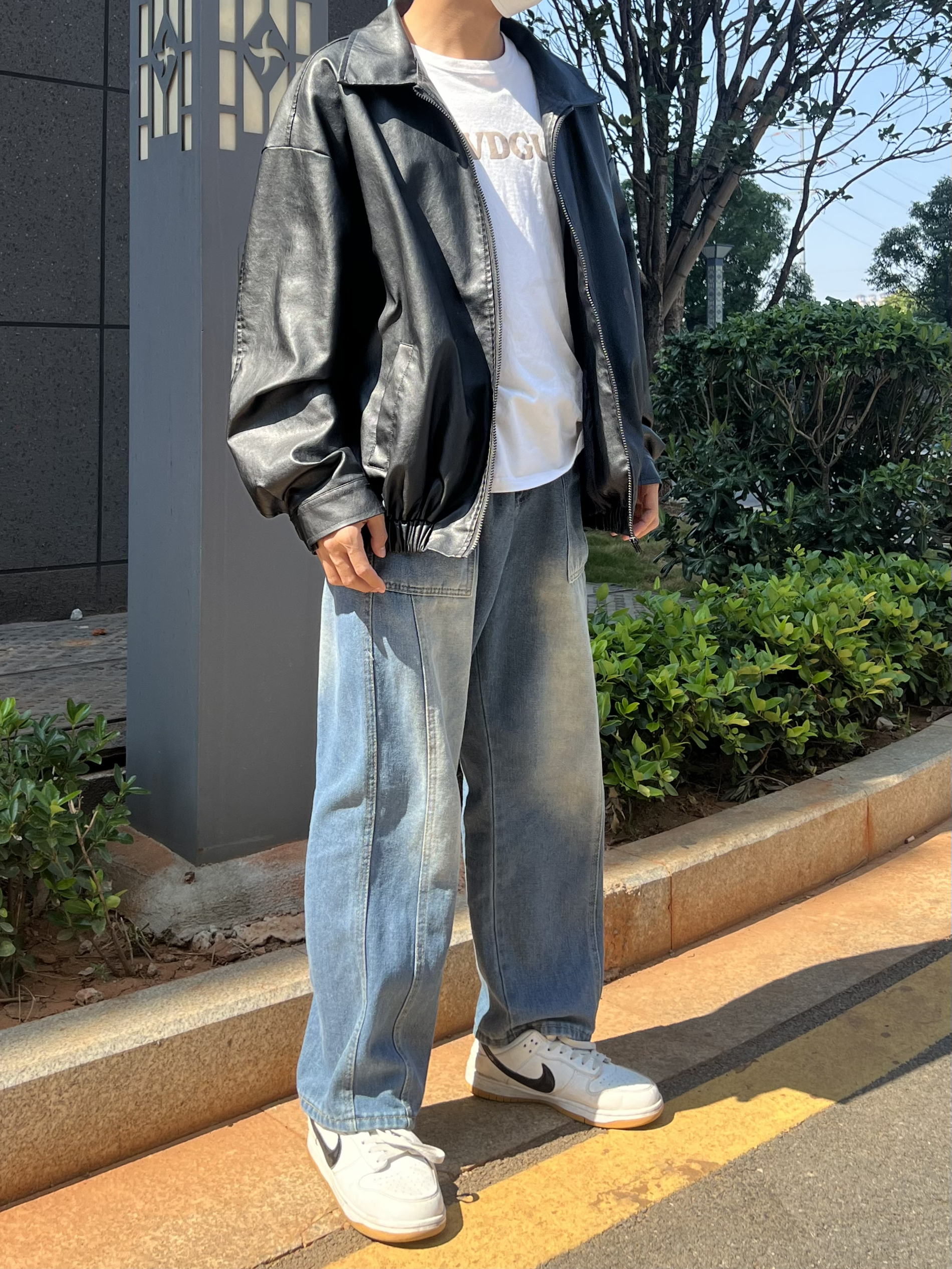 哈喽心大家好,这里是挽晨 今天我们搭配一套美式复古风,173cm🧍57kg 秋天必不可少的当然也有皮衣啦,美式复古款皮衣外套搭配白色内衬、宽松的工装裤或者牛仔裤👖 慵懒又时髦 可以说是将街头感拉满了! 裤子的话最好是搭配水洗复古牛仔裤,不仅宽松,而且版型也很正,穿在身上真的很舒服!