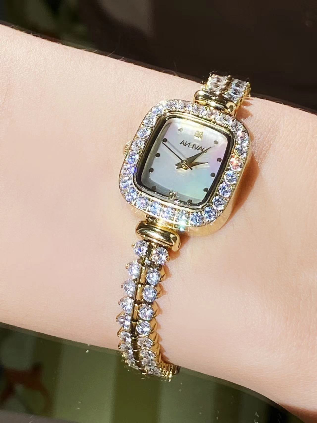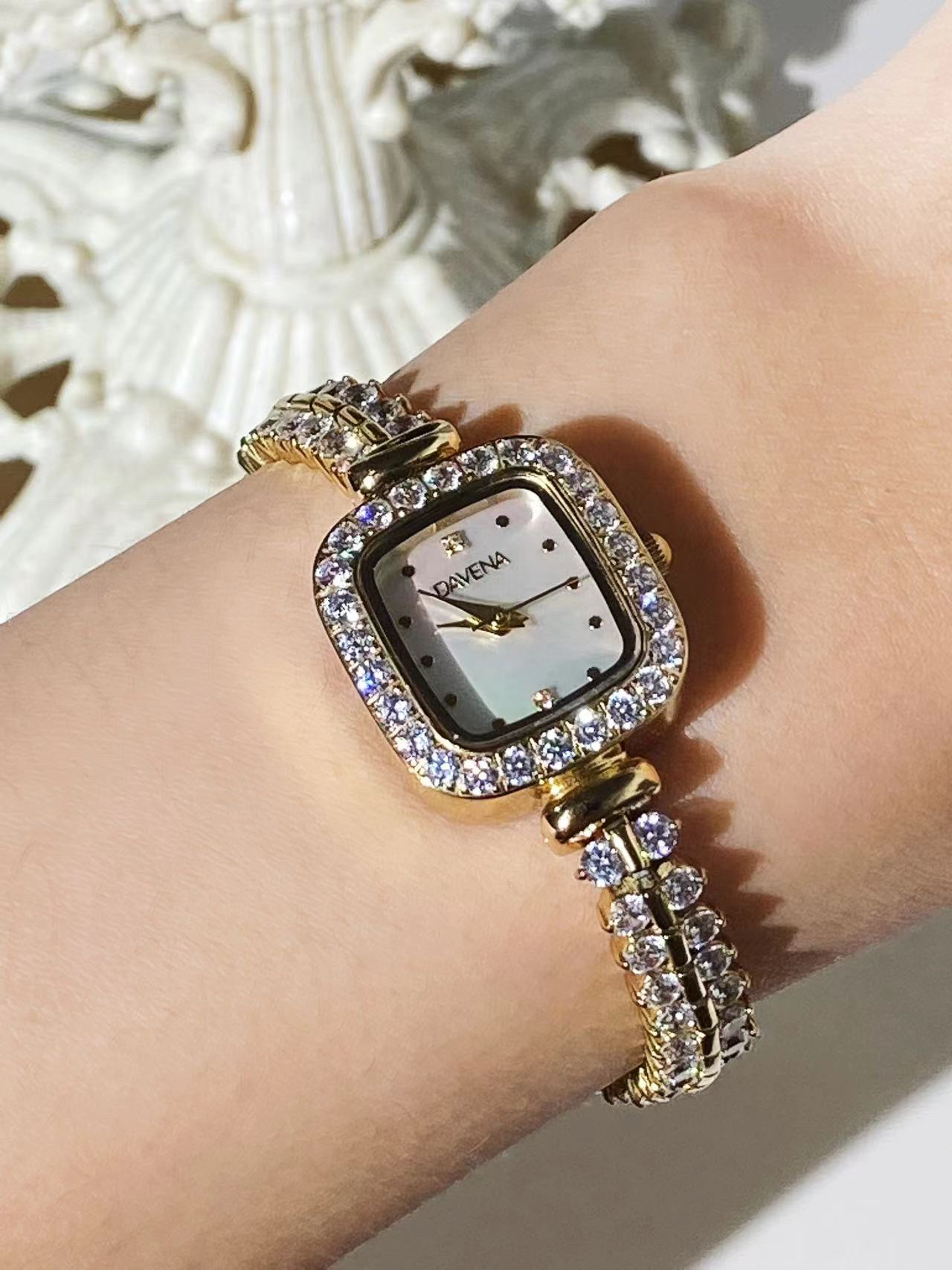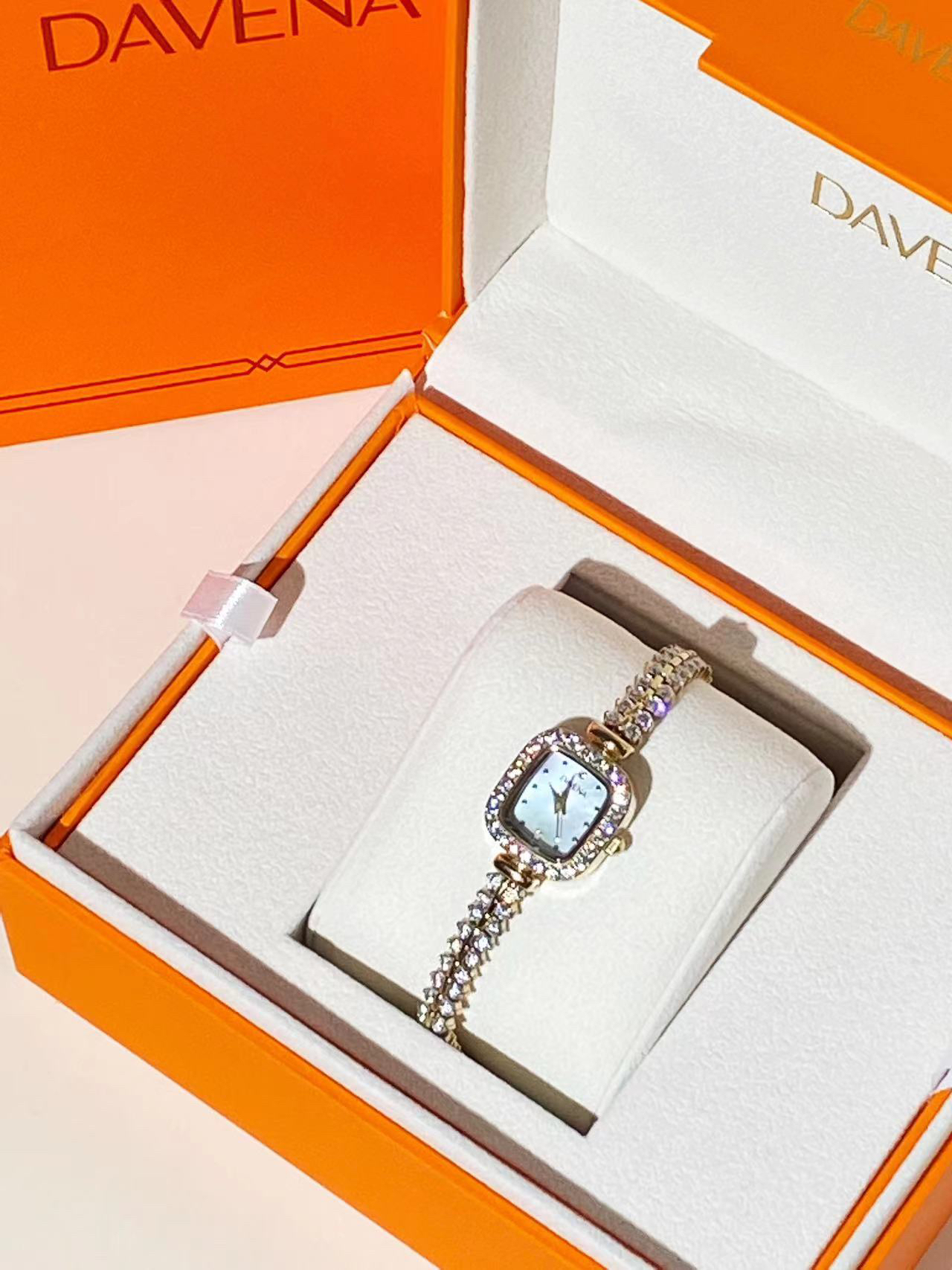 男朋友的眼光真是越来越好了! 这个DAVENA的小金穗手表直接送到了我的心巴上~母贝表盘➕镶满钻的表链 温柔贵气感十足! 搭配上秋冬的衣服 时尚又显气质,氛围感满满!!