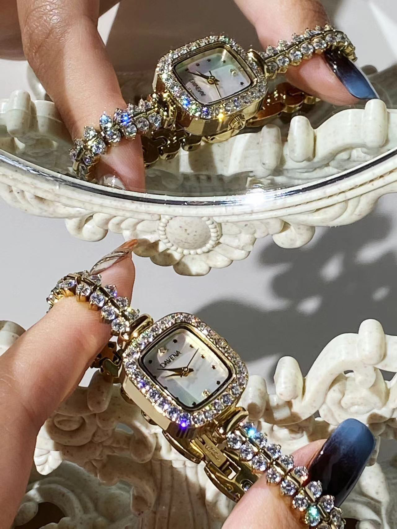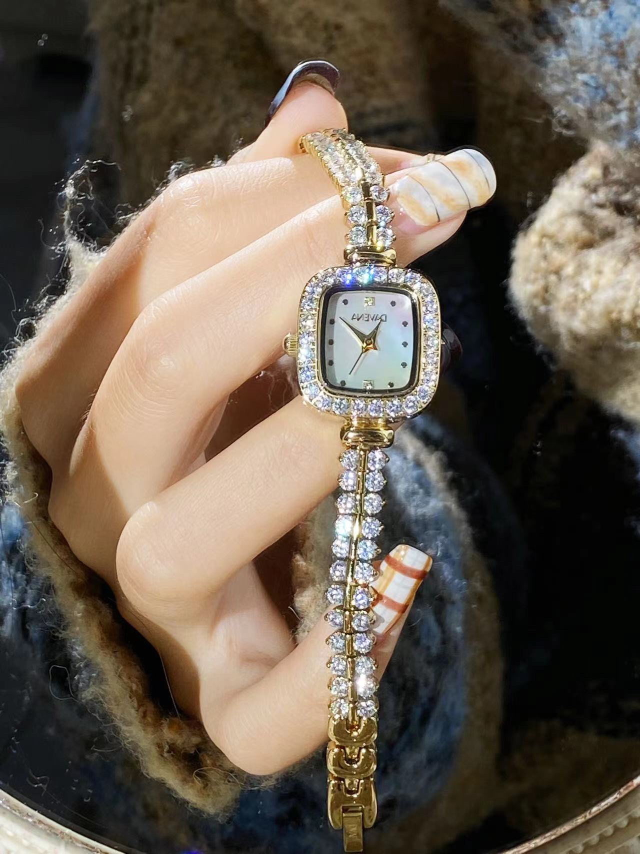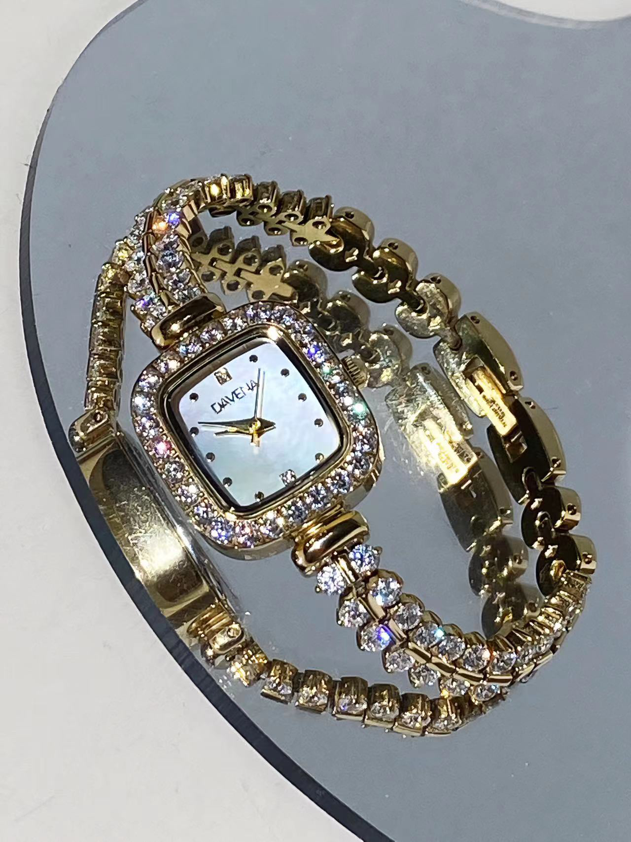 男朋友的眼光真是越来越好了! 这个DAVENA的小金穗手表直接送到了我的心巴上~母贝表盘➕镶满钻的表链 温柔贵气感十足! 搭配上秋冬的衣服 时尚又显气质,氛围感满满!!