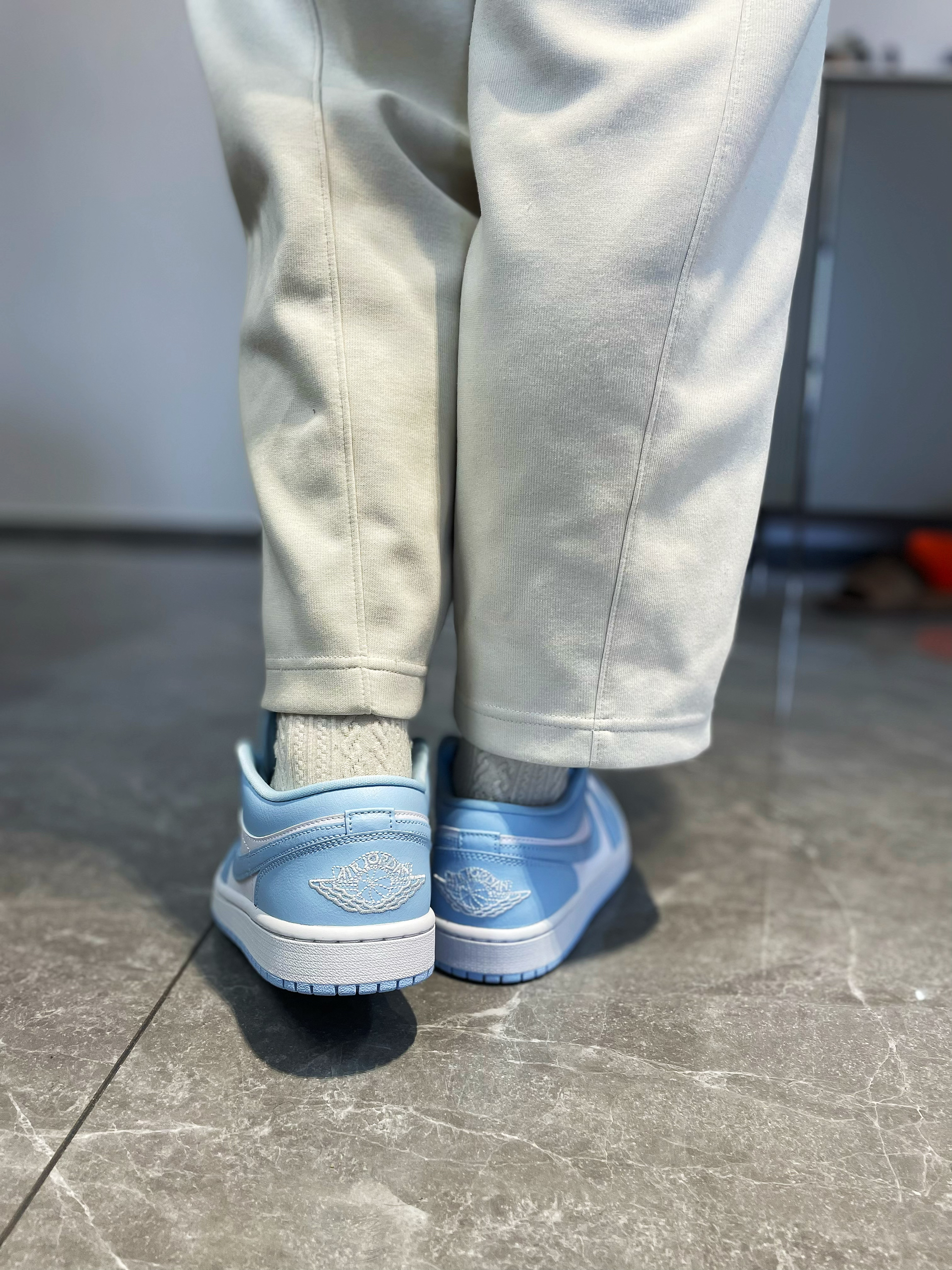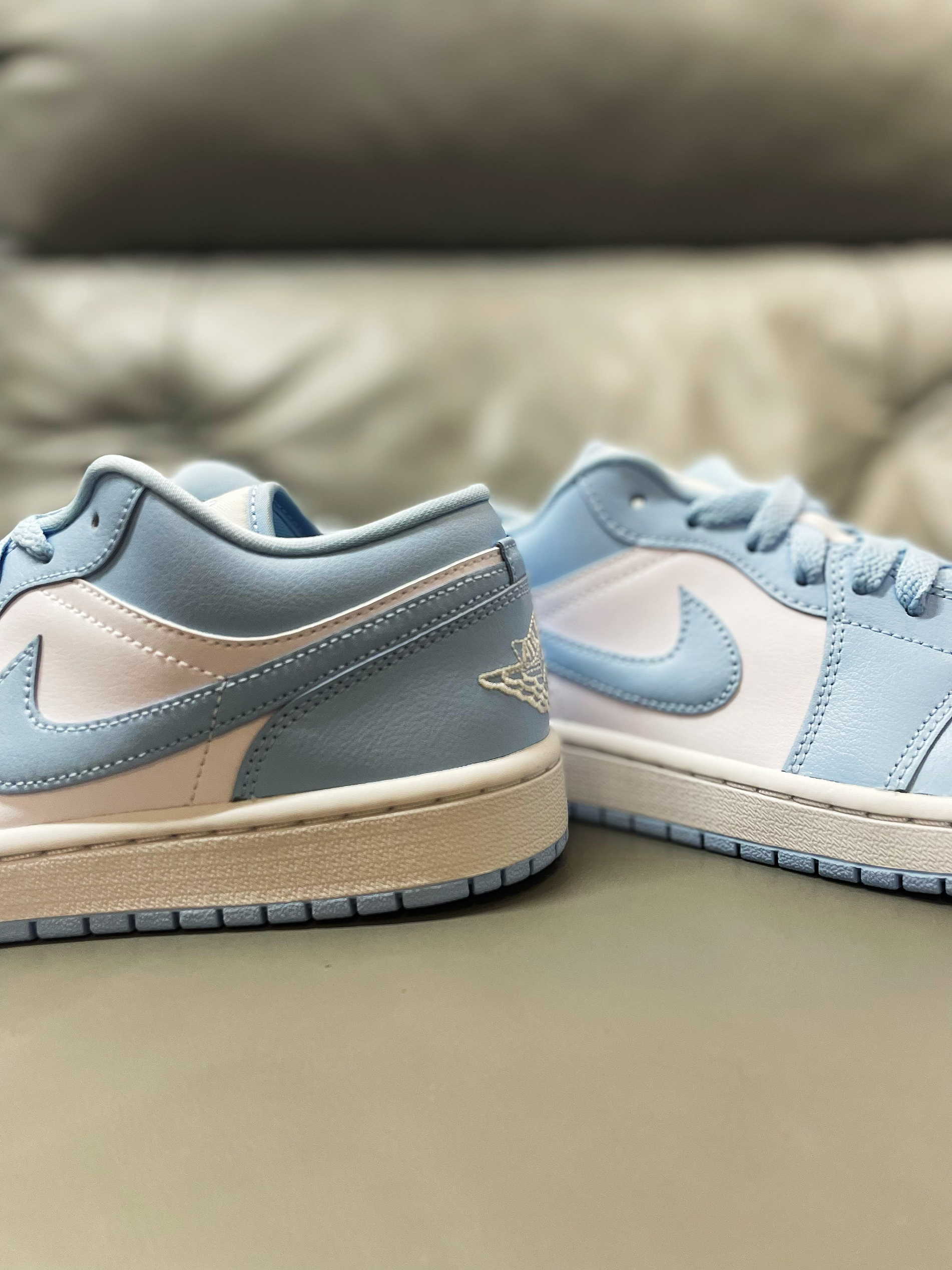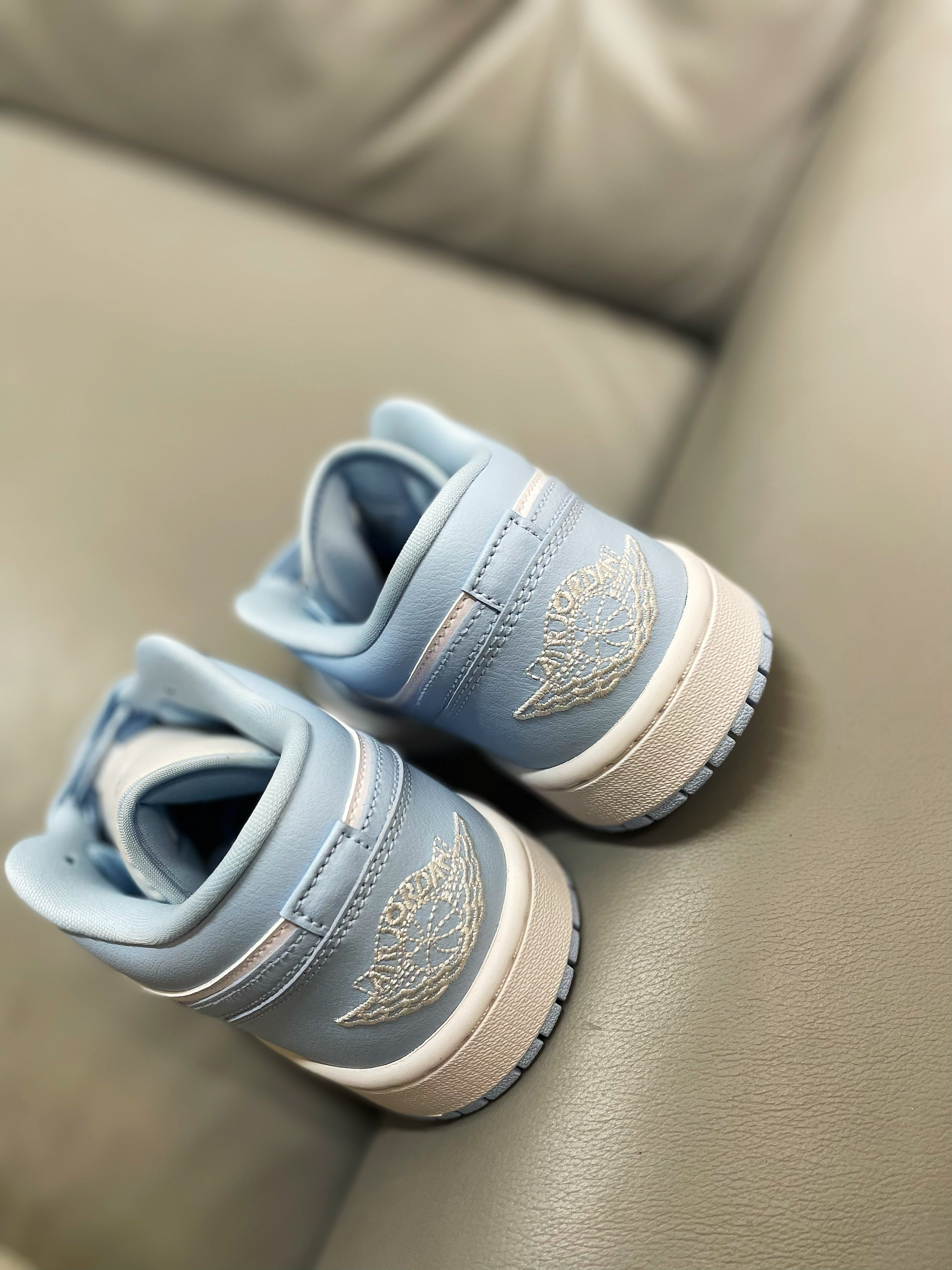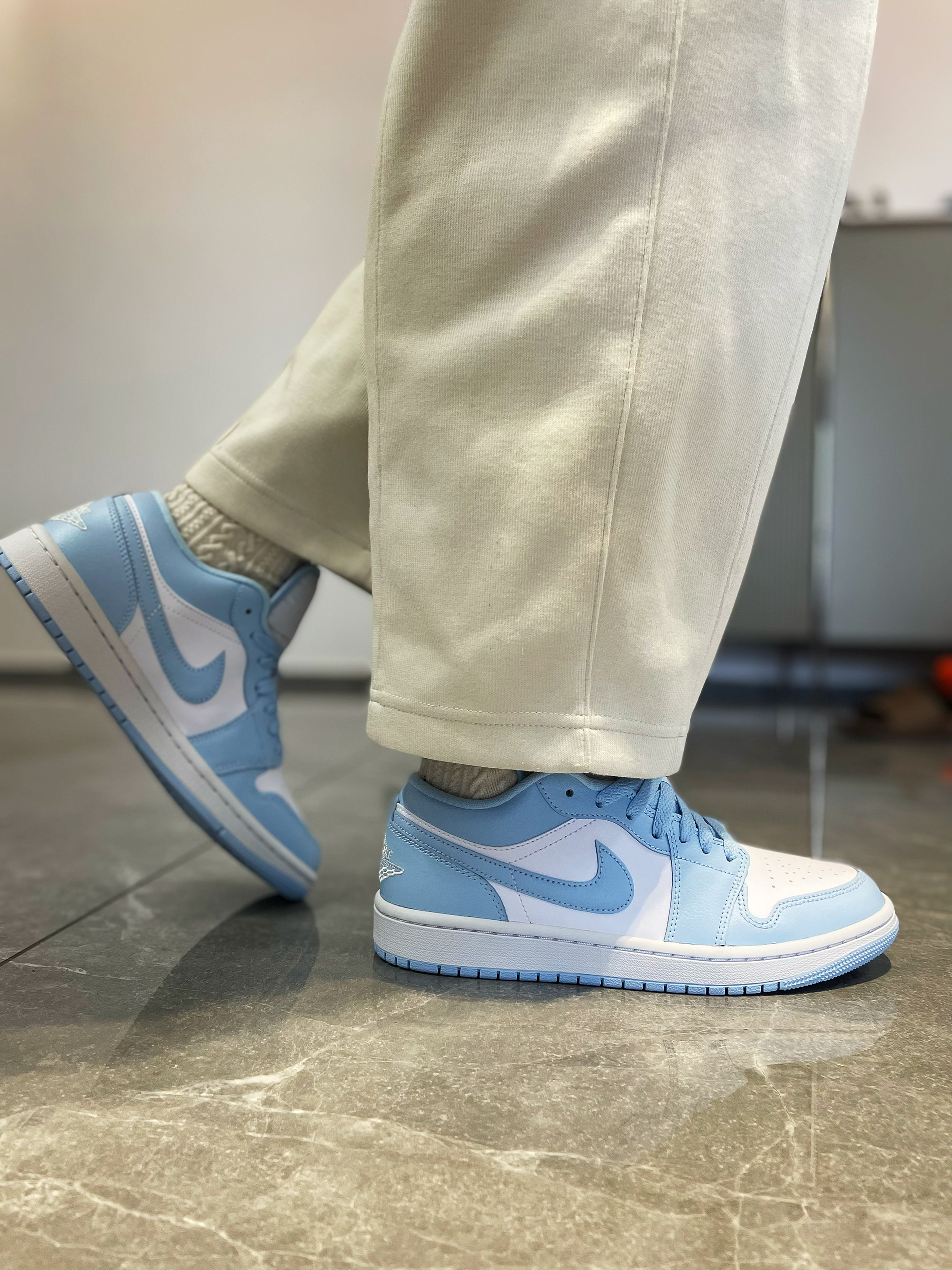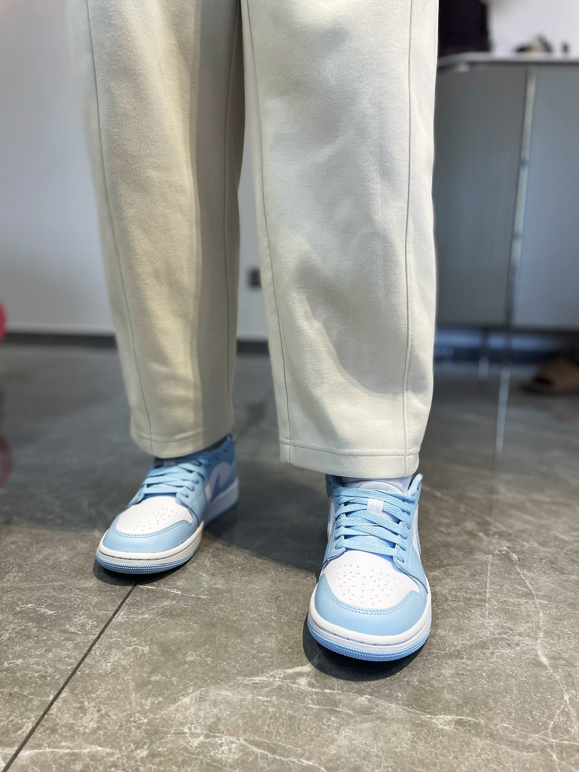 AJ1这么多款,已经成为调色板系列,但是这款浅蓝色的尤其得我心。是我最喜欢的一款蓝色,配色好看吸睛,男的穿帅气,女的穿好看。 💖鞋面材质选用了合成革材质,橡胶底。蓝白配色的搭配,颜值超级好看。 💞脚感还真是一般,但是颜值真的非常高。尤其是这个清新的配色,搭配都非常好看,颜值超级高,百搭款,牛仔,运动,休闲都可以轻松驾驭,非常值得购买的产品。