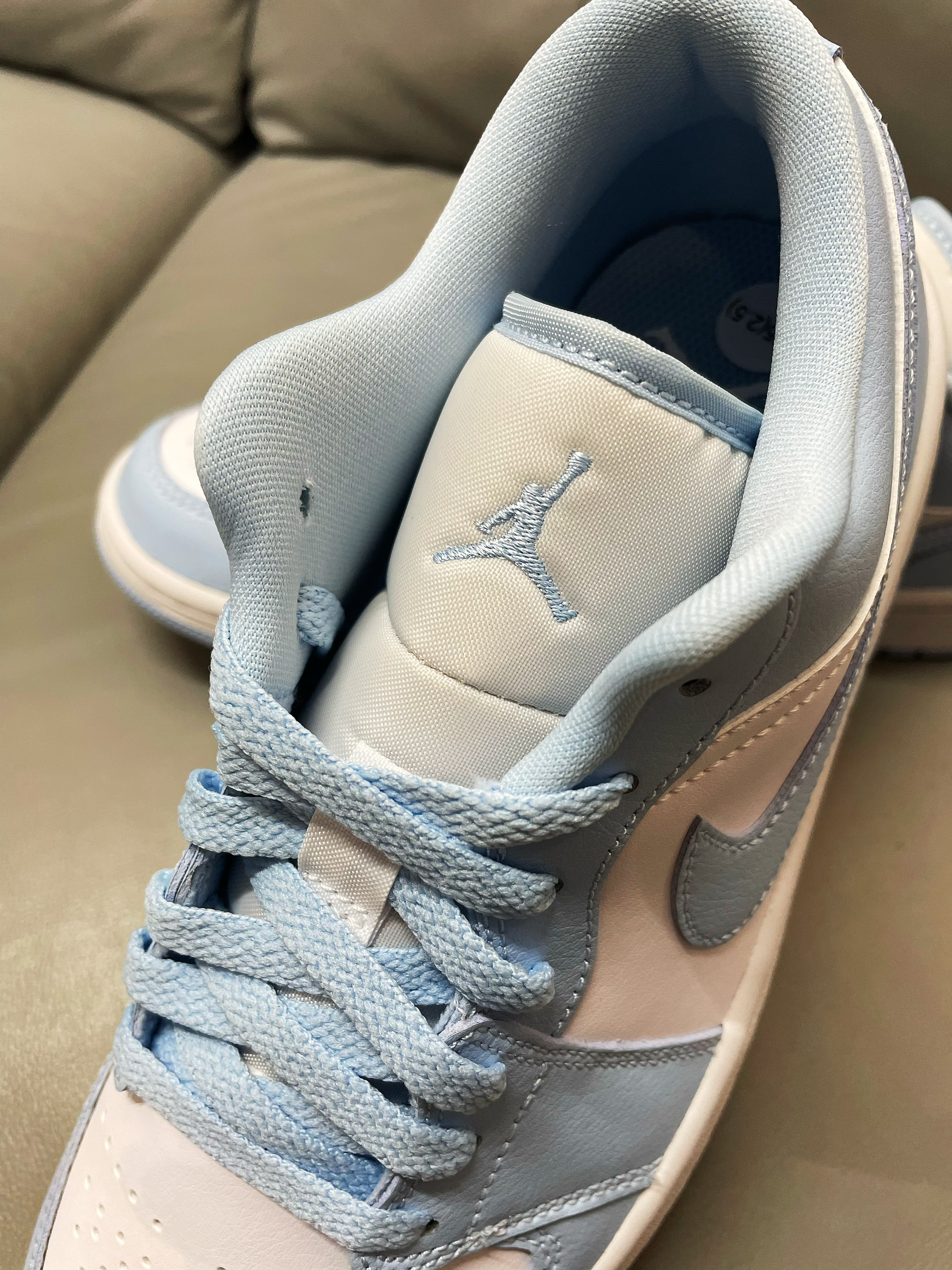 本篇笔记关联了Air Jordan 1 板鞋 运动休闲鞋 复古潮流支撑合成革 女款/低帮/天蓝/白色等商品,为用户提供真实的使用体验和购买参考。