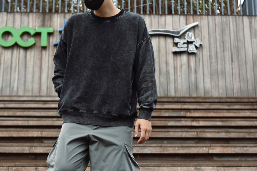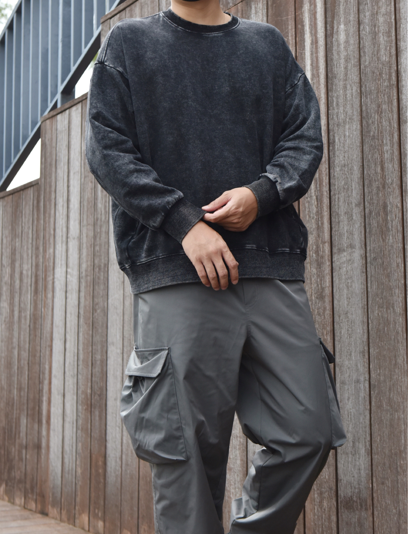 身高|体重:183 84kg 🧍♂️ 穿搭风格:水洗复古做旧风 👔 上衣:Producer.T 雪花水洗卫衣 👖 下装:PDCT梭织工装裤