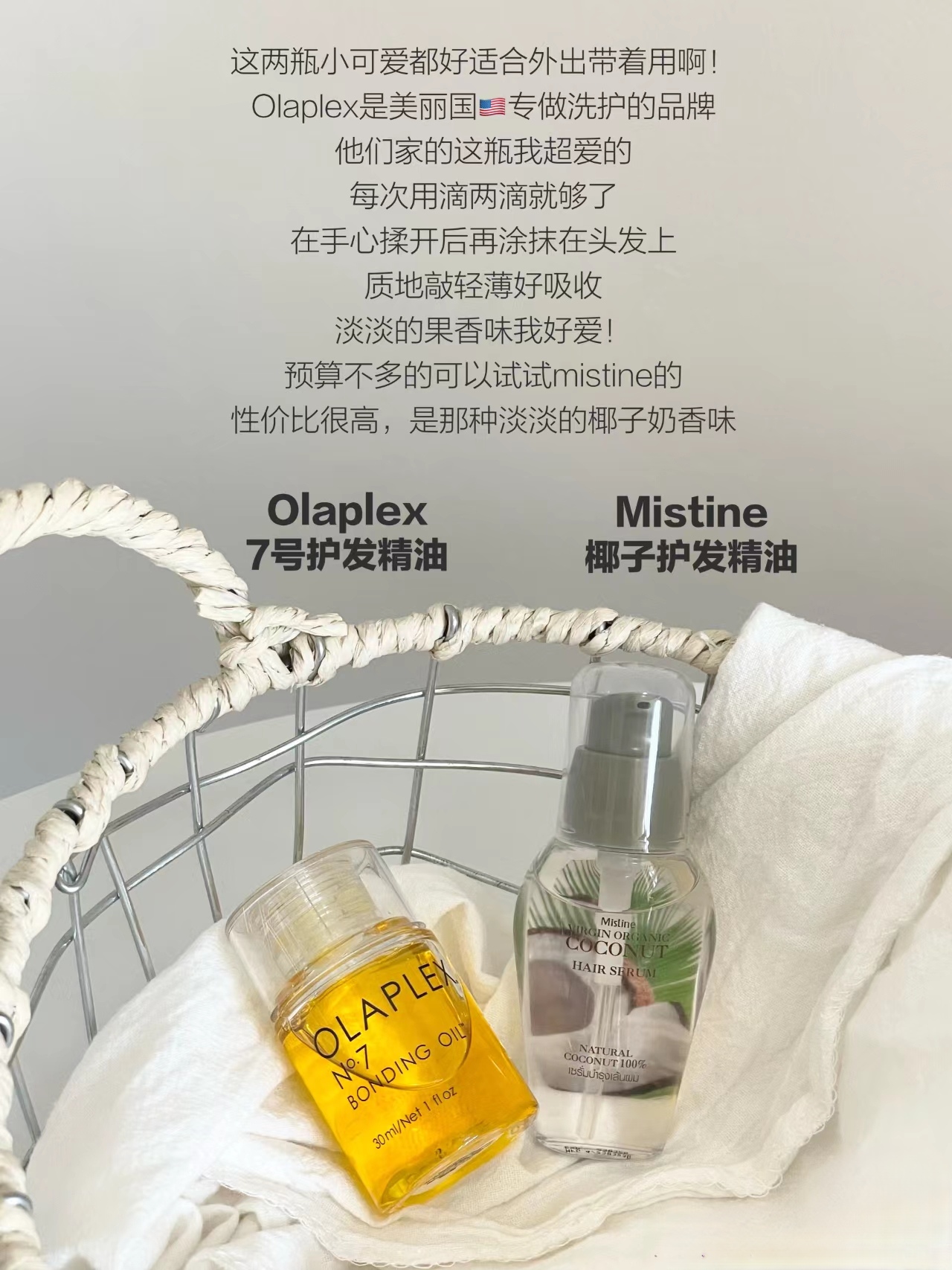 作为爱折腾头发的我 护发精油也是没少用 我就喜欢挖一些好闻的,我喜欢的香味 走路的时候,头发还有淡淡的香味 真的好迷人! 而且坚持用护发精油,真的是能看到回报的 发质会好很多 让枯草回春不是想想而已咧! 混合故事护发精油#野生遐想 艾薇德杏仁椰子油 Diptyque 身体油&发油#茉莉 Olaplex7号护发精油 Mistine 椰子护发精油 爱茉莉护发精油#经典版 Isana 樱花护发精油 An...