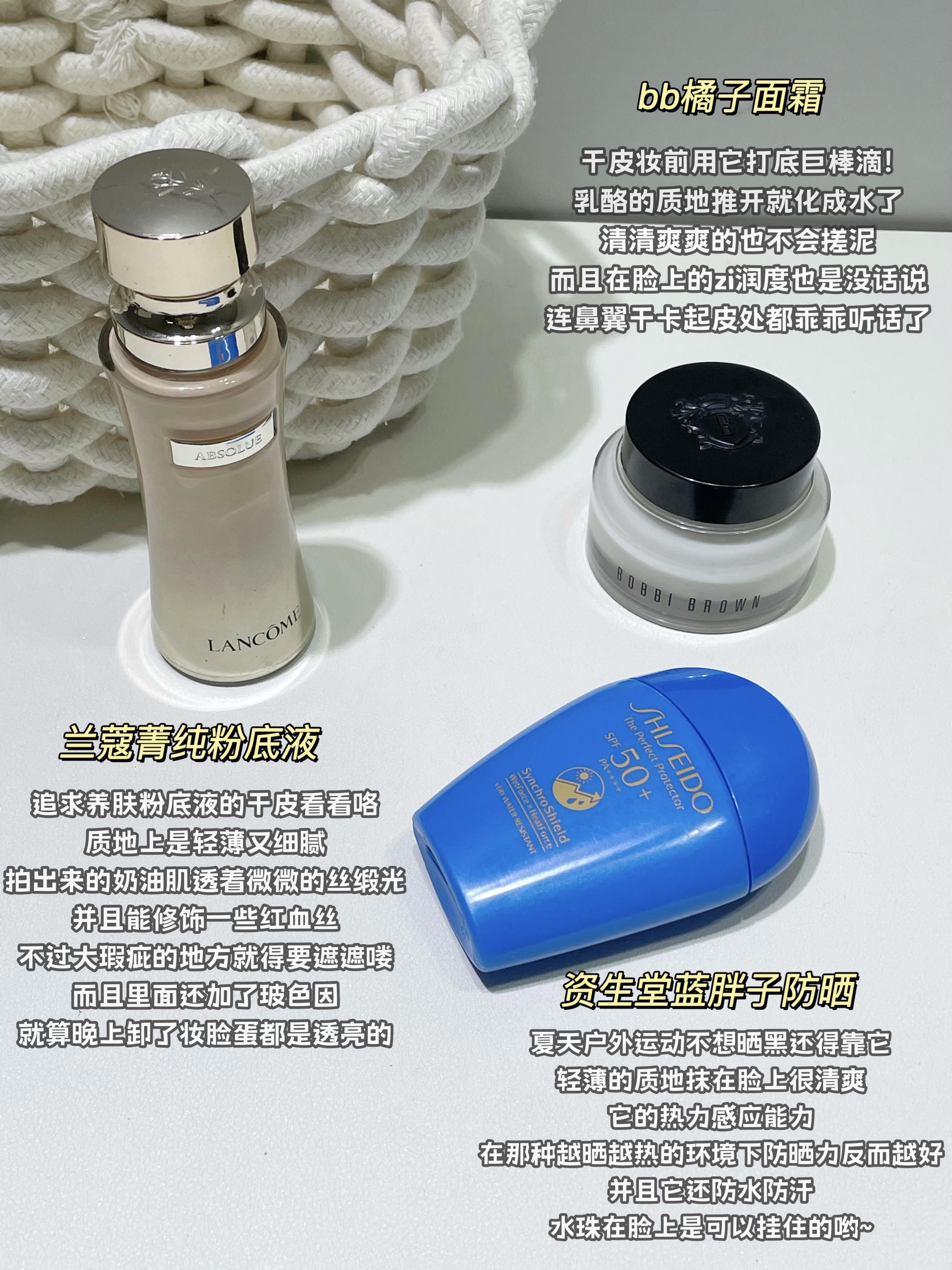 本篇笔记关联了Shiseido/资生堂 蓝胖子新艳阳夏臻效水动力防晒乳霜 清透水润 黄字滋润型SPF50+、BOBBI BROWN/芭比波朗 五花肉高光 细闪晶亮 8g 1号自然水光Pink Glow、Lancome/兰蔻 1.0菁纯臻颜精华粉底液 养肤清透 35ml 100粉一白 粉白肤色等商品,为用户提供真实的使用体验和购买参考。