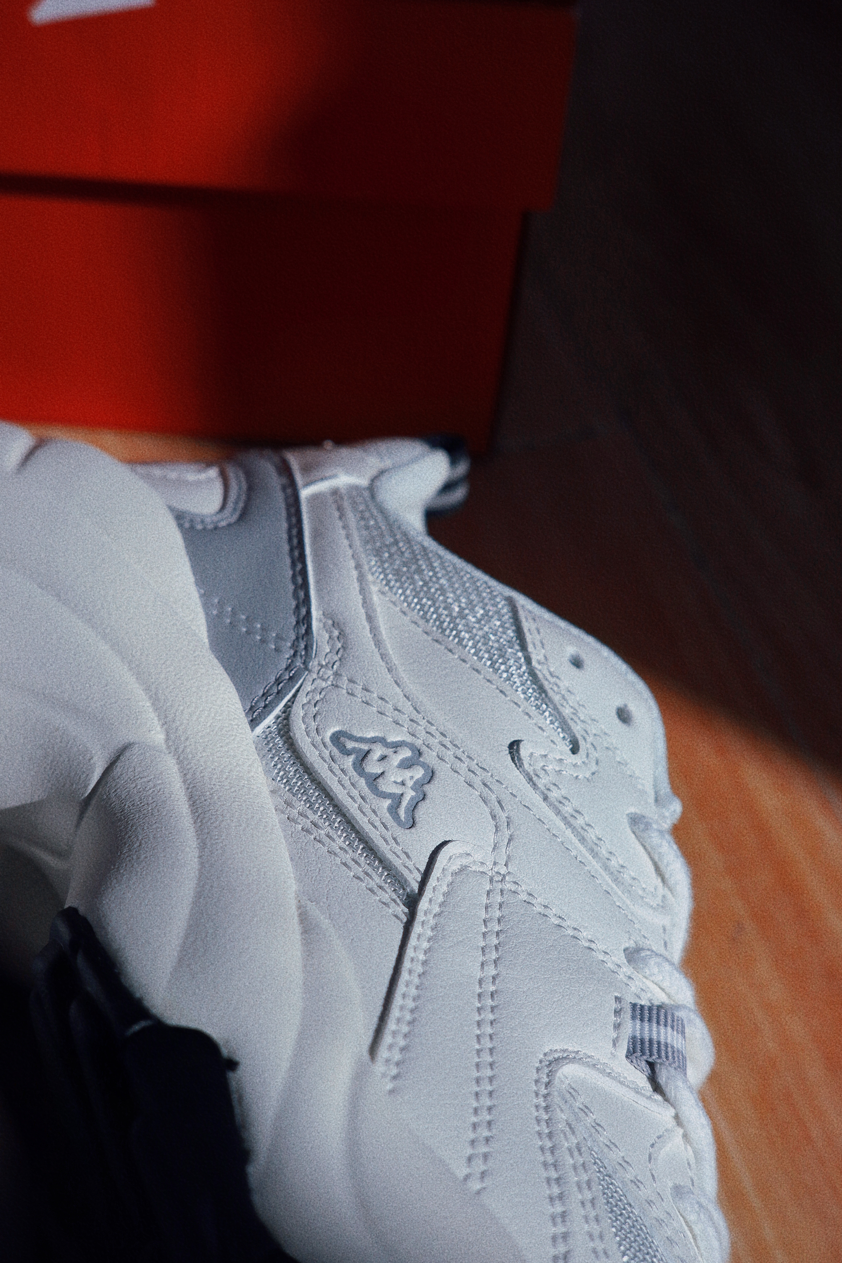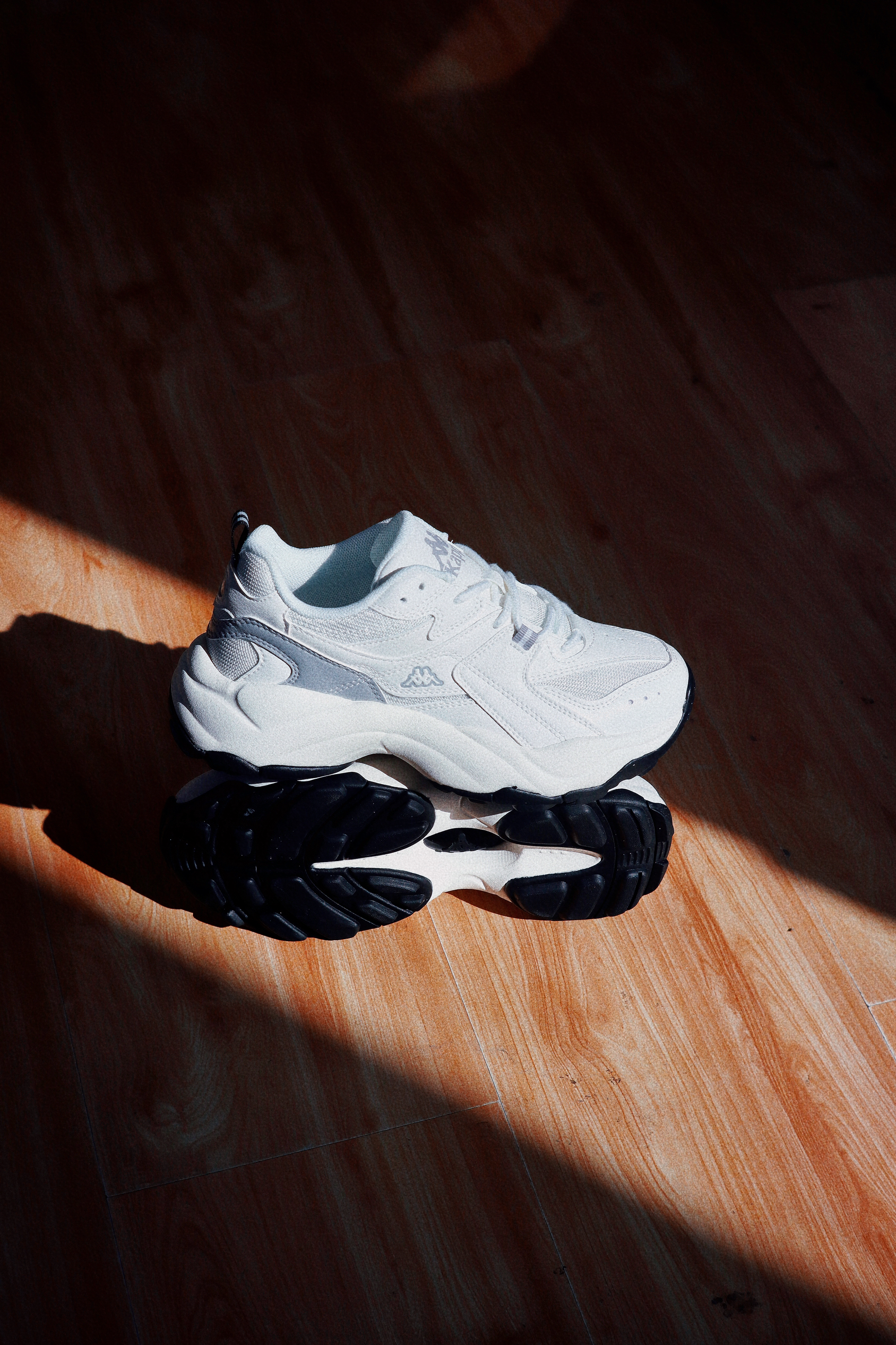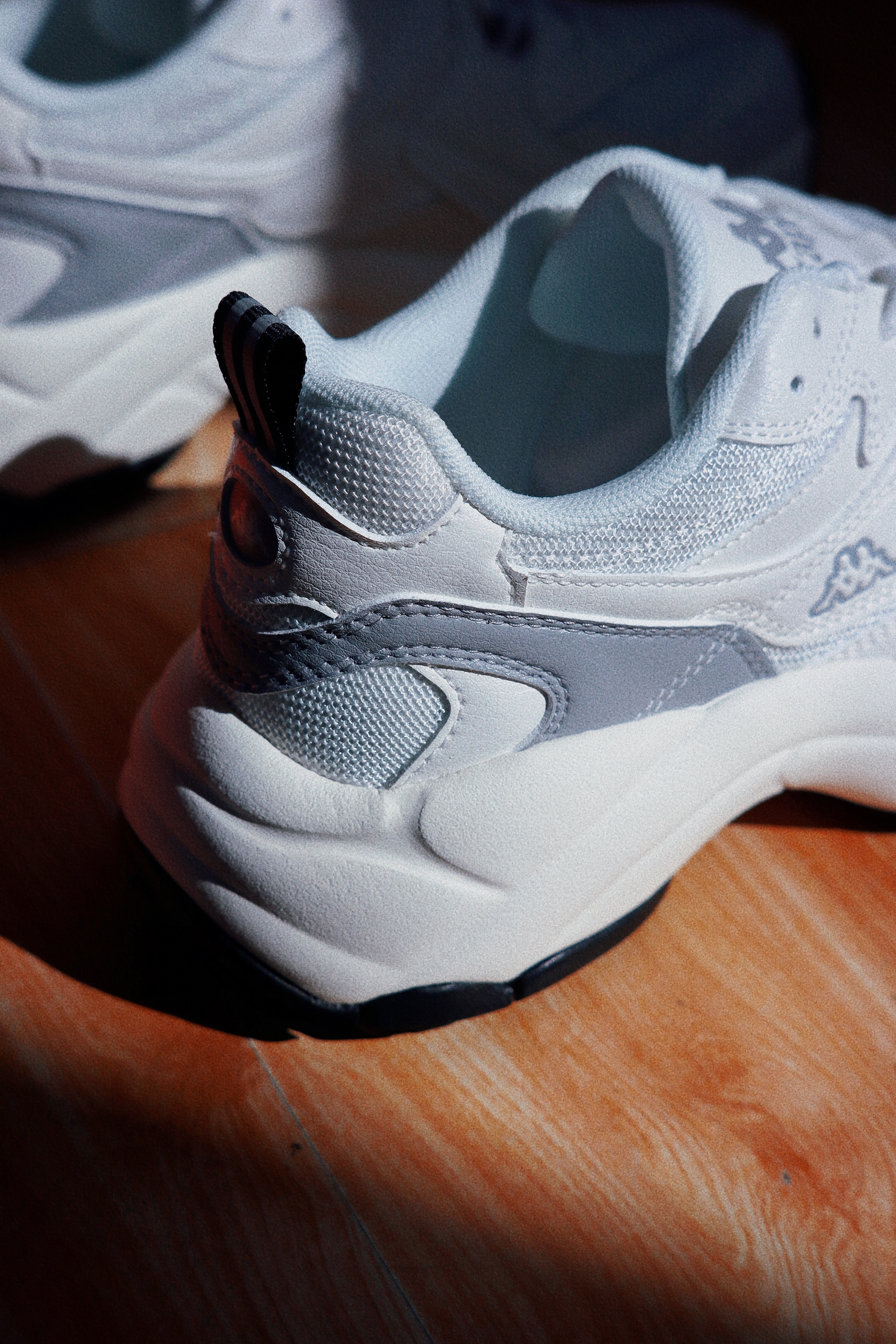 虽然是老爹鞋的鞋型,但这双 Kappa 无论是配色或是整体设计都带有运动风格,反而有种眼前一亮的感觉,白色的基调搭配些许的银色点缀,避免太过沉闷,宝藏鞋入手入手