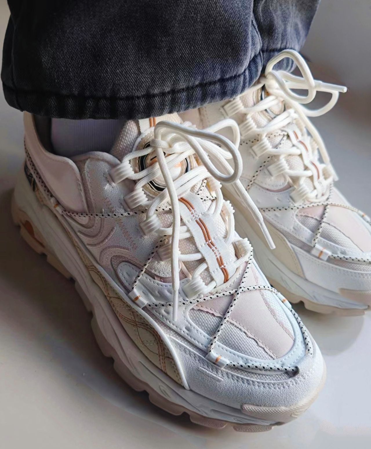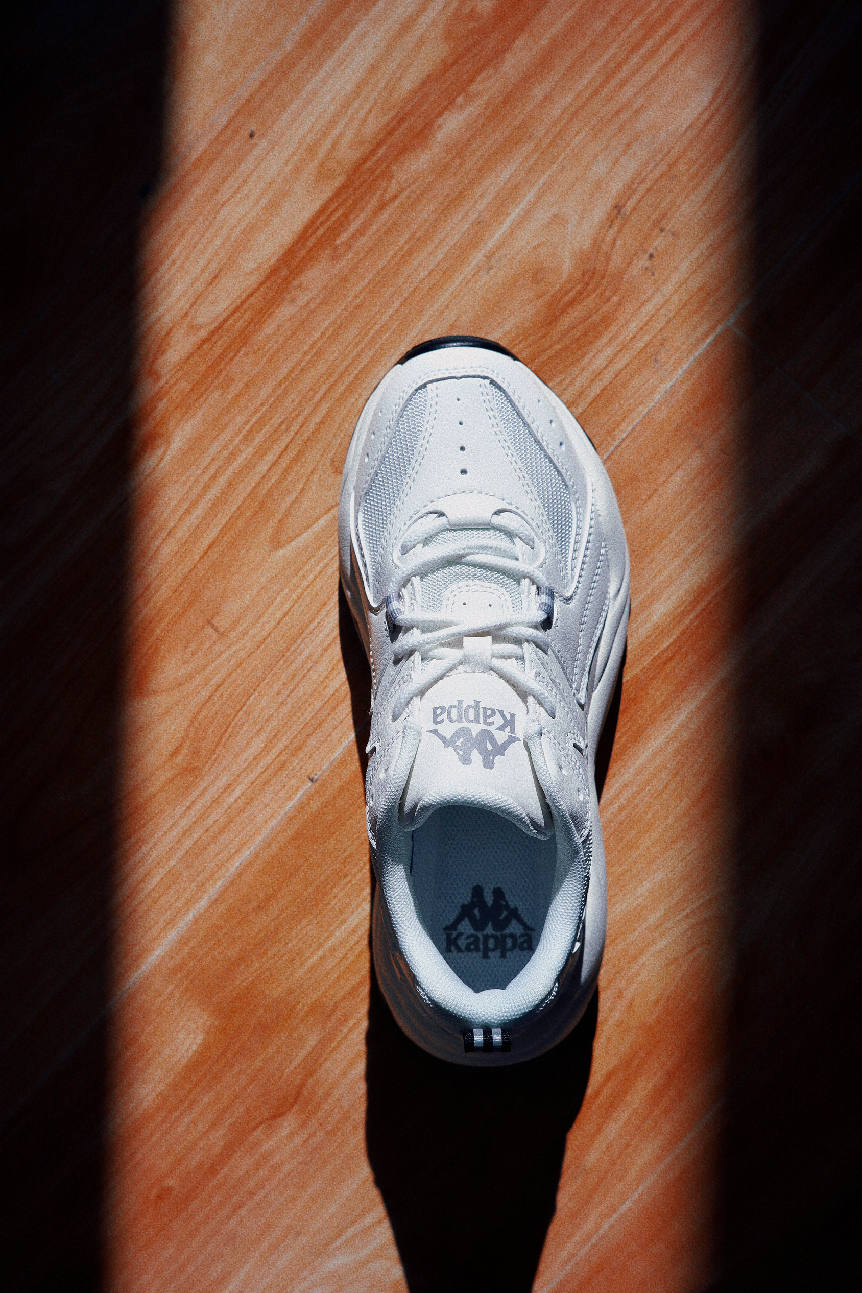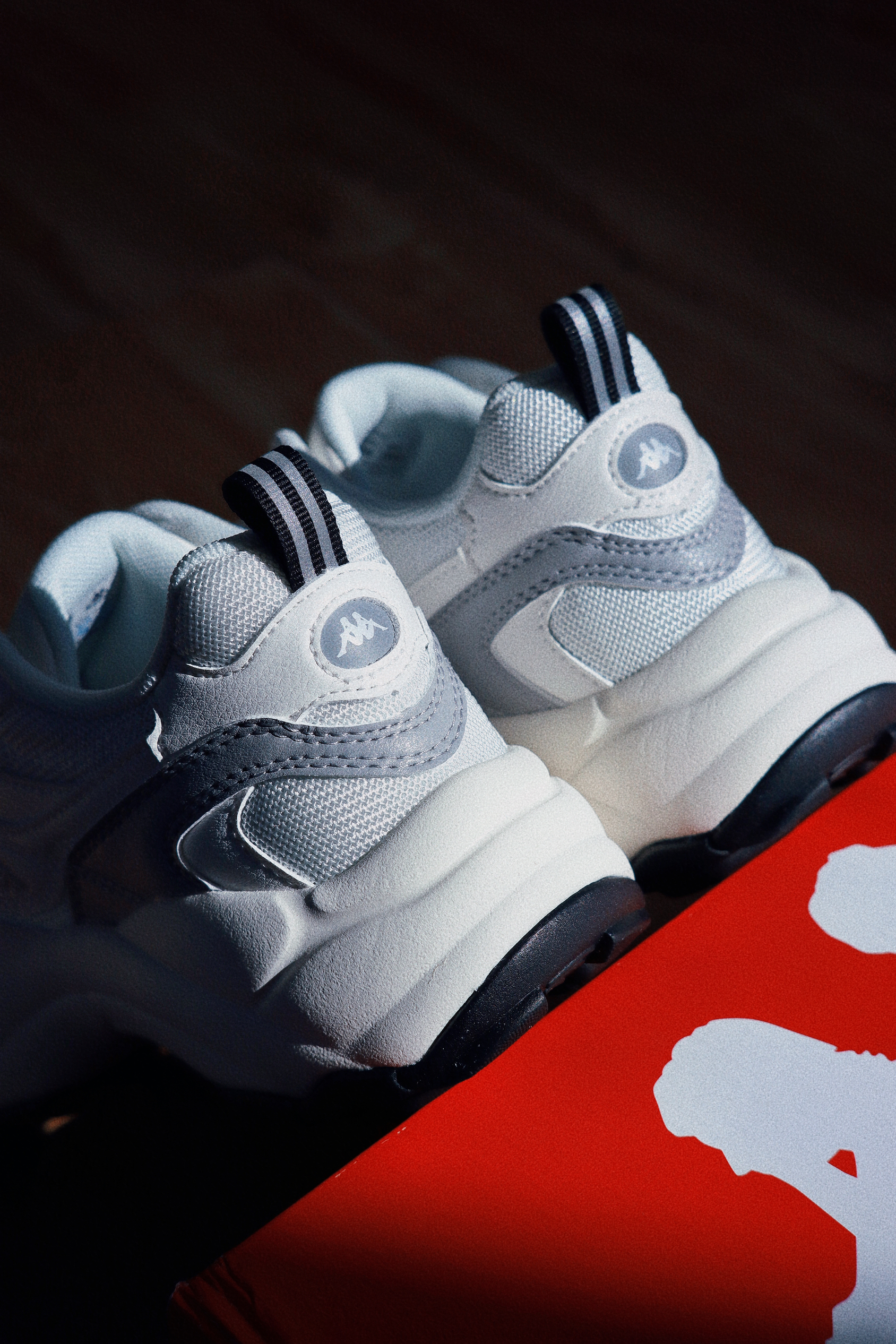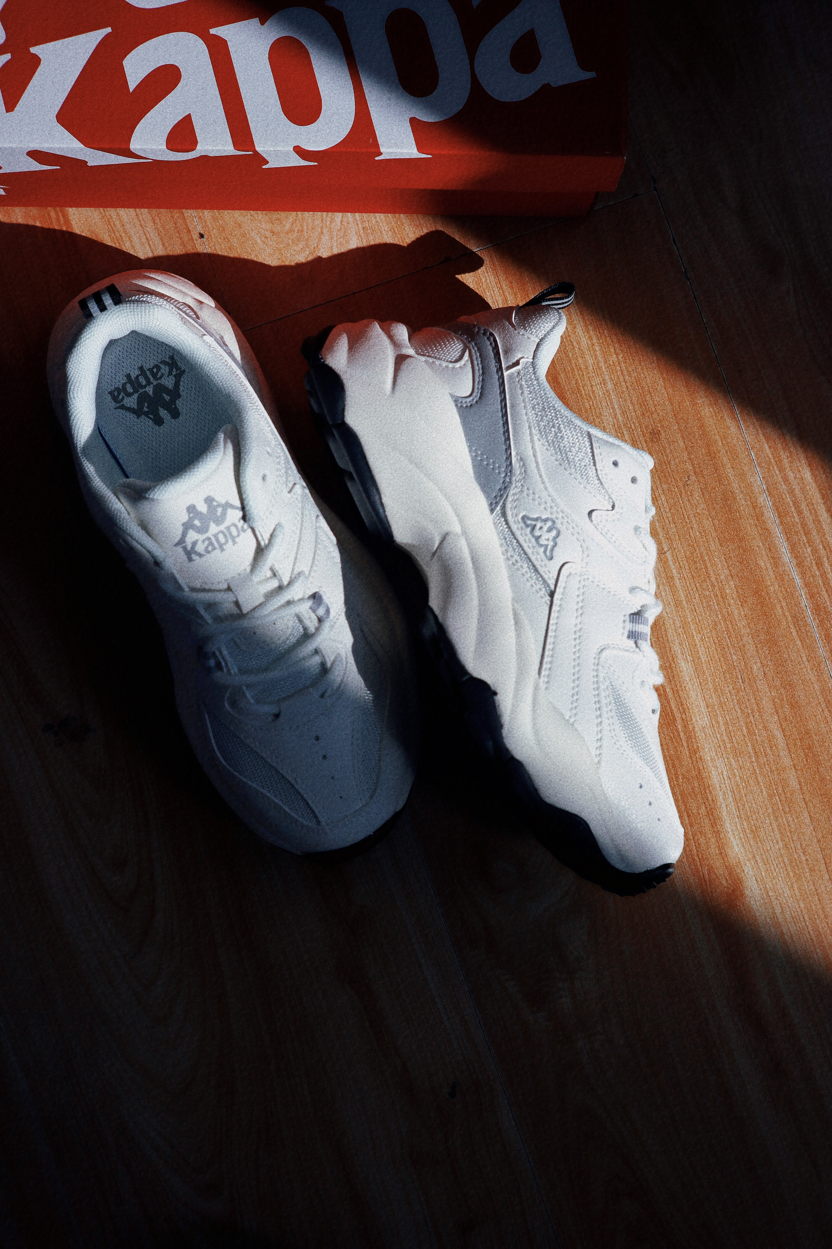 虽然是老爹鞋的鞋型,但这双 Kappa 无论是配色或是整体设计都带有运动风格,反而有种眼前一亮的感觉,白色的基调搭配些许的银色点缀,避免太过沉闷,宝藏鞋入手入手