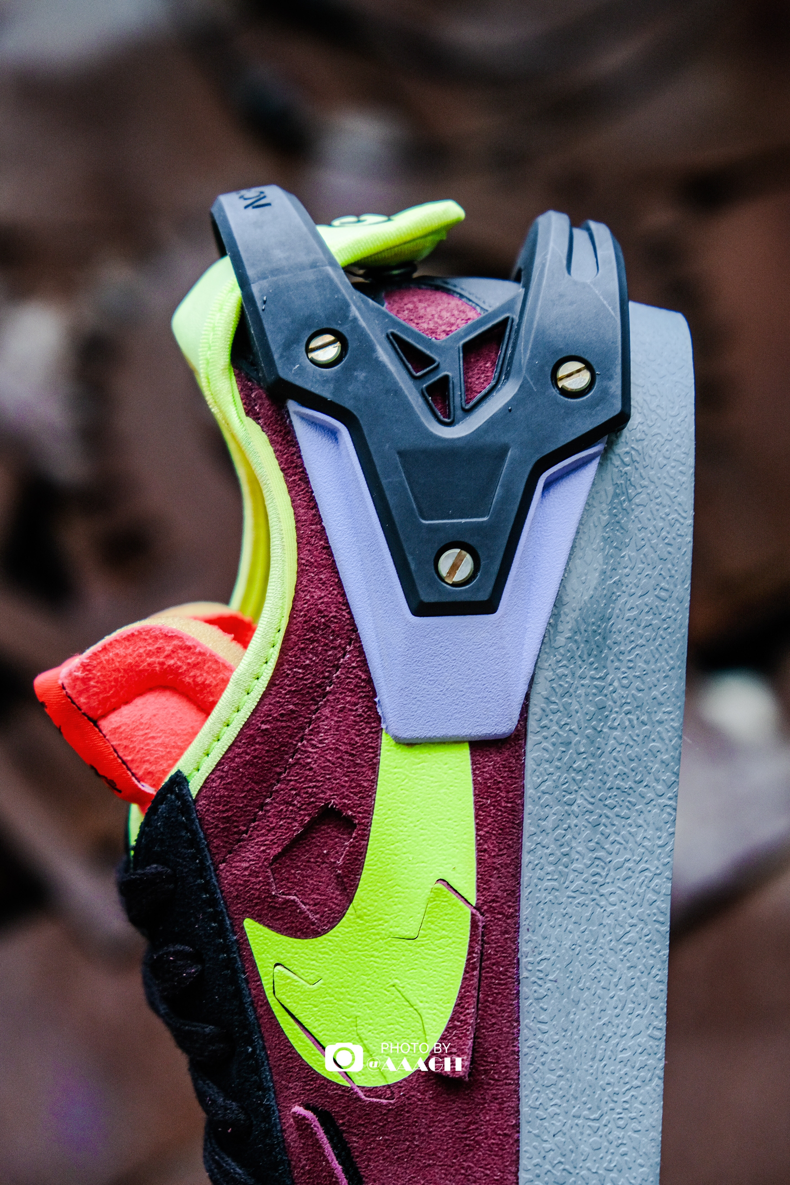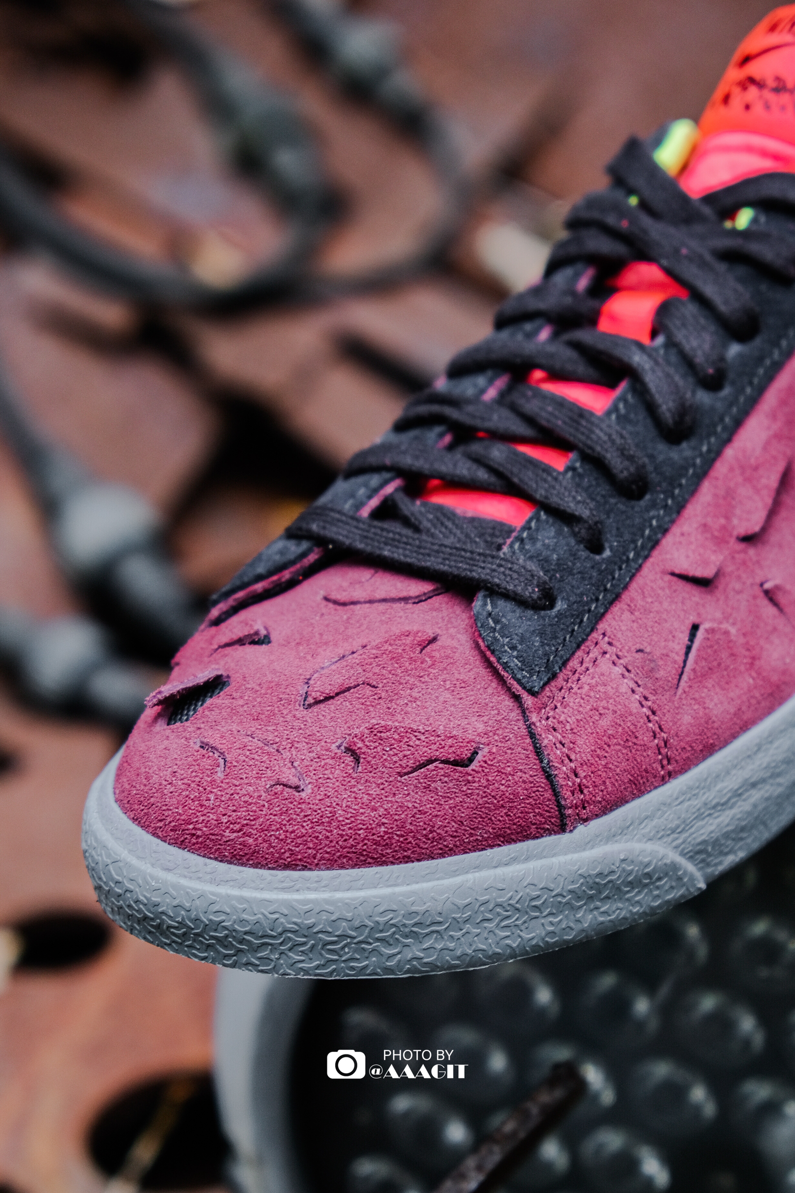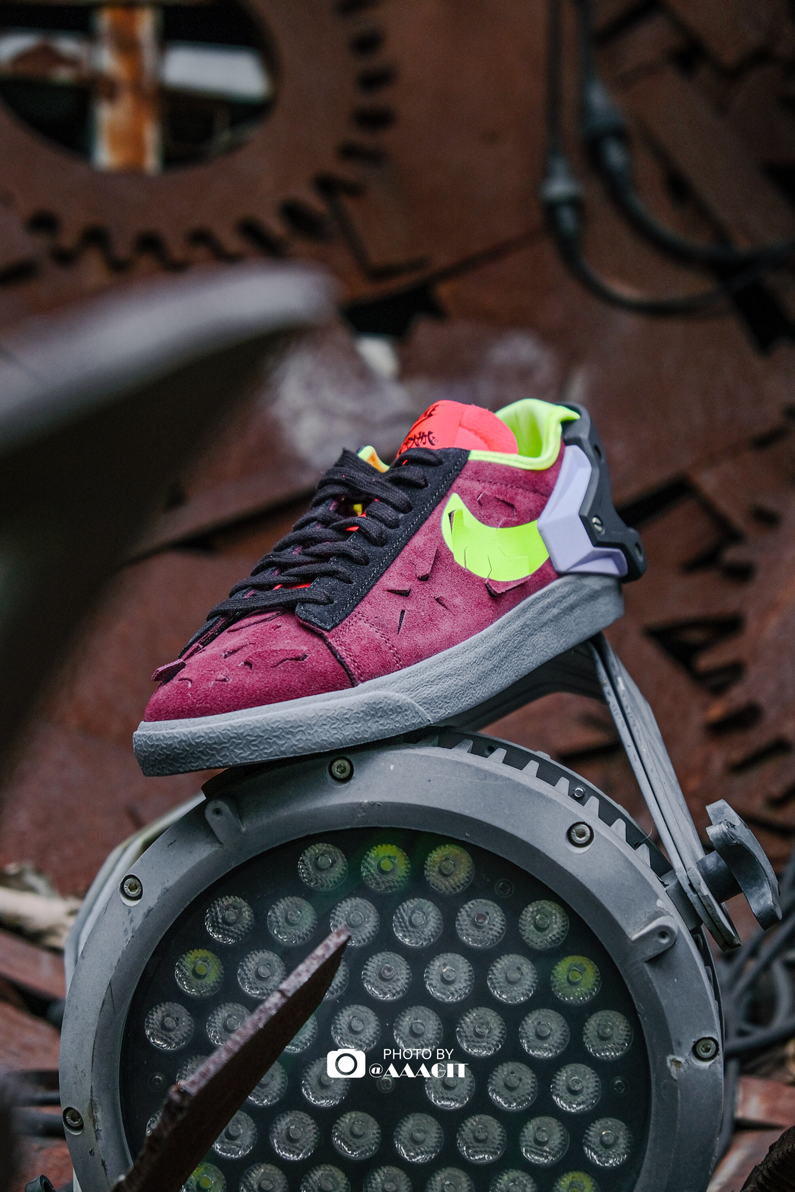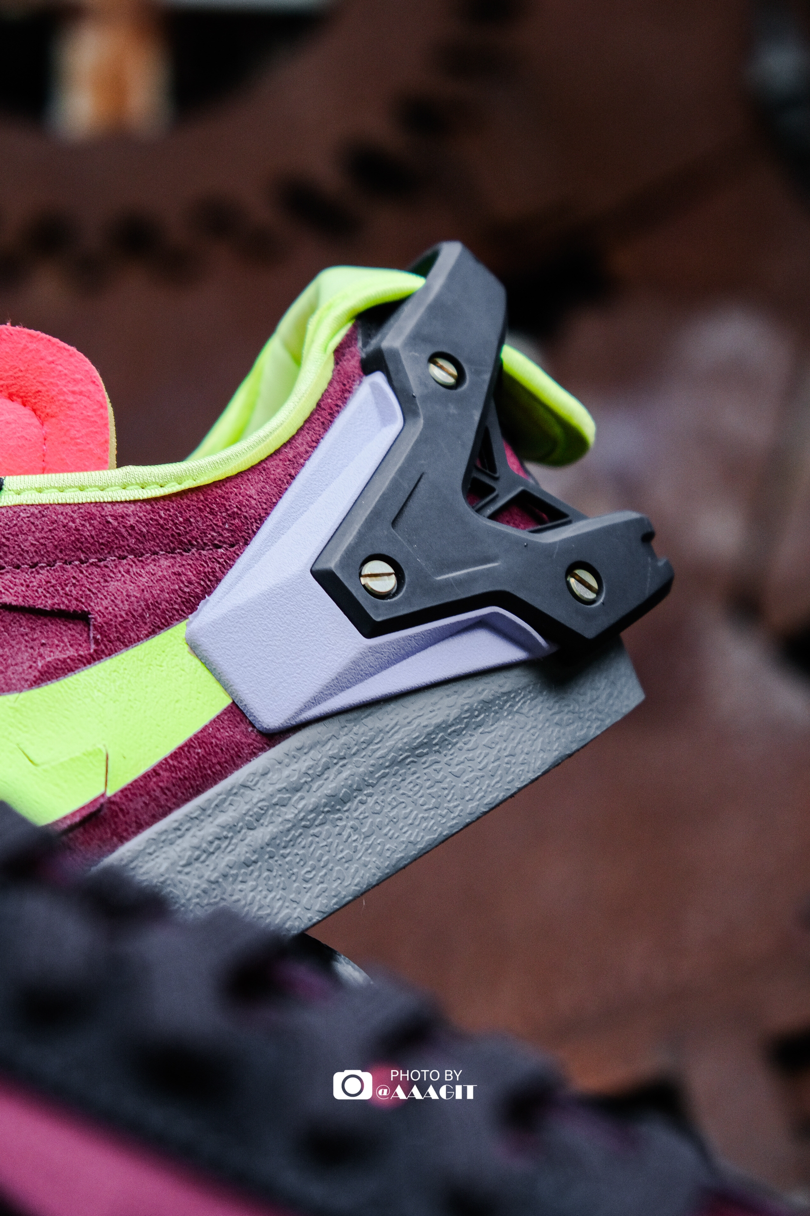 👟ACRONYM x Nike Blazer Low 作为机能风格的代表,ACRONYM 与 Nike 的每次联名都备受期待,今天翻出了这双在去年年初登场的 Blazer Low,依然被它的设计惊艳到! 材质方面是切割开的麂皮,非常特别,切割的图案也是品牌的手里剑 Logo,配色方面也足够特别,紫红黄等点缀还是有些考验穿搭功底的,当然最值得一提的还是后跟设计了!