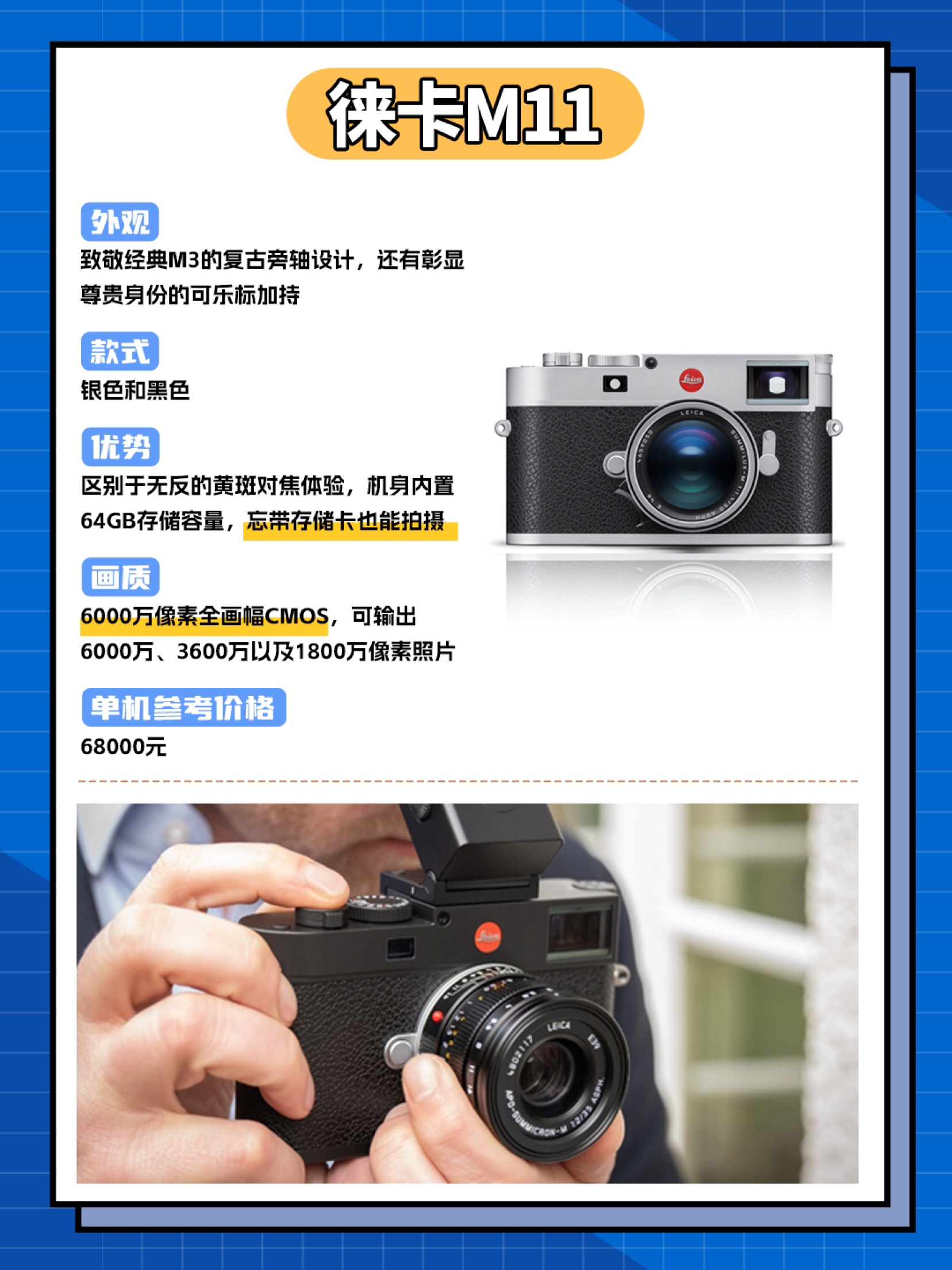 本篇笔记关联了Leica/徕卡 M11 微单相机 全画幅 旁轴 银色、Nikon/尼康 Zf 微单相机 全画幅 防抖 翻转屏 可触控 视频拍摄 黑色等商品,为用户提供真实的使用体验和购买参考。