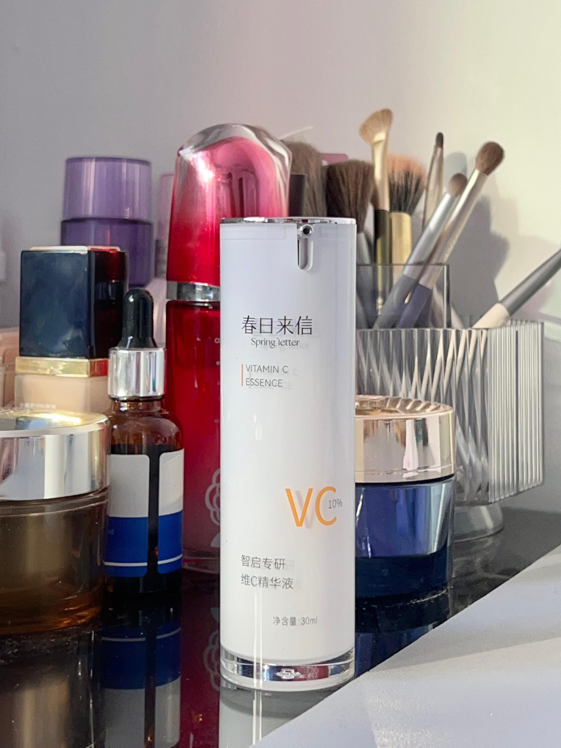 天天熬夜,又喜欢吃甜食的我 脸是一天比一天黄、黑 自从我用了春日来信VC精华液 好像发现新大陆了!! 这肤感和效果在百元内 已经到顶了 浓度10%,新手用也没问题 流动性很强,清清爽爽好吸收 用一段时间后,小脸有变亮堂 皮肤由内而外的的发着光 是素颜也能出门的程度!