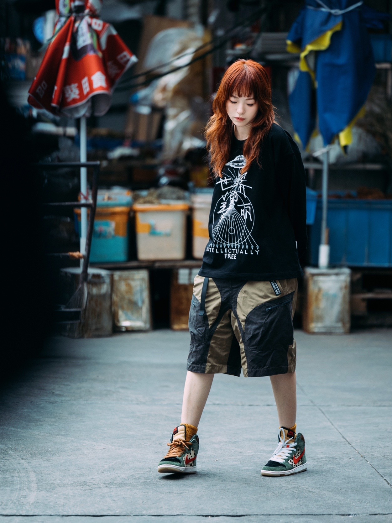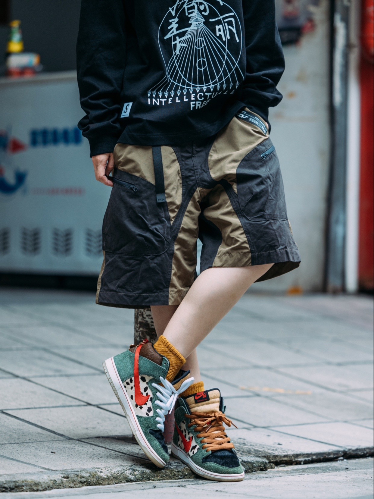 黑色的卫衣,不规则设计的工装短裤,宽松又舒适 简单的上长下短,没有太多叠加。 那就可以利用高帮的鞋子和露出的袜子作为增加层次感的小道具啦! #工装风穿搭 #工装短裤 #谁说短裤不潮流 #工装风搭配 #穿搭博主ootd