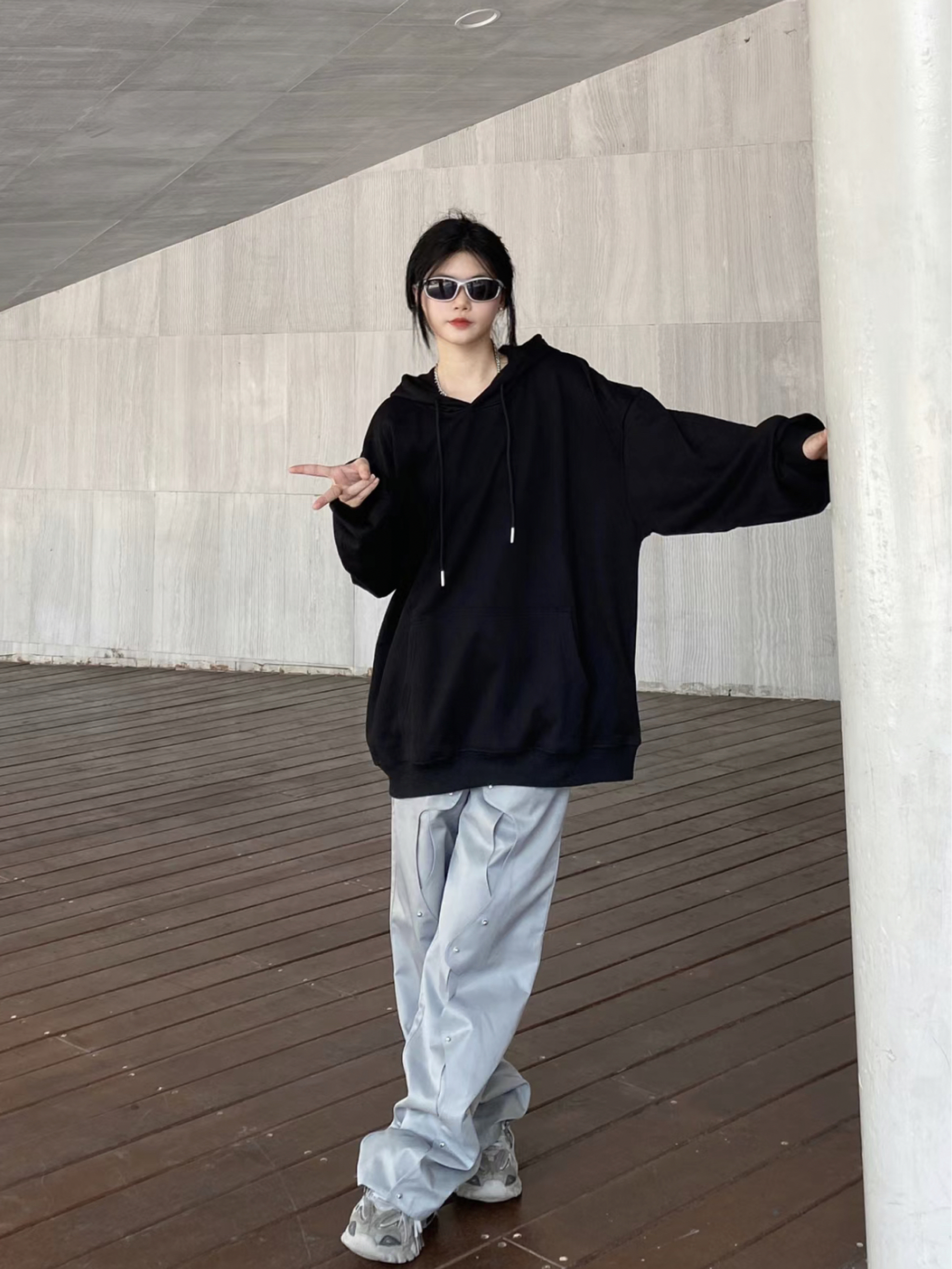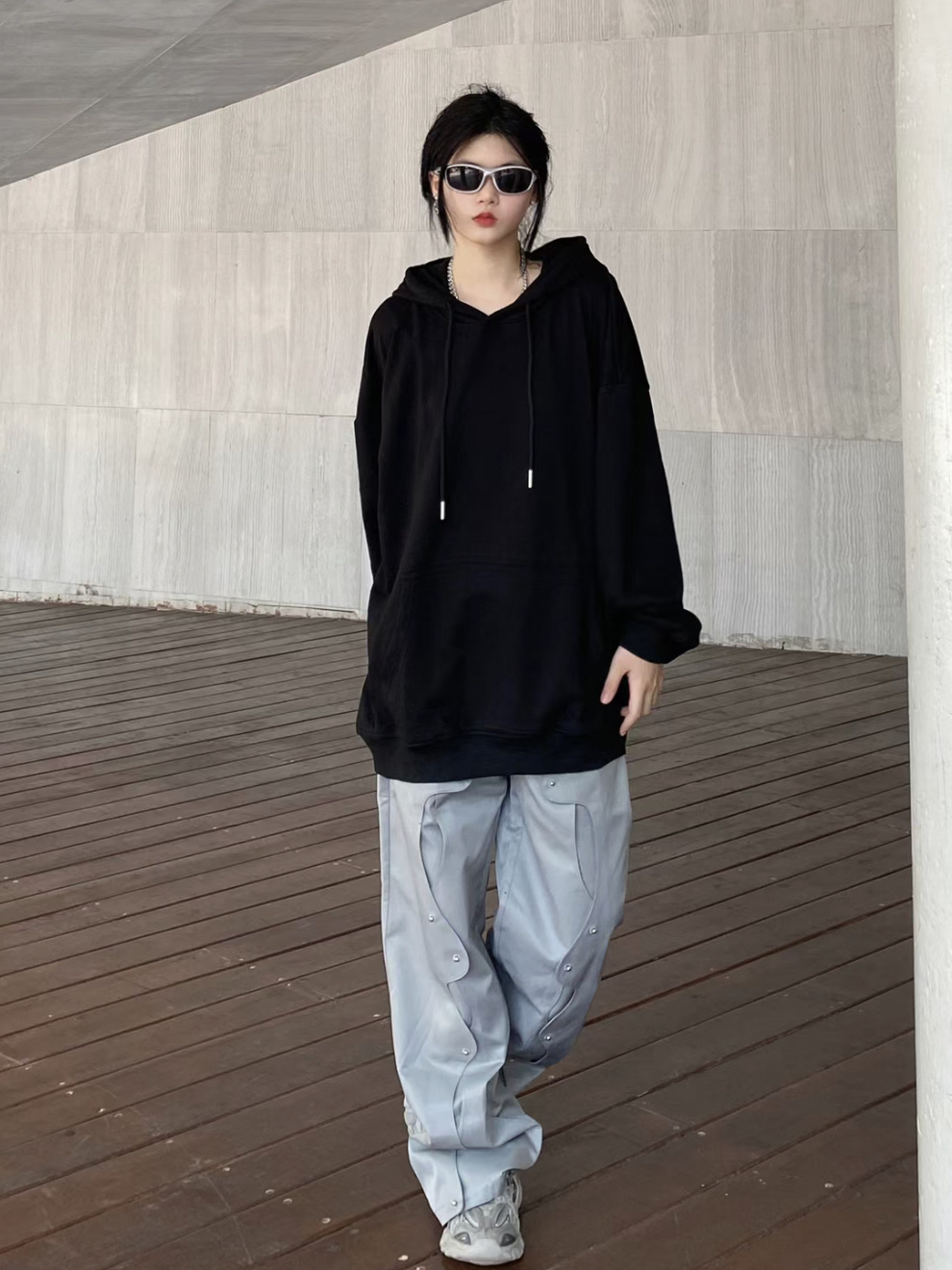 真的被拿到手的卫衣质感震惊到了,纯黑色干干净净的,加绒的摸着手感很细腻,贴身穿也很舒服,比有的店一两百的卫衣质量还好!版型是落肩款,卫衣底部是收紧一些的,想要宽松些的姐妹可以要选大一码!纯色卫衣真的很适合秋冬当大衣棉衣的内搭了,是干干净净绝对不出错的款,很适合学生党~ (图片来自网络,侵删)