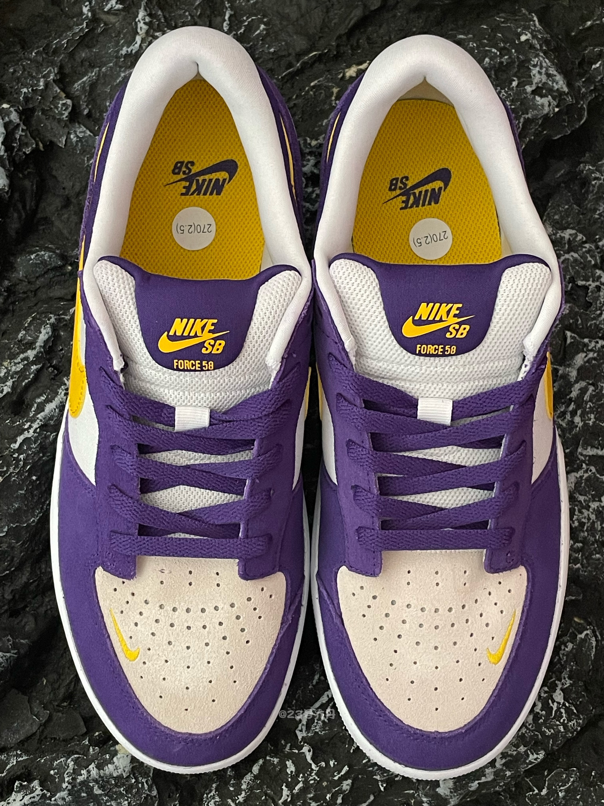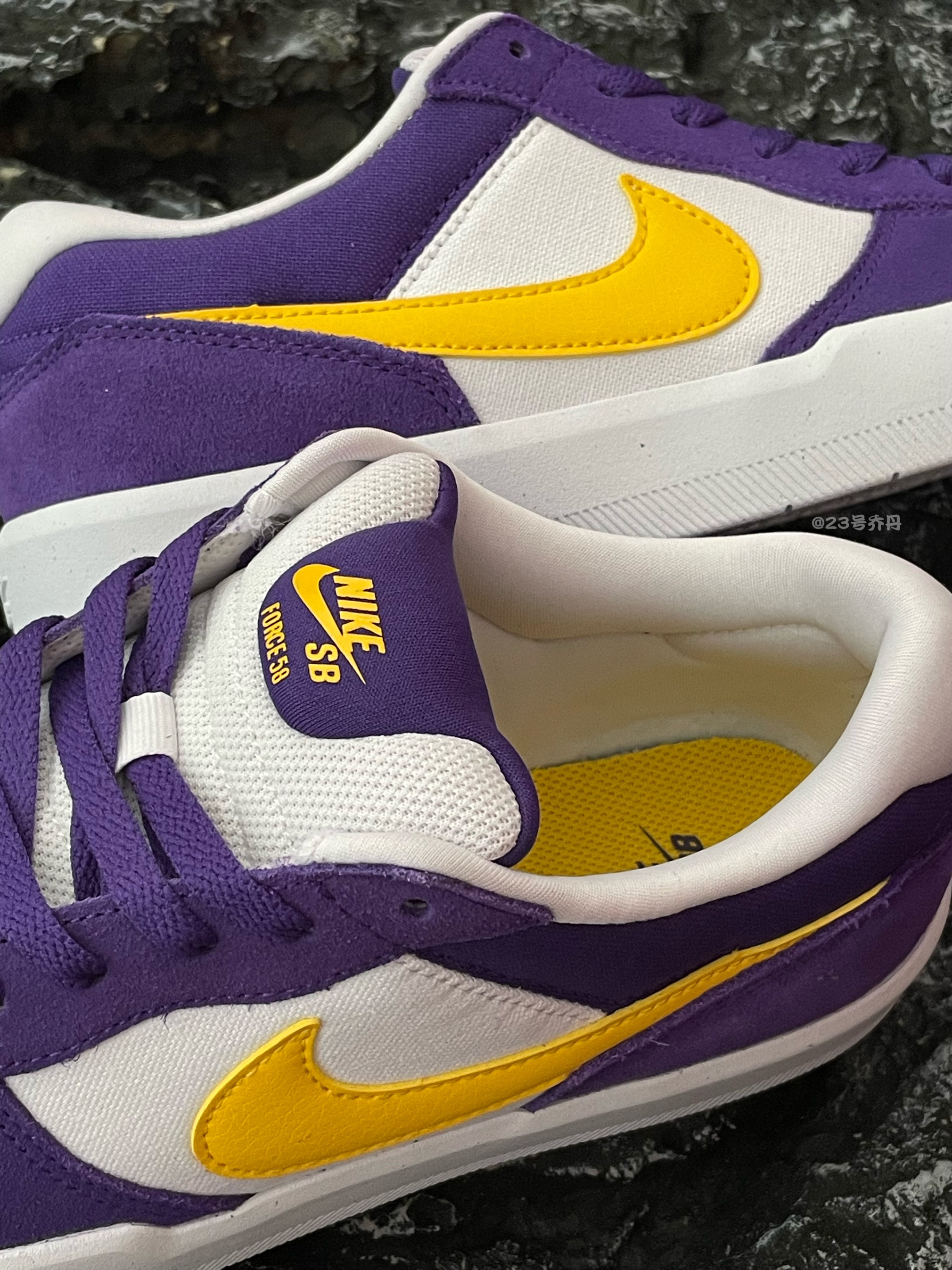 今天给大家分享这双近期发售的 Nike SB Force 58『紫色』板鞋👟 整双鞋采用了米色/紫色/黄色/白色等搭配 鞋面选用了翻毛皮+织物+荔枝纹路皮革拼接 整体的质感到位 翻毛皮和织物会难打理一些 鞋头密集的透气孔保证了较好的透气性 并且在外侧设计有黄色刺绣的MiniSwoosh 鞋舌部分呈现有胶印的品牌Logo信息 白色的中底和同色的橡胶大底收尾 整体来说这是一双兼具颜值和质感的板鞋 配色...
