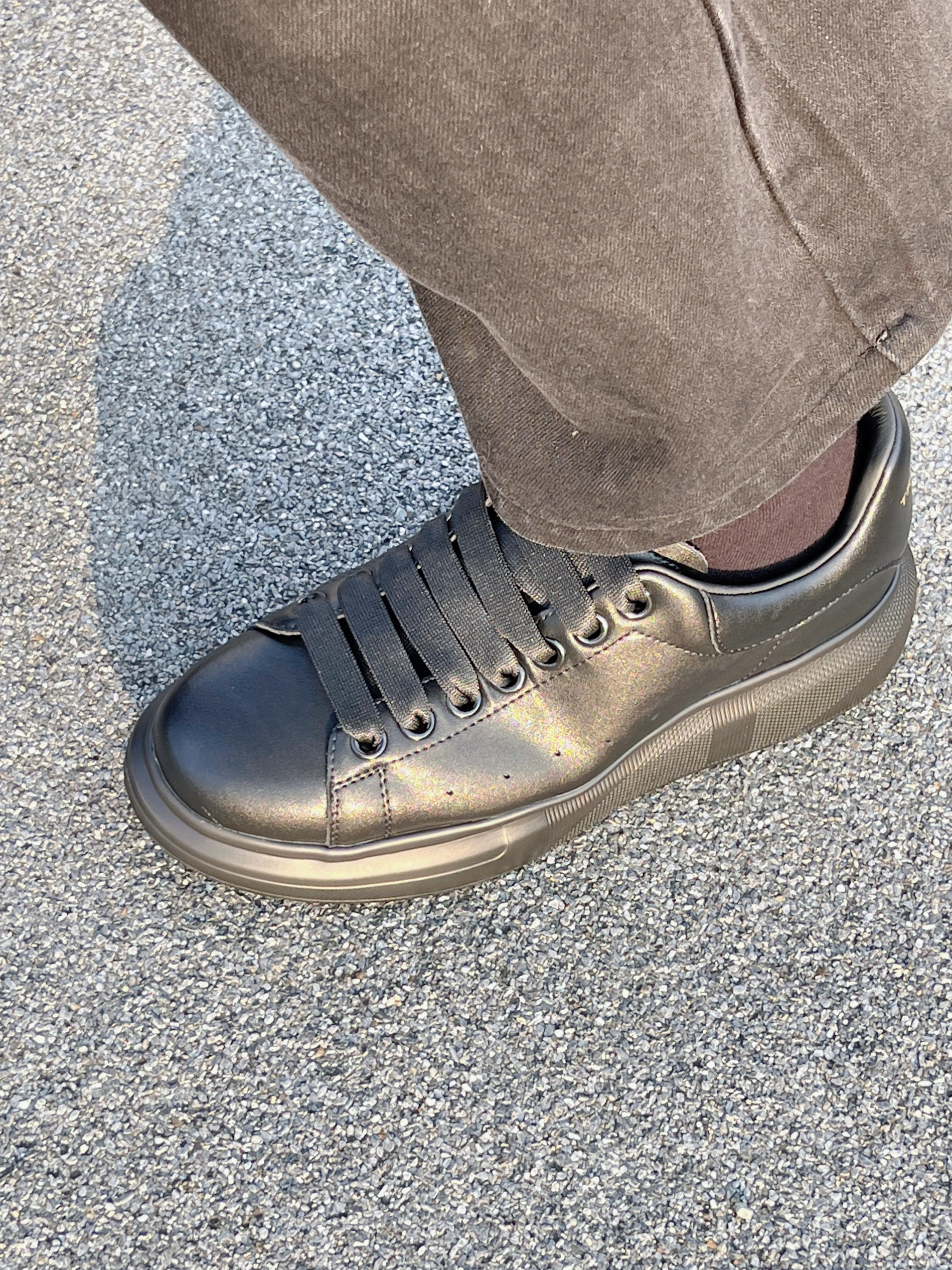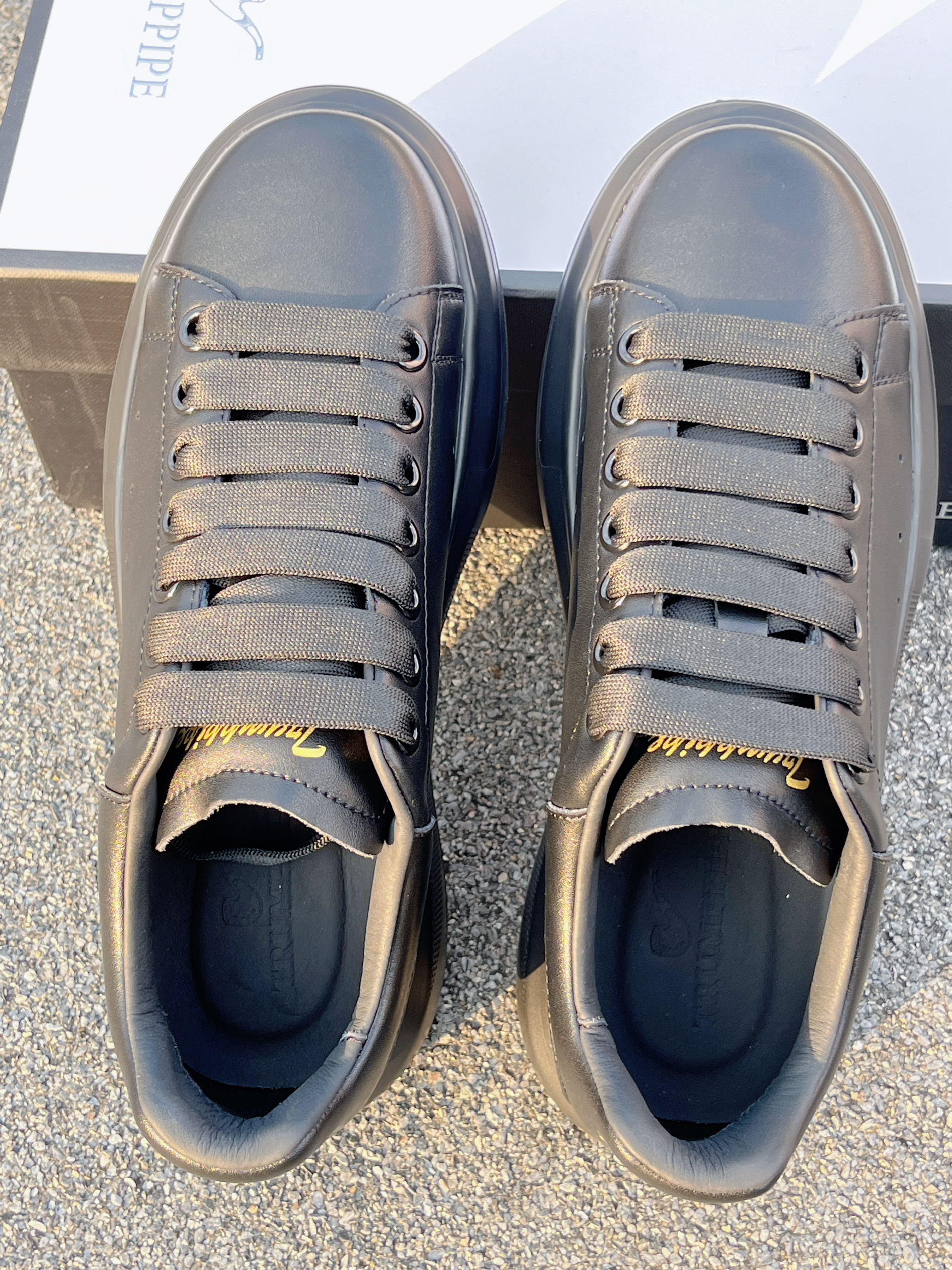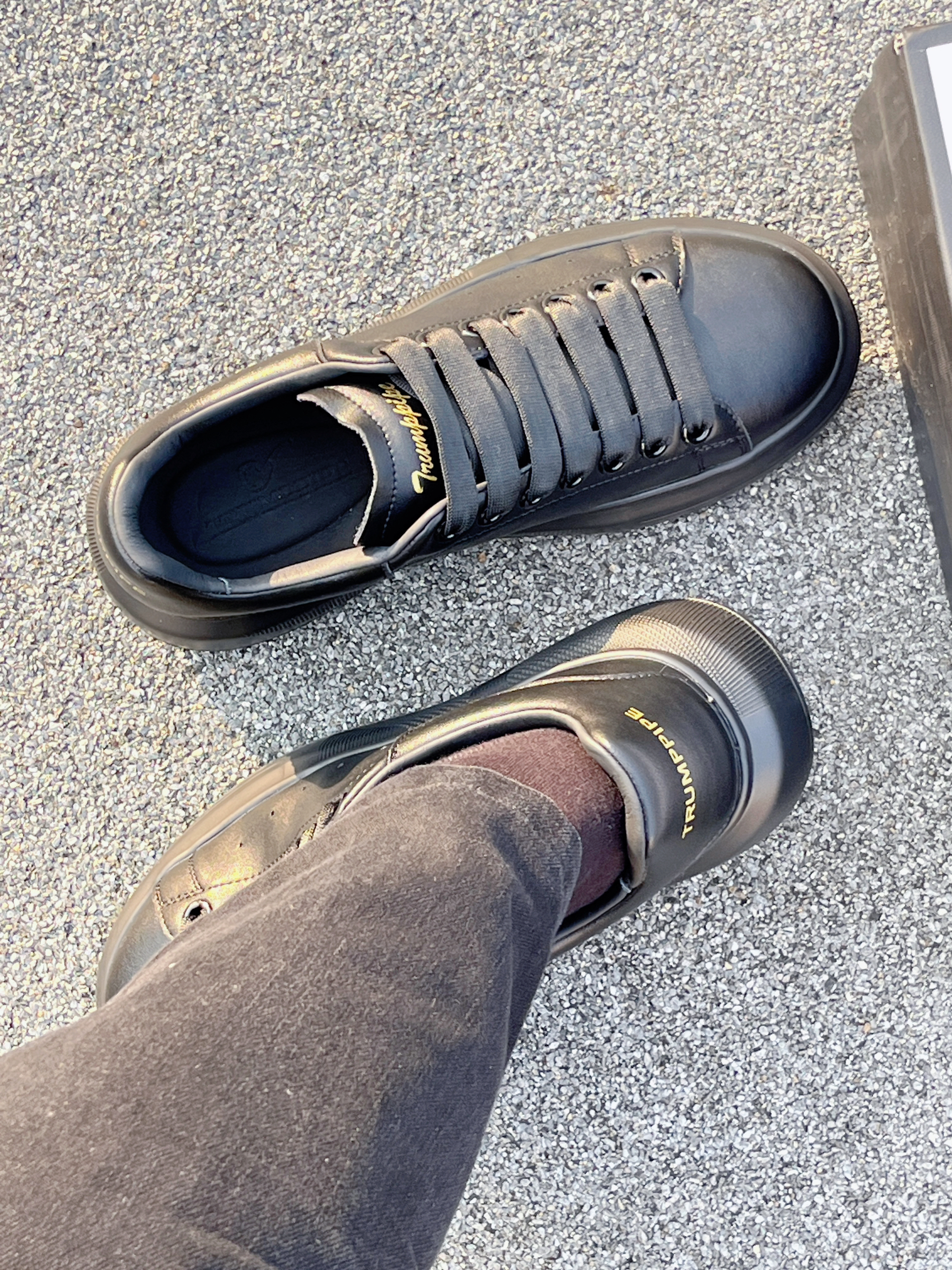 来啦💫这里是小奶冰🧊 今天分享的是一双休闲鞋 这款鞋的鞋面采用了皮革材质👞 鞋面有光泽💿细腻 鞋边还有透气小孔 🉑️散热 黑色的配色简约大气✅上脚很舒适 微微增高的效果走路都带风💨💨💨