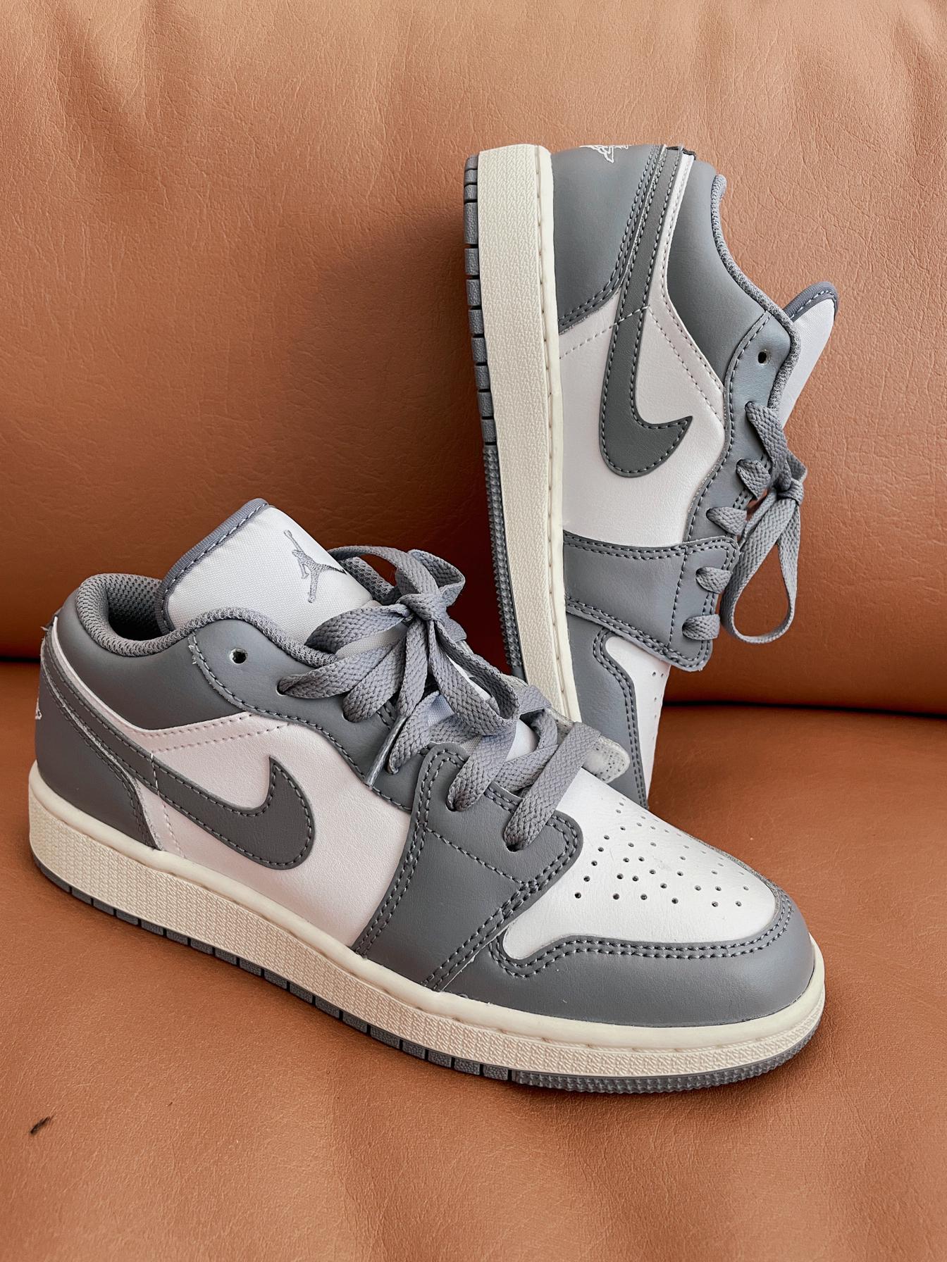本篇笔记关联了Air Jordan 1 板鞋 运动休闲鞋 复古潮流支撑合成革 GS/低帮/白色/灰色等商品,为用户提供真实的使用体验和购买参考。