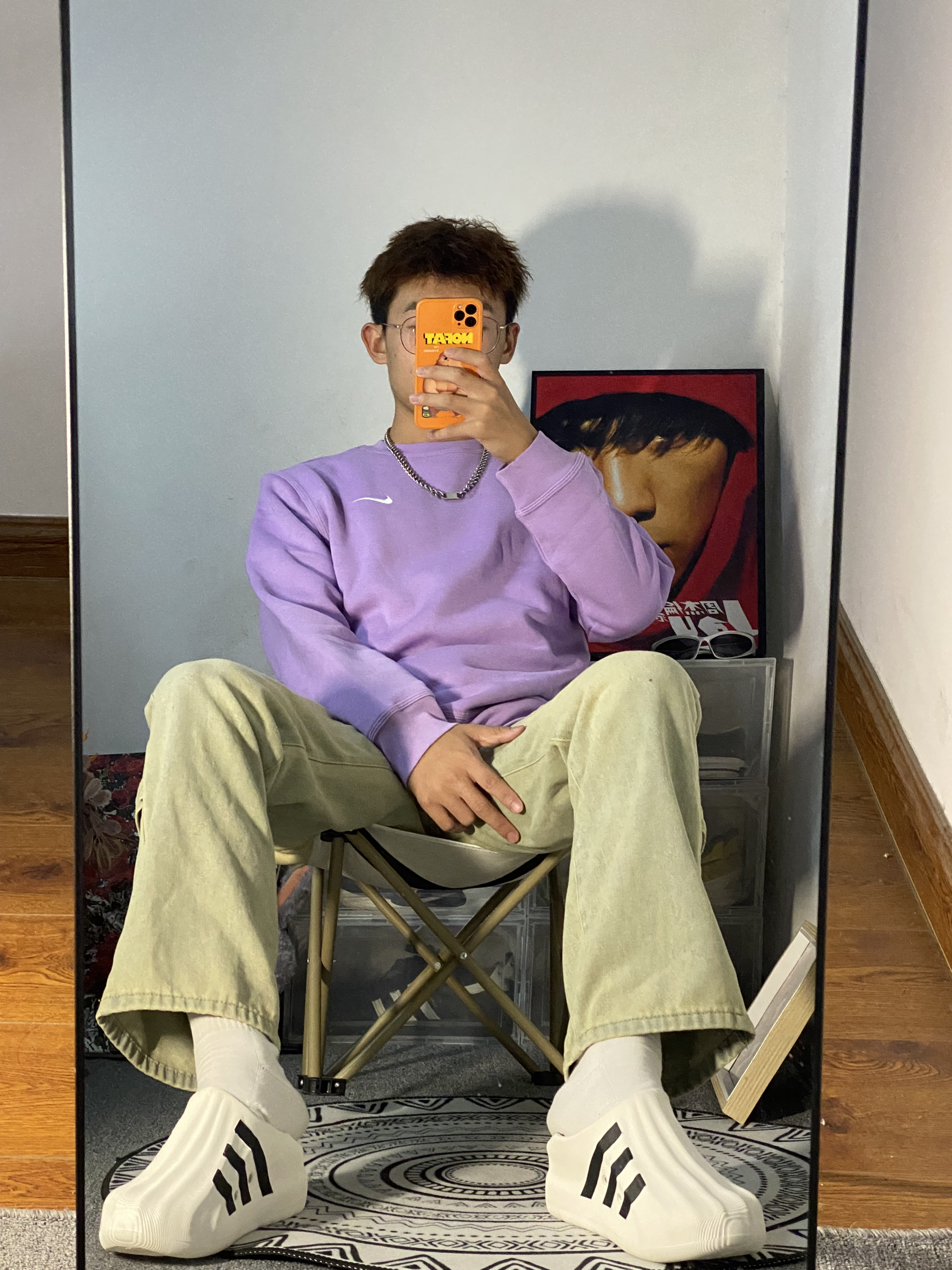 👔今天给大家上身的是一件芋圆紫卫衣 第一次穿这种颜色的卫衣感觉还可以 面料纯棉加绒 宽松版型 胸前Logo点缀 — 👖裤子的话就是一条修身水泥黄牛仔裤 也是我最近上身比较多的一款 百搭款 显腿长 — 👟阿迪洞洞鞋 是我最近的新欢 完全可以相信阿迪的款式 身高/体重 178/130 👔xl