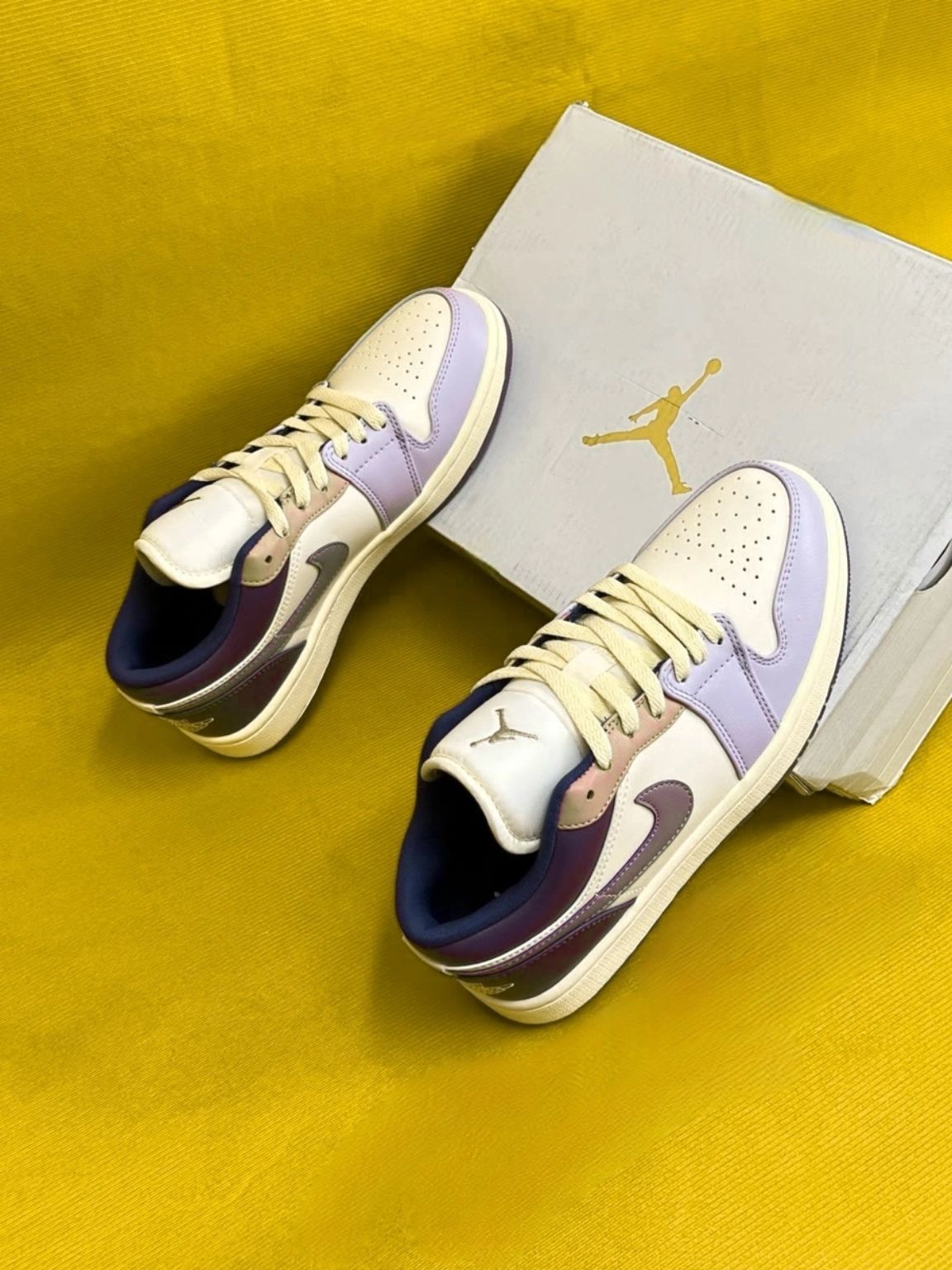 复古鞋子不上脚都看着顺眼🥰 这是一个以主打紫色调的低帮AJ1女鞋 深浅不一的紫色和白色皮革拼色 紫色果冻鞋底也有些不同的美感 很适合秋季的穿搭风格 搭配牛仔裤、卫裤、休闲裤、短裤都蛮好看的 作为日常穿搭完全够用 #当我买了新鞋 #送这双TA会喜欢吗 #实穿女鞋怎么选 #三位数好鞋推荐 #求帮我选鞋