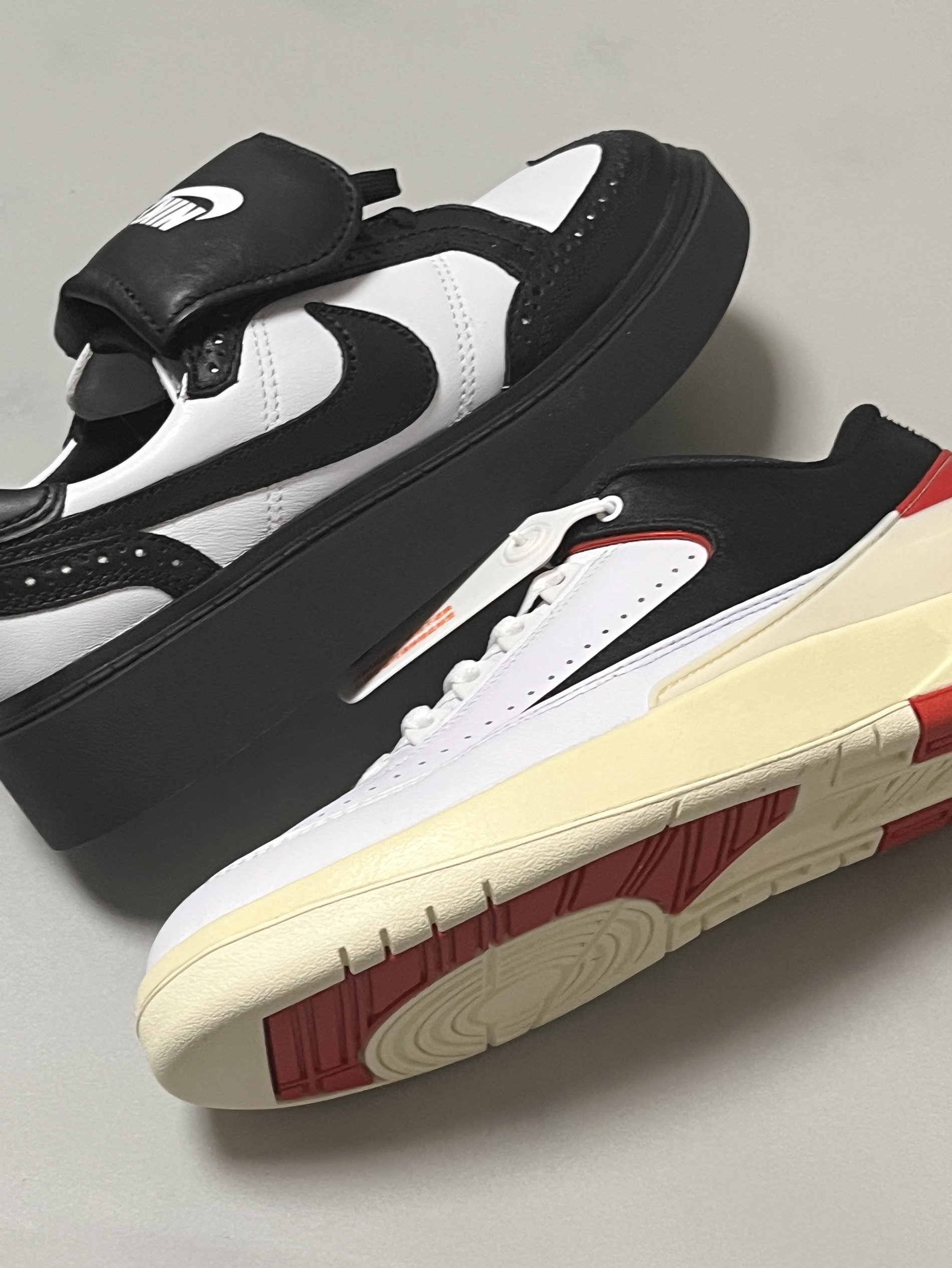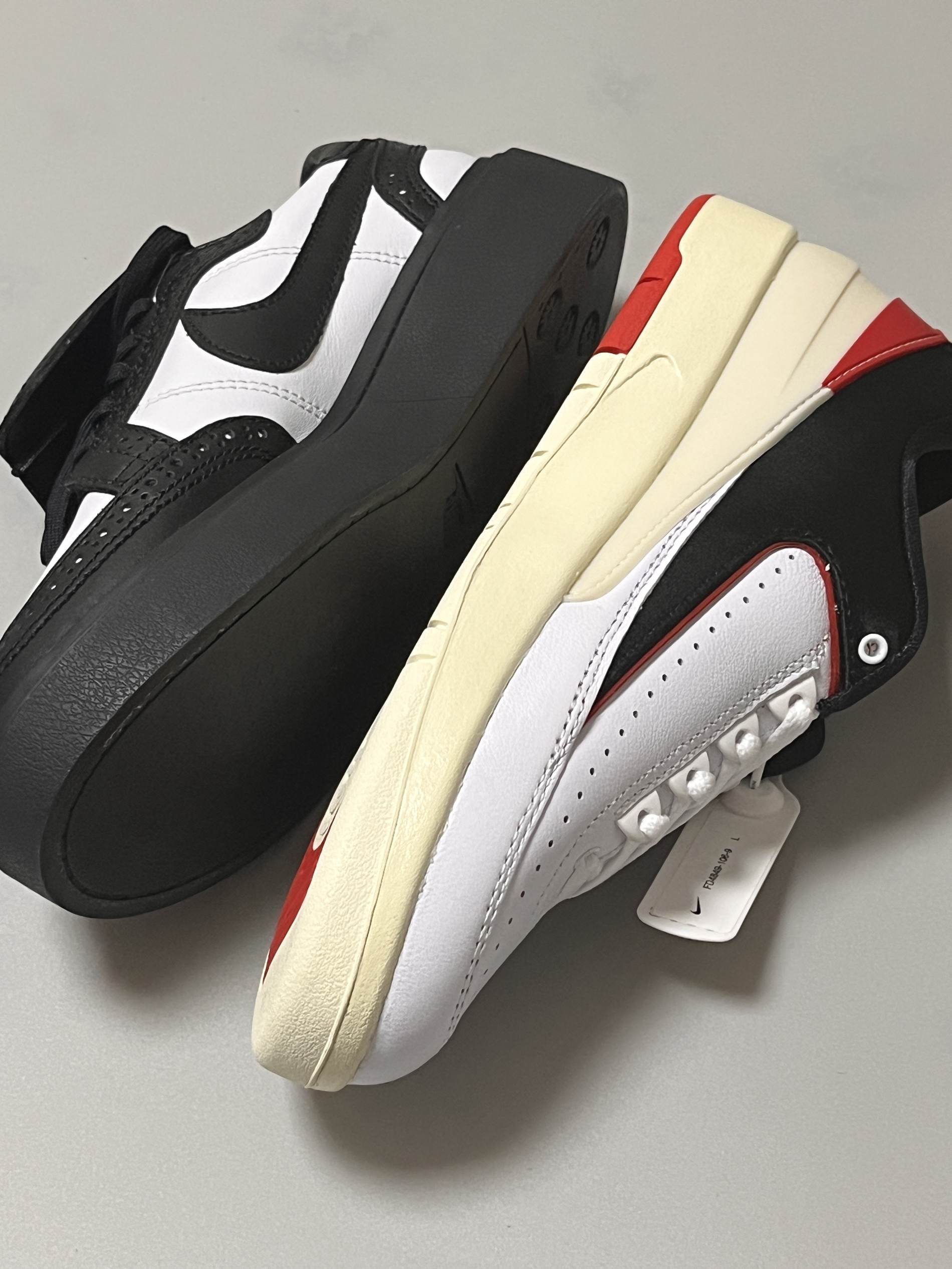 halo 阿迪来了,本期带来两双最近发售的潮流出街鞋!分别是这双jordan 的aj2和这双权志龙的小雏菊联名! 首先,我们先来看看这双aj2,整双👟采用白色为主调打造,辅以红色细节,营造出的芝加哥配色的视觉效果。 鞋身材质选择了荔枝纹和光滑皮革面料拼接制成,简约且高级。外观与之前发售的ow aj2联名相似! 鞋舌经典红色飞翼 Logo、白色飞翼 Logo吊牌等细节悉数还原。 黑色中底搭配白红外底...