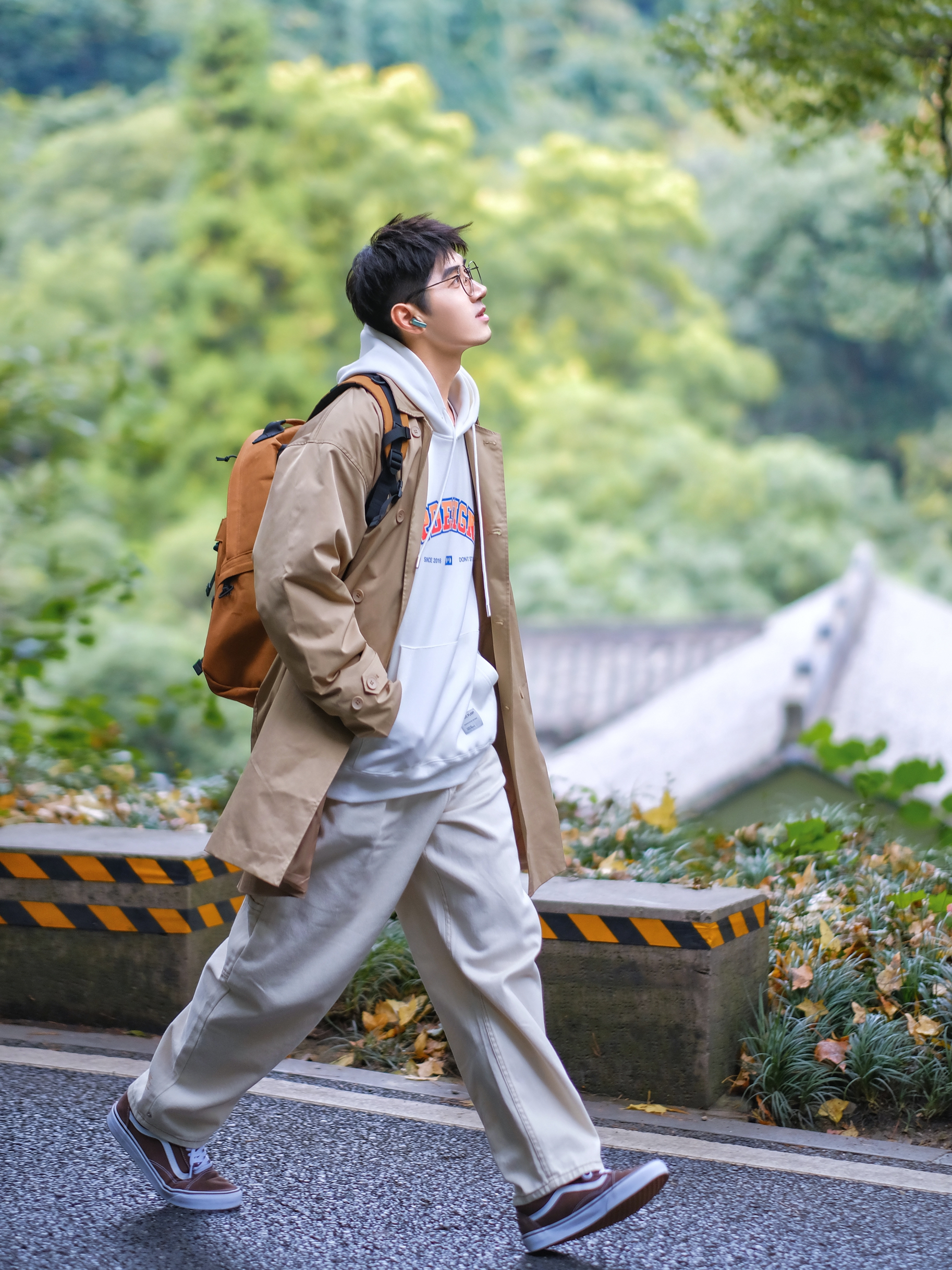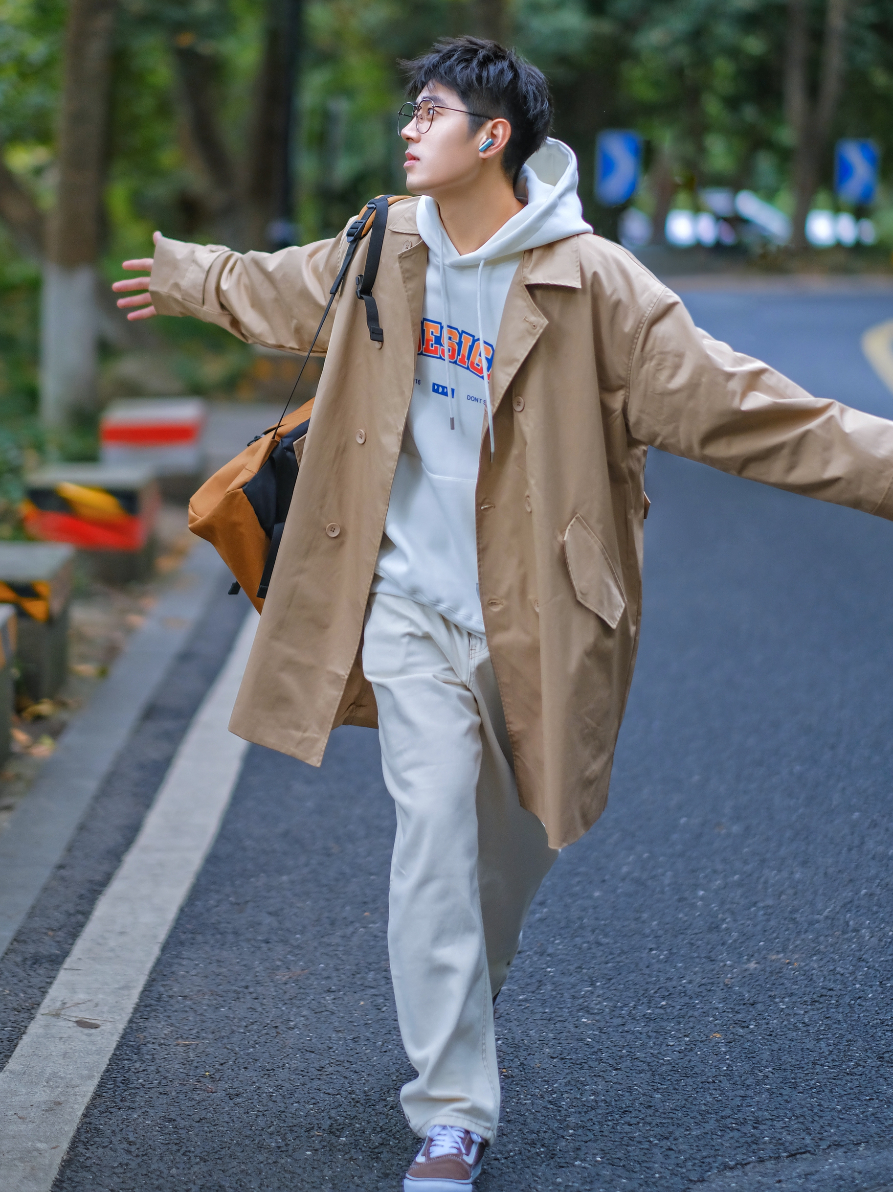 🔹又到了“风衣穿搭”的季节喽!🧥✨…… — 🔹今天分享一套“一学就会”的秋季叠穿—“卡其色风衣”和“白色连帽卫衣”叠穿混搭!一整个就是“校园韩剧”男主上学穿搭!主打的就是“秋日男友”少年感!真的好适合男生秋季穿搭!🍁✨…… — ⚠️本人身高|体重:176CM|61KG(🉑️参考) — 1⃣️、关于“风衣打底”:选择“浅色系”或“同色系”打底,增加整体感,而且视觉【显身高】哦!✨ 2⃣️、关于“细节...