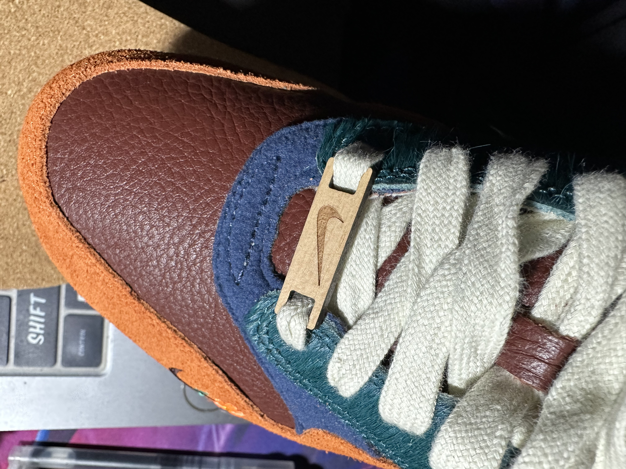 自从这款联名曝光之初,就被复杂的材质用料所吸引,等了将近一年终于从1000左右的价格降到600了,而且是两个配色“鸳”“鸯”同时降。在即将到来的这个冬天必须整起!虽然内衬的皮质是人造革,但我已经很久没有在air max身上见到皮质内衬了,就连鞋垫也是软木塞材质,而且是三层,上一双这么有购买欲望的90的培根配色。
