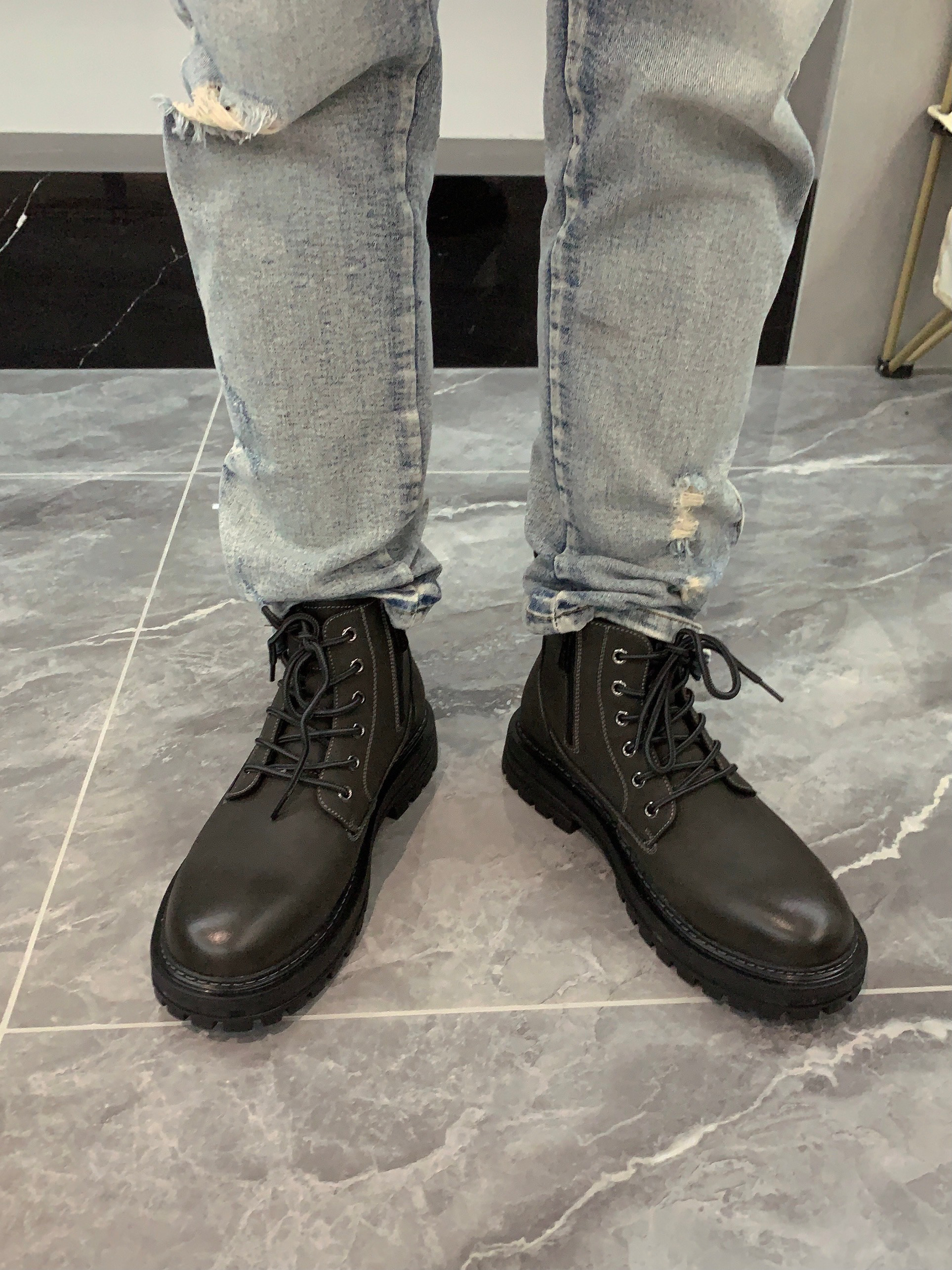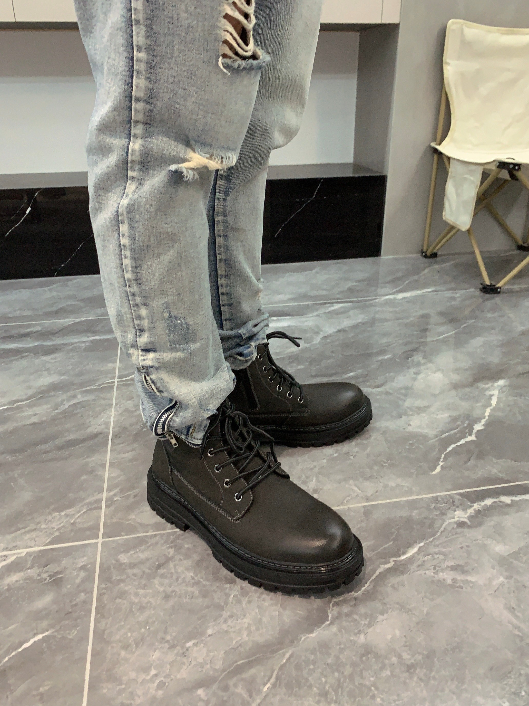 加绒很厚实,冬天稳稳过冬。 高级黑灰配色,没有男生不喜欢。 后跟高4cm,还要拉链设计。设计师懂男人!!