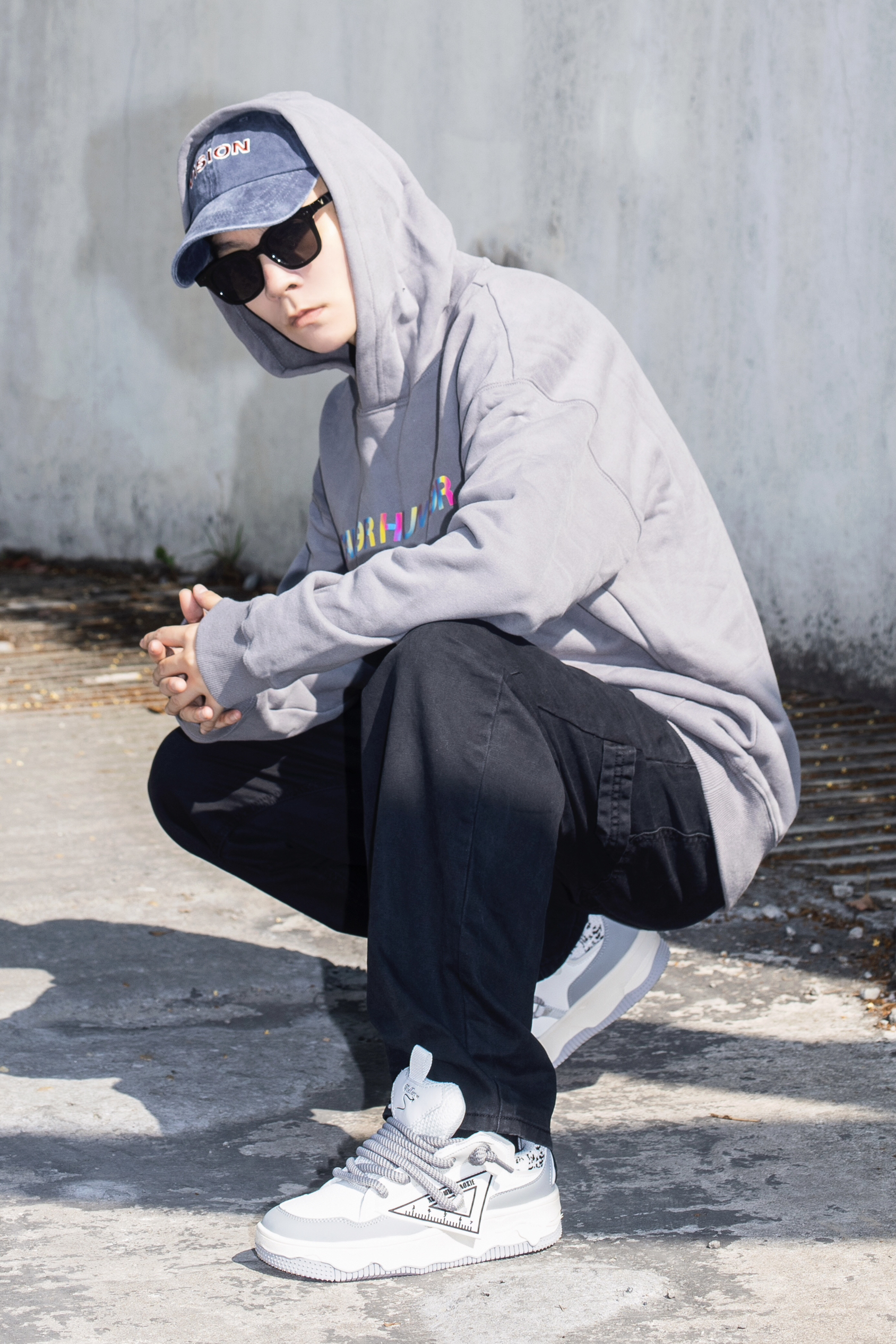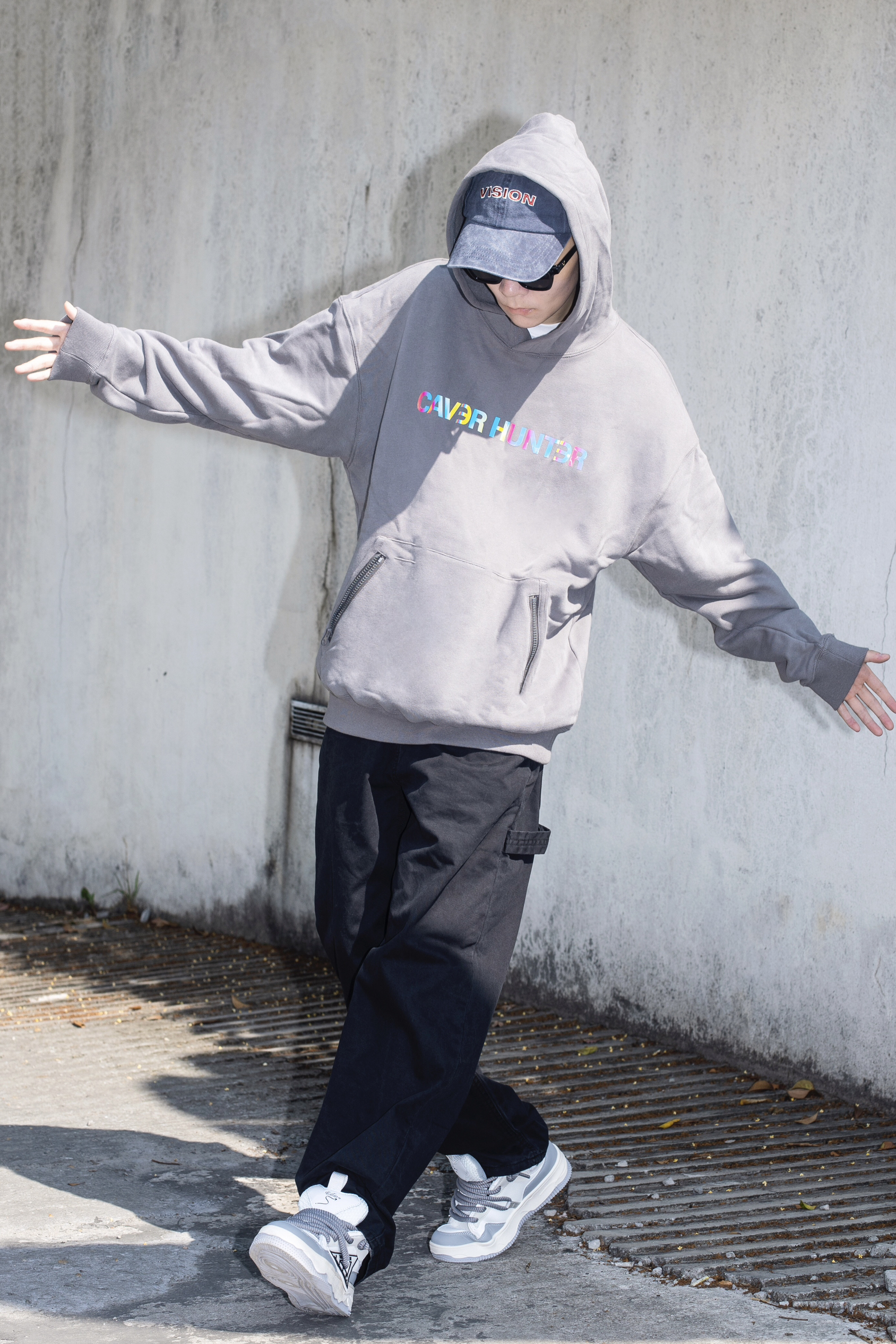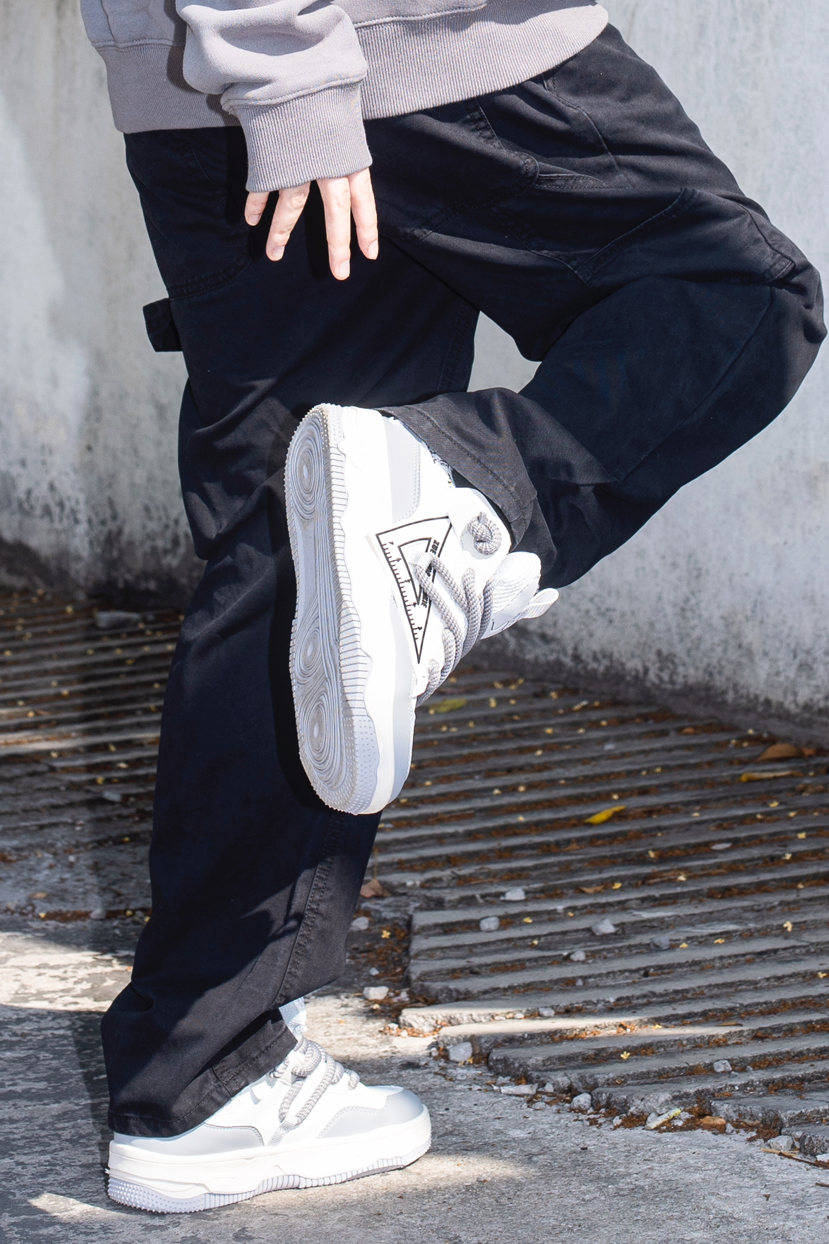 卫衣是我四季都爱的穿搭单品 今天分享一套有点帅过头的卫衣配工装裤 穿搭指南: 上身一件烟灰色连帽卫衣 宽松的版型搭配炫彩字母logo很美式街头 下身一条黑色休闲工装裤 很经典的工装搭配方式 上脚一双Tcellars新款板鞋 灰白拼接的配色和上衣来个小呼应 大鞋舌的设计 把裤腿放在鞋舌后很帅 加厚的鞋底 脚感很不错还能增高 廓形的卫衣+工装裤 让你秒变酷男孩