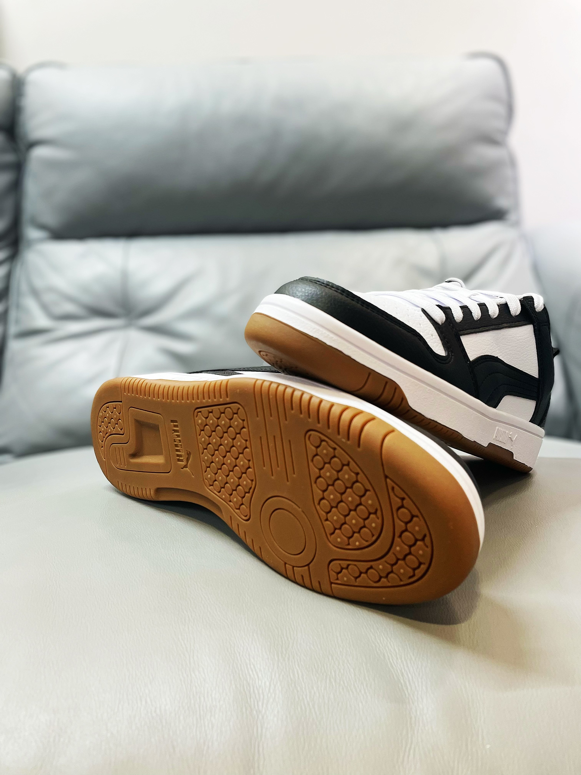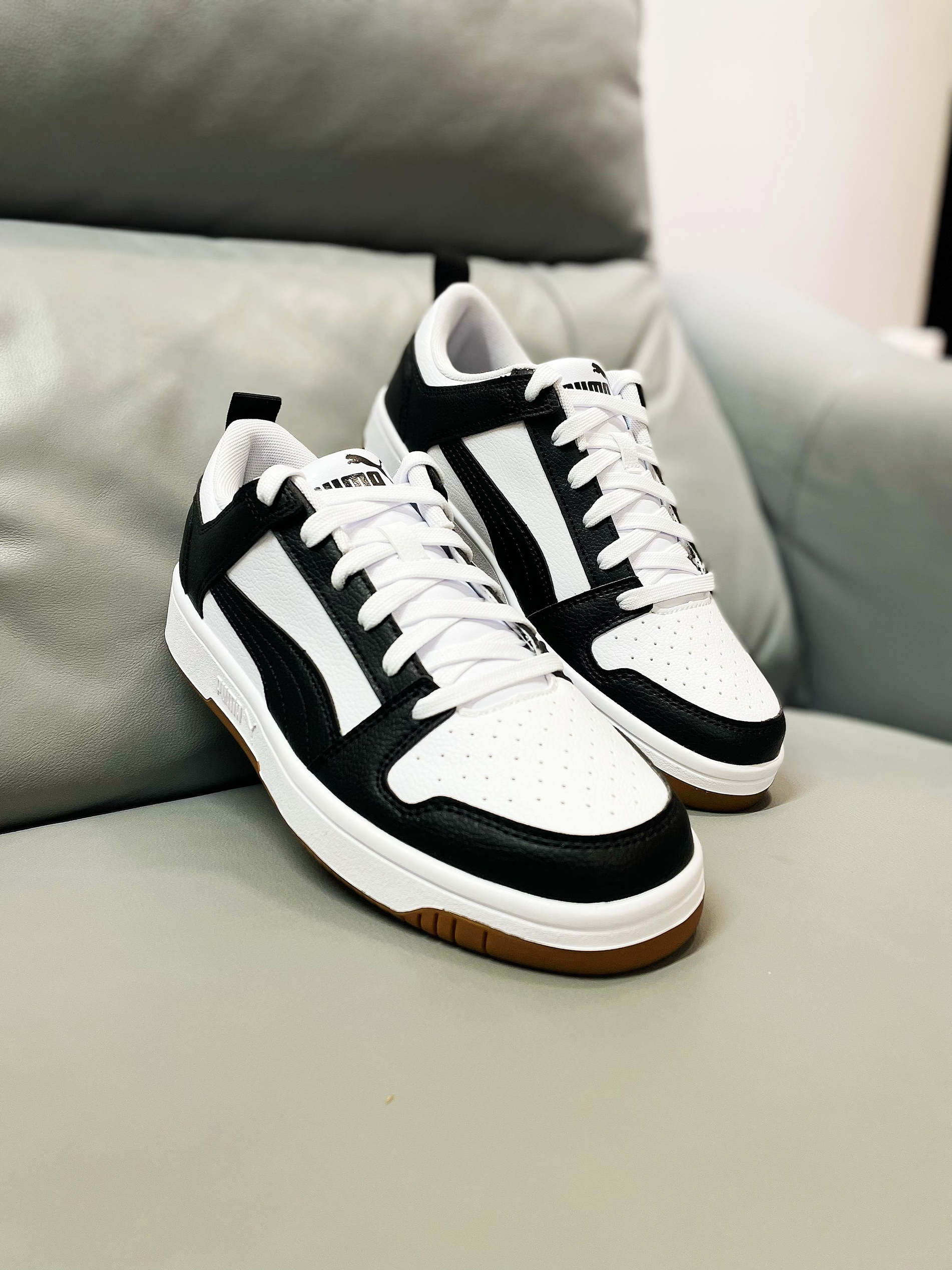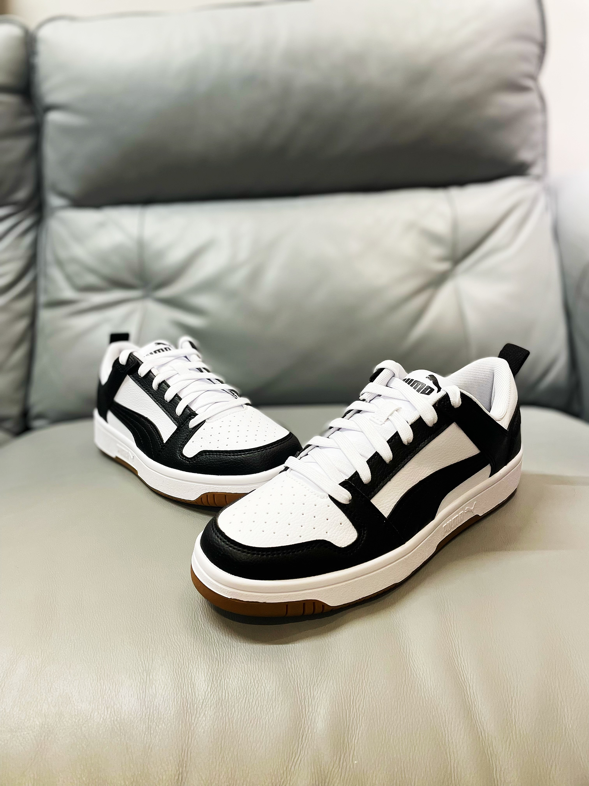 黑白熊猫配色,都是非常不错的,颜值高,上脚好看。这款彪马的也不例外,而且还是很有性价比的产品。 💖鞋面材质选用克合成革材质,橡胶底,多纹路。黑白配色,侧面彪马标识。 💞颜值比较高,性价比也是很高,脚感还算是不错的板鞋。好看百搭,可以说是非常不错的选择。