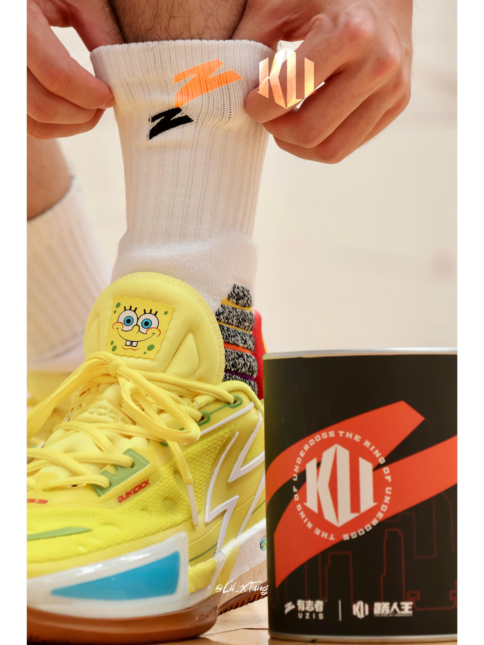 🧦:UZIS x 路人王联名 城市荣光系列 球员版篮球袜! 👟:361° Big3 4.0 QUICK Pro 海绵宝宝 减震防滑耐磨透气 低帮 酸黄暖棕! 无限入手的有志者 UZIS,今天带来一双狠袜,来自路人王赛事联名系列,有志者UZIS成为路人王2023赛季官方指定篮球袜品牌,本次联名产品以路人王打向国际赛事的城市故事为源,汲取“洛杉矶、芝加哥、休斯顿”城市剪影以及城市的标志性建筑配色为色彩...
