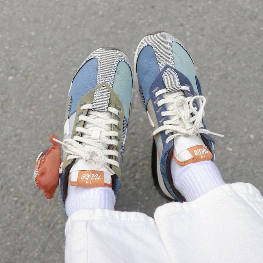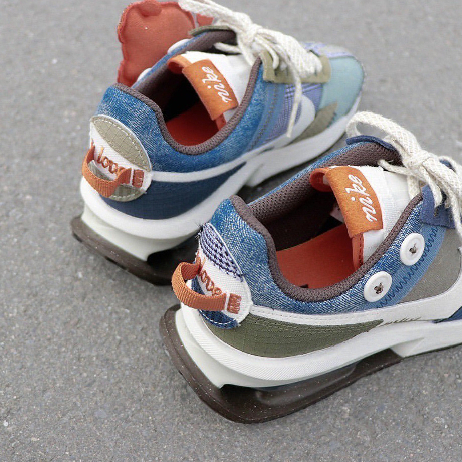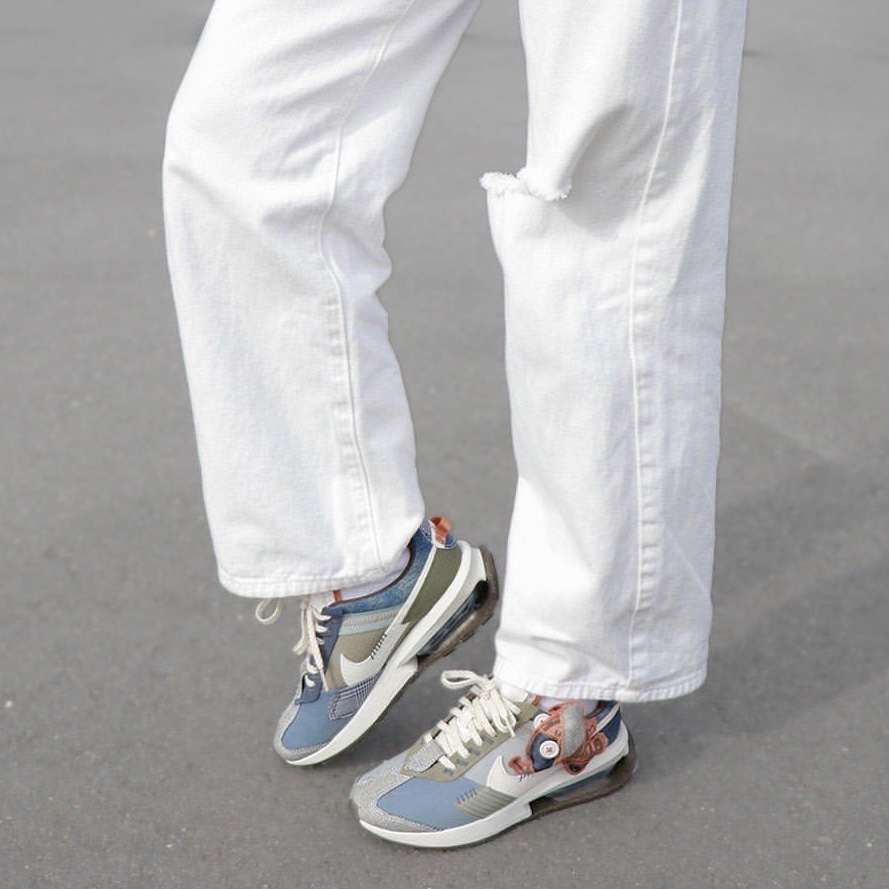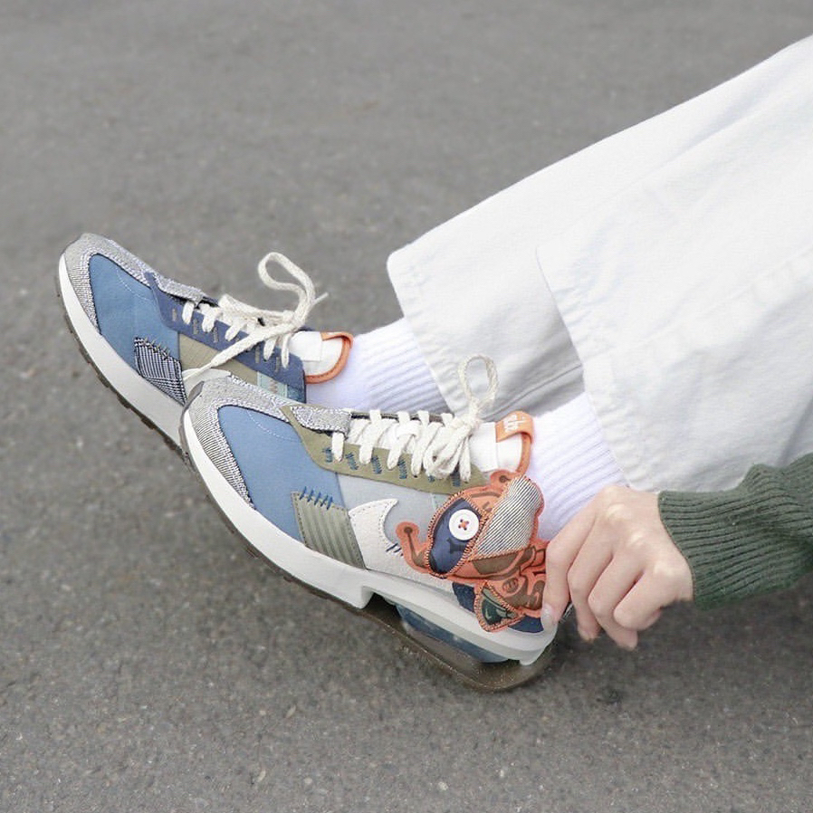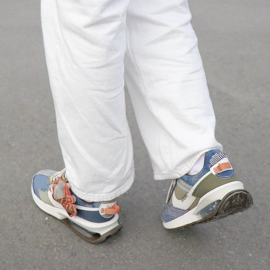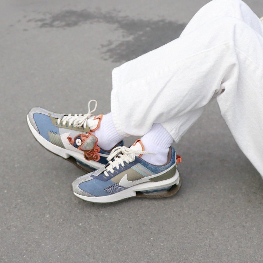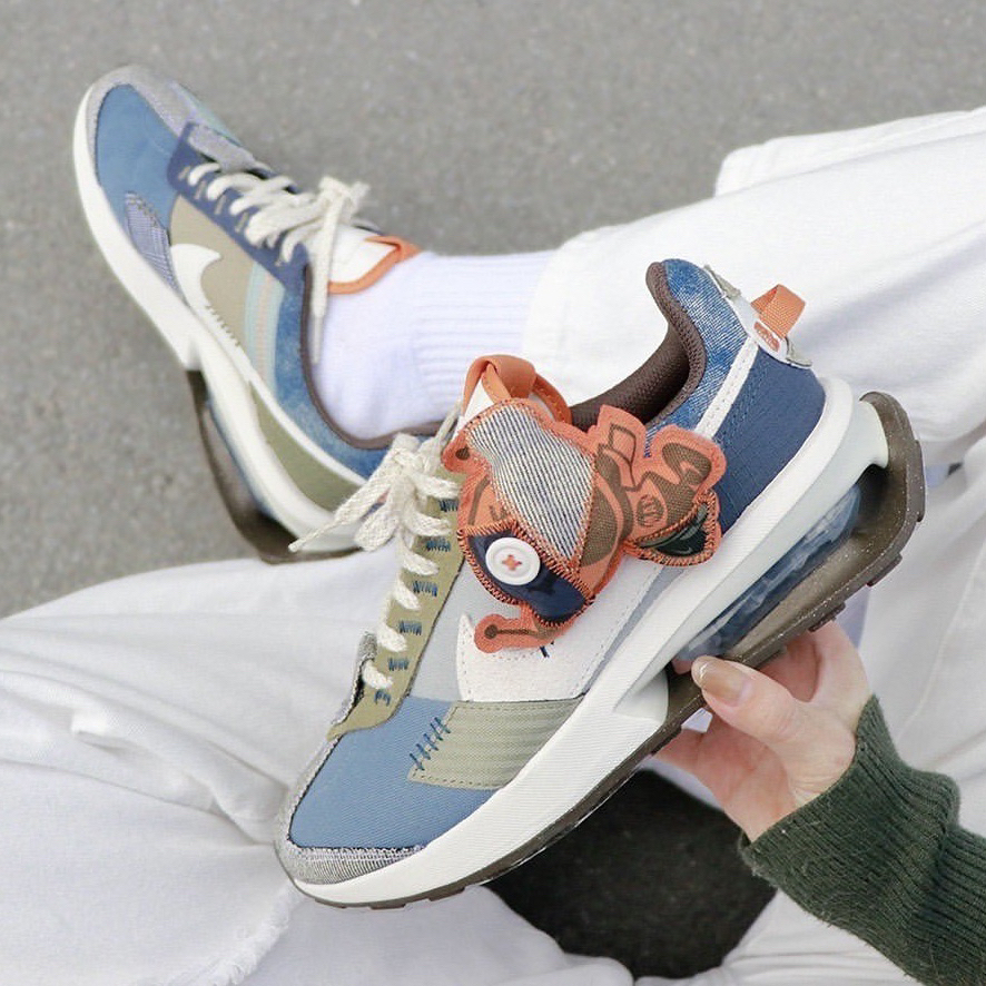 鞋名:Air Max Pre-Day voodoo 蓝绿色 外观及细节: 这是一双以巫毒娃娃作为主题,运用了Air Max系列休闲鞋为鞋型来设计,鞋面是用了不同颜色及不同花纹的帆布来拼接,很有质感,并且还有缝合的线条装饰,比较贴近主题,白色的swoosh logo比较显眼,呼应了鞋舌的白色,中大底的设计依然是采用了该鞋型的经典方案,以缓震泡棉加气垫的组合构成中底,使脚感有所提升。