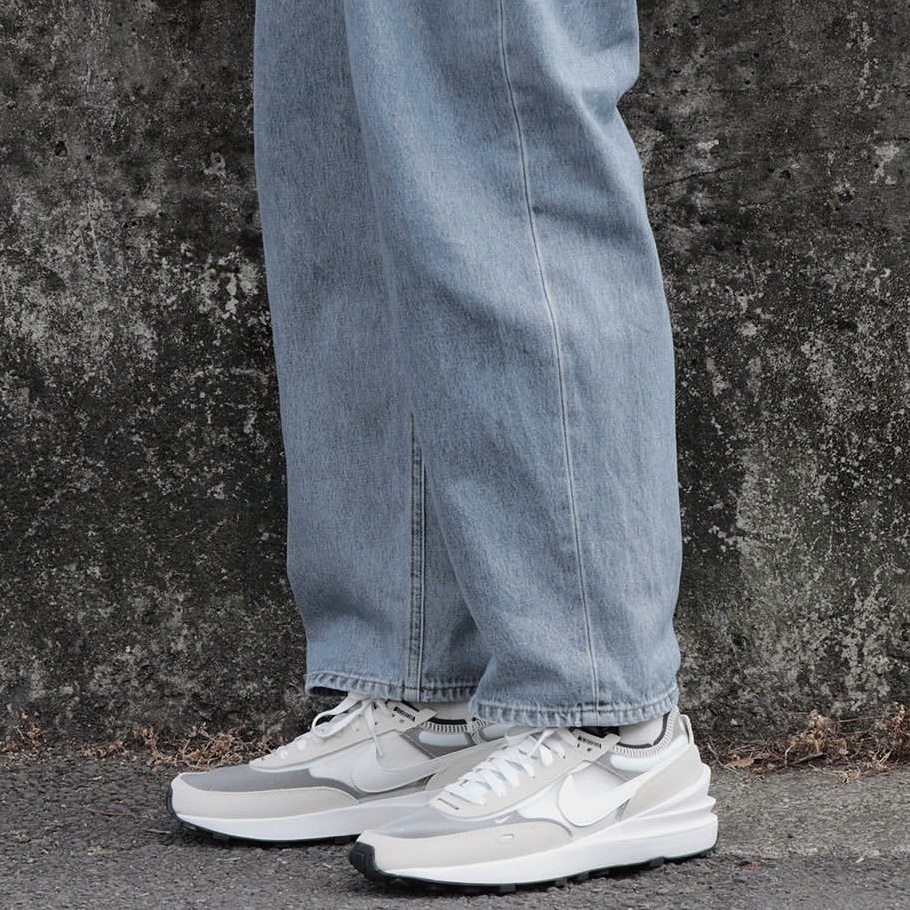 鞋名:Waffle One One灰白色 外观及细节: 这是一双比较基础而且很具有性价比的复古华夫鞋,灰白色的鞋面上加入了半透明的复合材料使鞋子穿起来很像是冠希哥的“死亡之吻”,后跟镶嵌了与Sacai比较类似的多层后跟设计造型的TPU材料,使稳定性提升,柔软的泡棉与黑色华夫格大底搭配,使鞋子不失复古感,是日常穿搭中的“口粮”鞋之一🫢