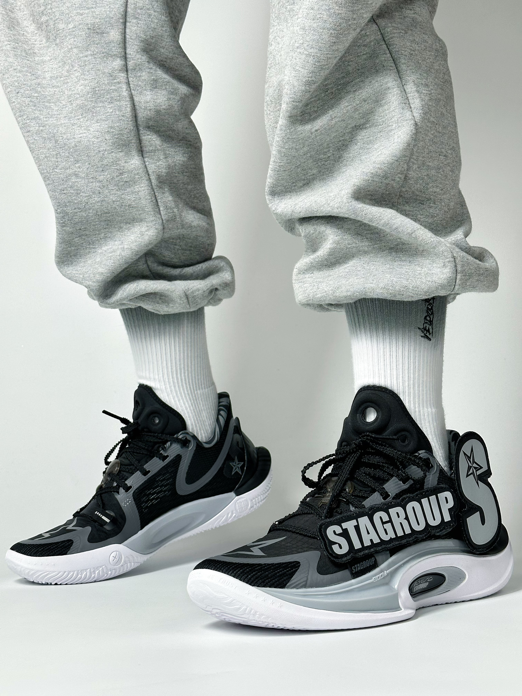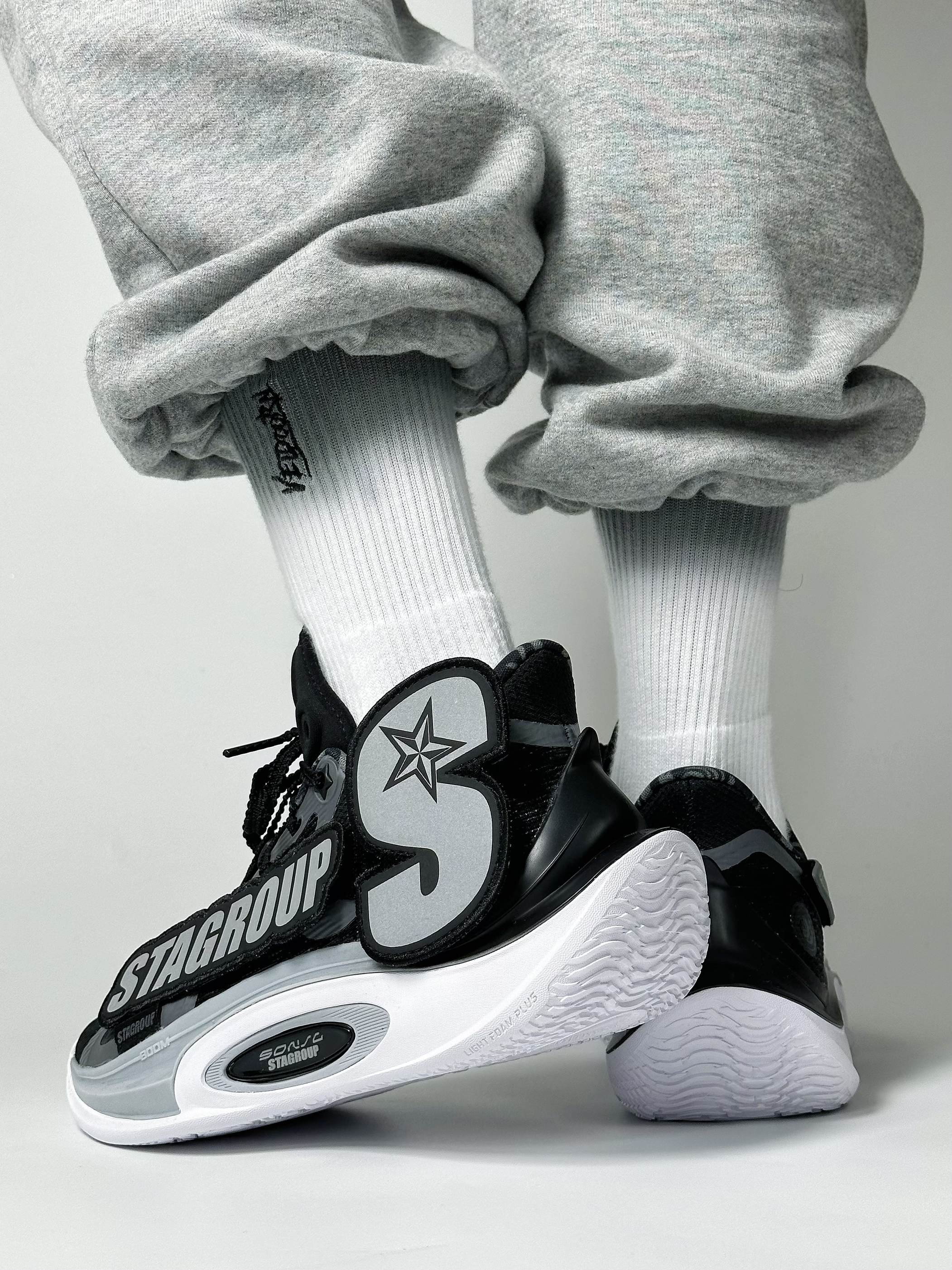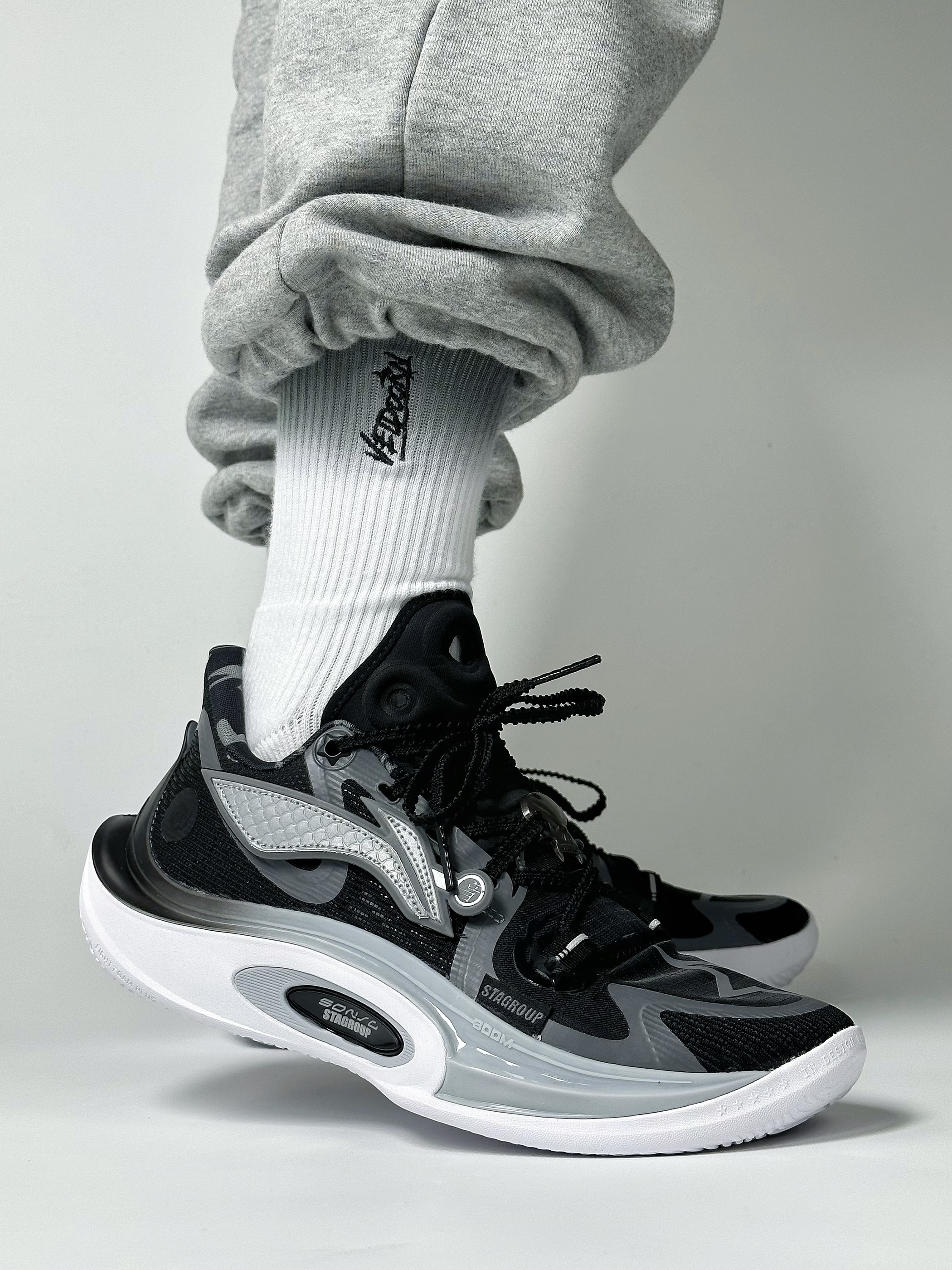 🏀👟:STA x 李宁 音速十一 地球日 音速十这款联名配色最主要的设计特点就是把外侧固定logo设计成可拆卸的魔术贴logo,最重要的是联名的logo真的很帅,配色主题也是以黑灰色为主,个人比较喜欢的配色,颜值也很高。 球鞋配置 网纱鞋面➕全掌Light Foam Plus框架搭配前后掌分离式内嵌䨻科技➕足弓Tpu抗扭片➕耐磨橡胶大底。