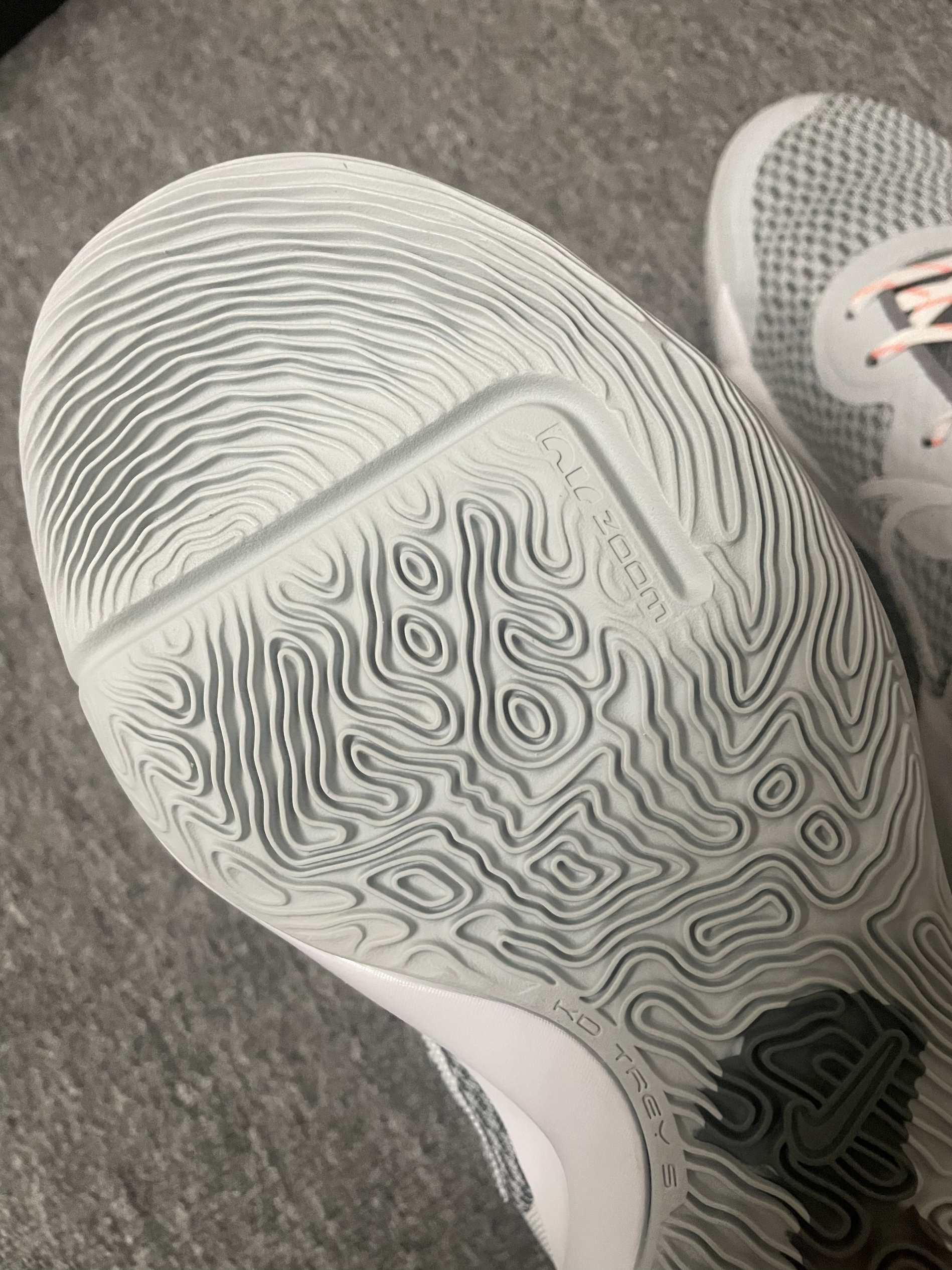 Nike KD Trey 5 Ix EP 白灰 鞋面为网布鞋面结合关键位置热熔胶补强加上后跟的织物材质,看似用料不错,但包裹和支撑表现一般,强度有点不大太够,加上前掌中心略高,当你做侧向移动时有点兜不住脚。也存在崴脚的风险,脚踝力量好的选手会好一些。 中底方面前掌Zoom Air 气垫➕后掌renew 泡棉,前掌有一些场地感,但脚感不算特别出色。后掌这个泡棉缓震就比较一般了,属于比较韧的感觉,...