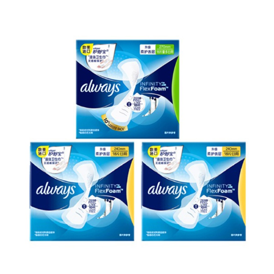 本篇笔记关联了whisper/护舒宝 always未来感日用夜用无感卫生巾组合装 新液体超薄量多 【52片】270mm16片+240mm18片*2等商品,为用户提供真实的使用体验和购买参考。