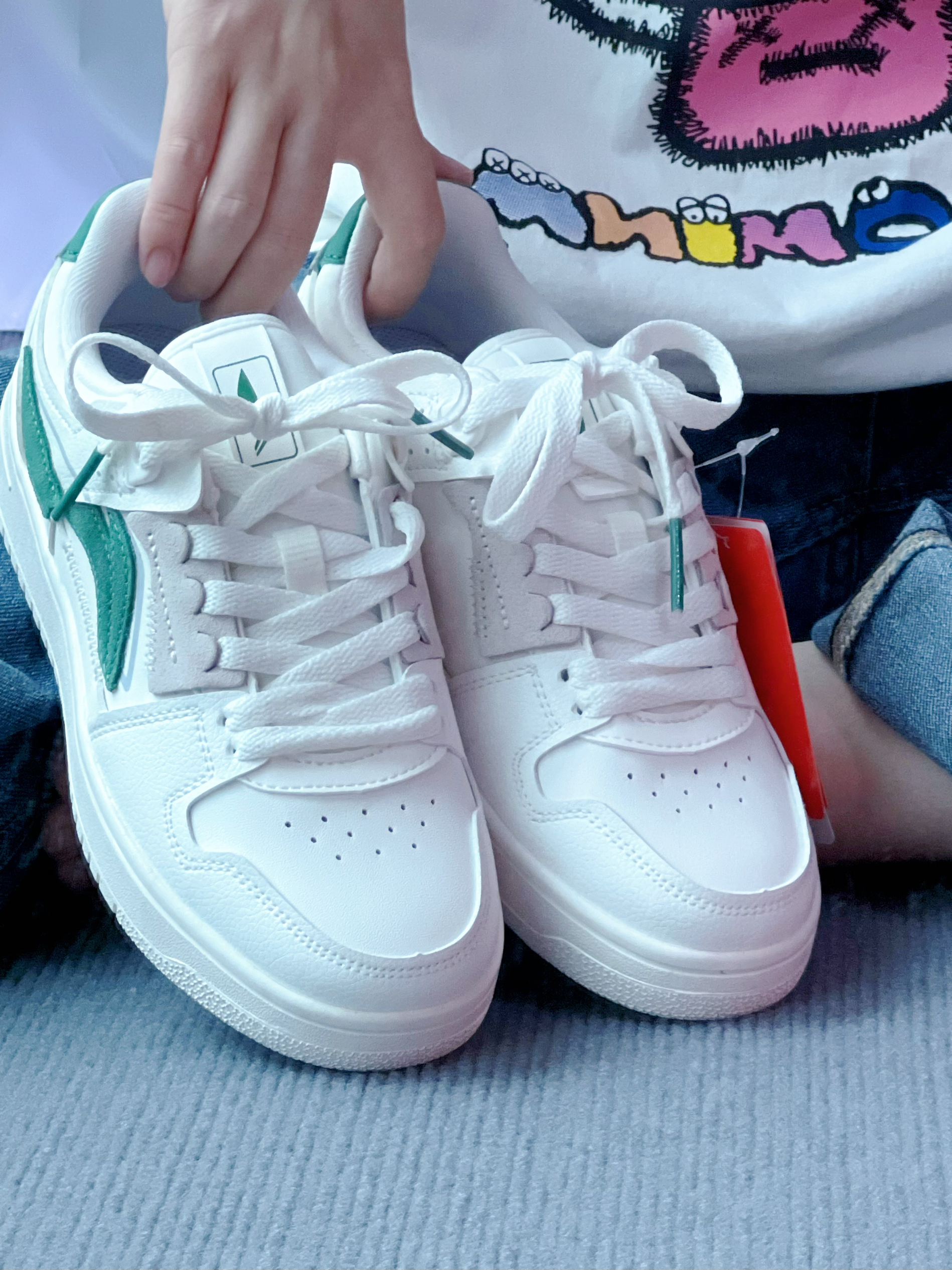 👀李宁 天迹 减震回弹 运动鞋👟 女款👉 李宁这双运动鞋,款式比较百搭✅ 大面积的白色加一点绿色灰色撞色搭配 给鞋子增添了一点活力💖 鞋子上脚很舒服,比较透气 不分季节,都可以穿 个人觉得鞋码有点偏小❕