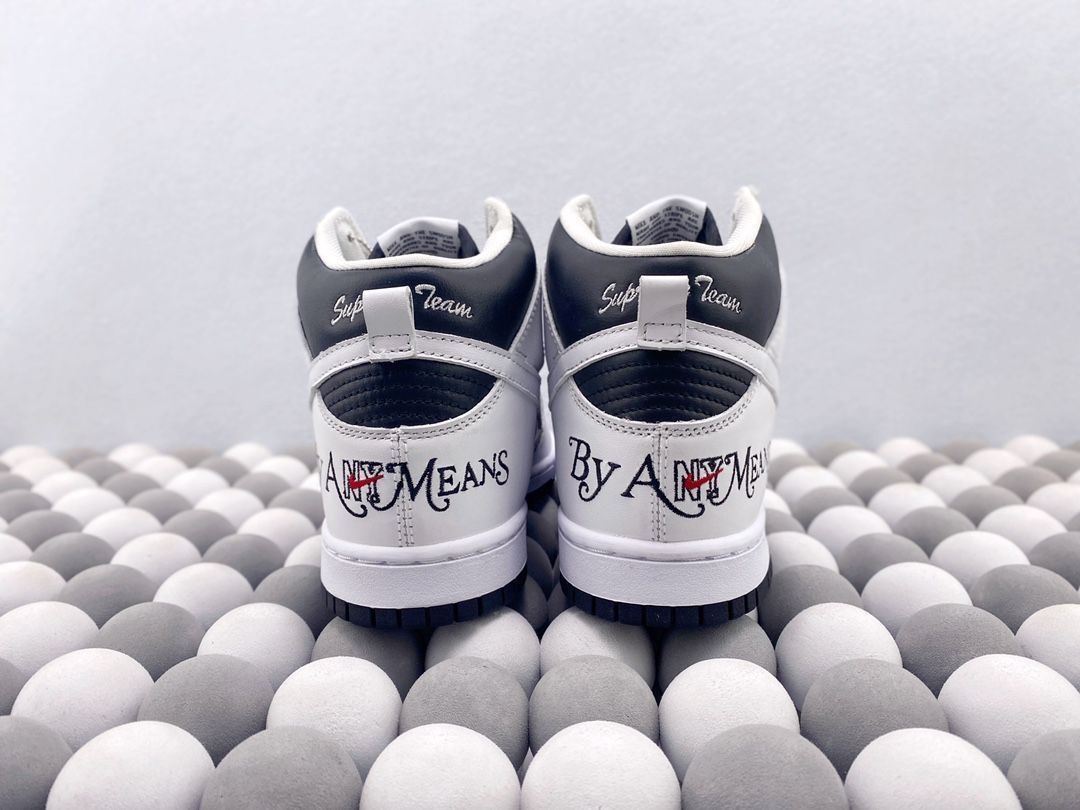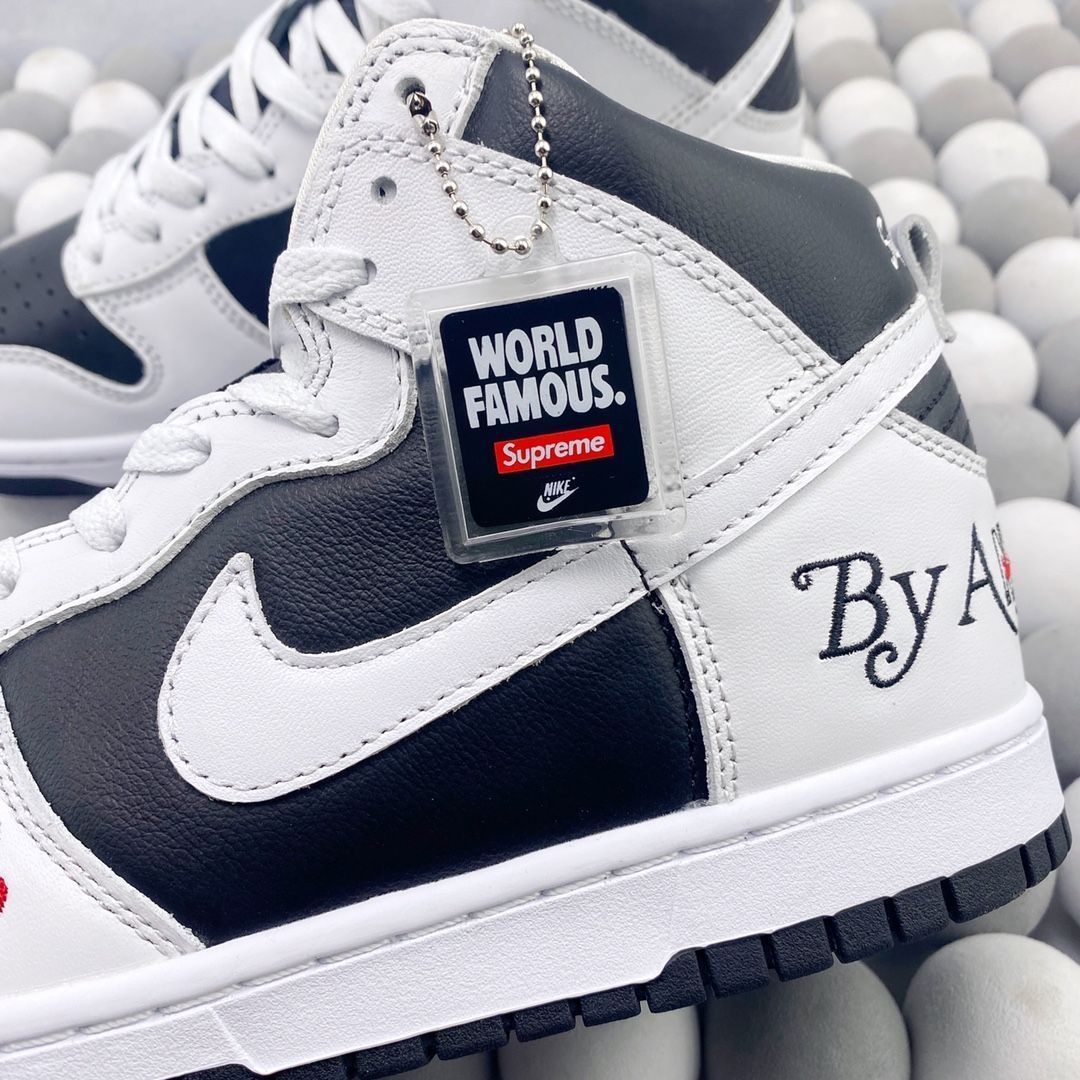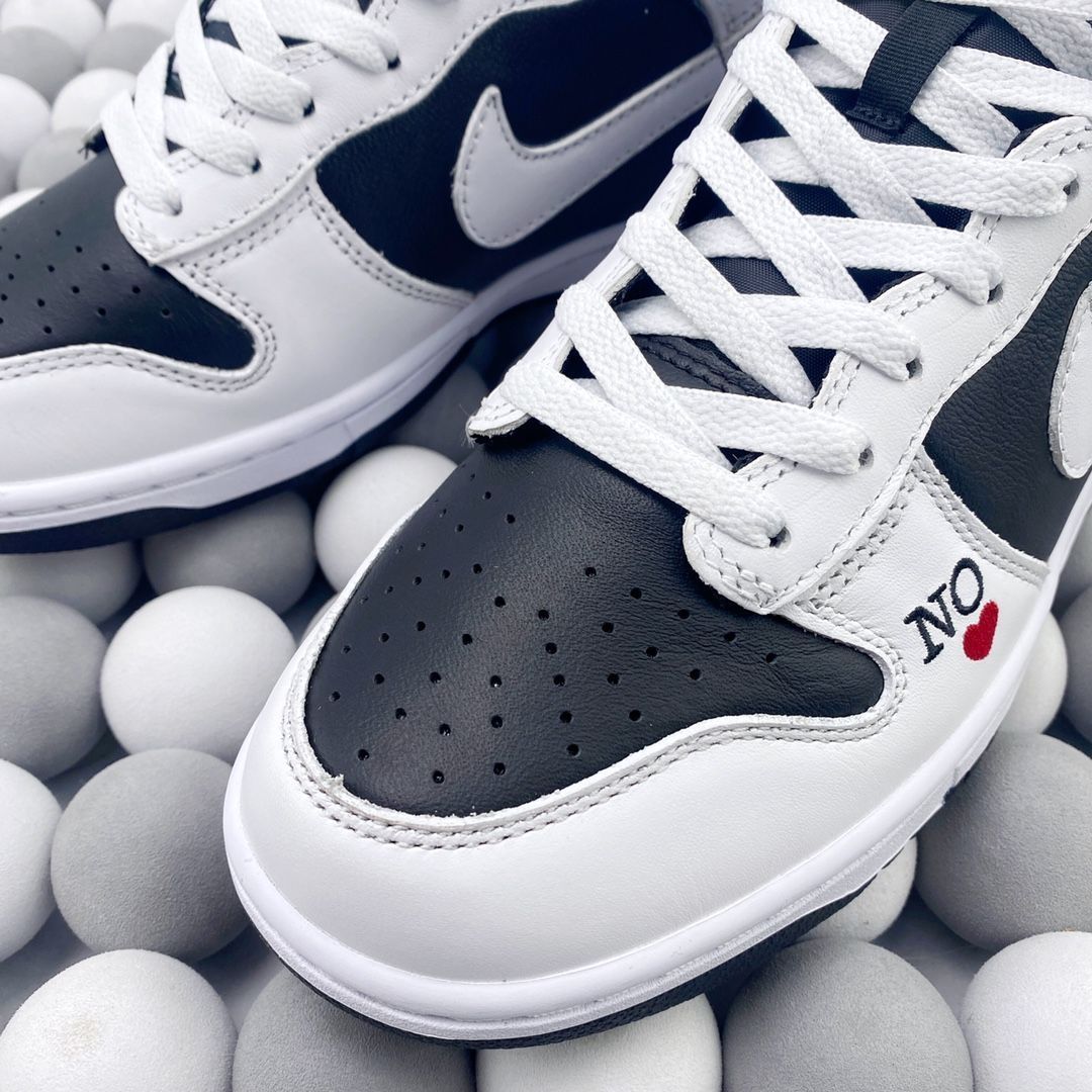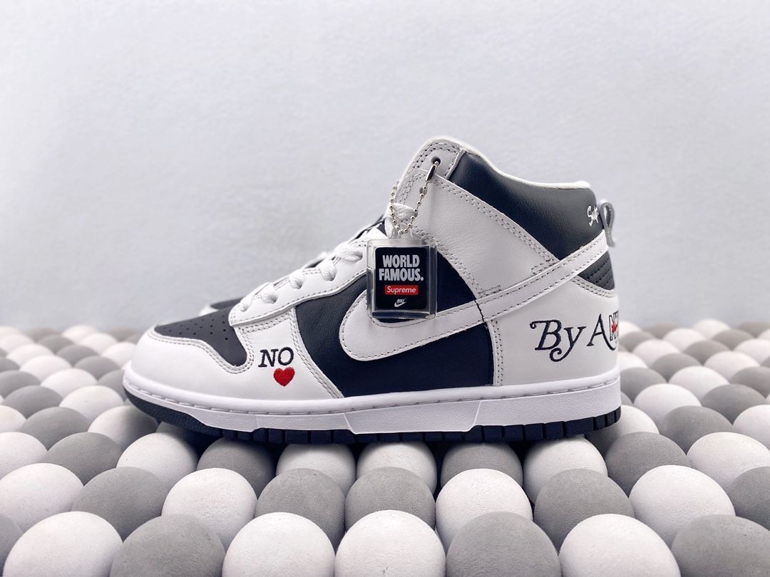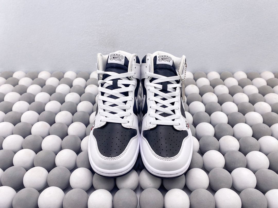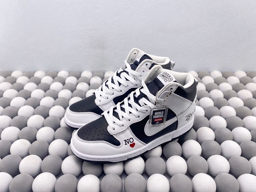 黑白的配色非常经典,无论是搭配休闲服装还是正式装扮,它都能轻松驾驭。鞋身上的Supreme和NK品牌标志非常引人注目,无疑增添了这双鞋的时尚感。而且,鞋身上的材质选择非常高级,质感非常好,看起来非常耐用。