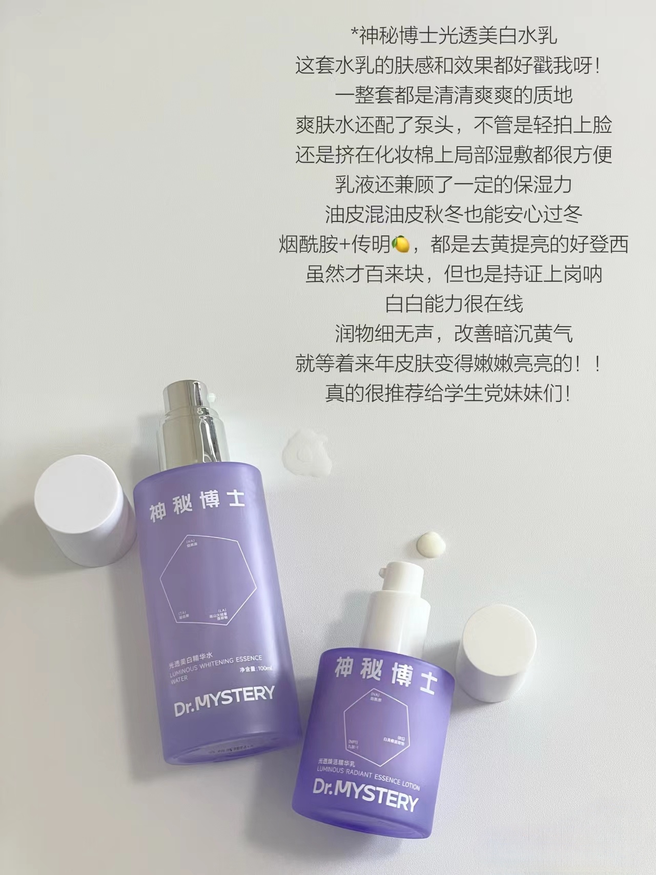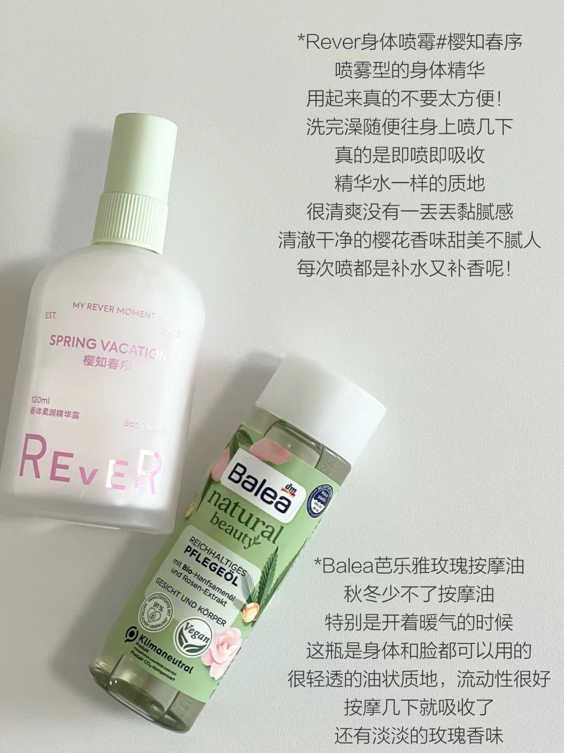 本篇笔记关联了Rever/乐若 滋润保湿纯露身体乳喷雾 柔润非理性角落 樱知春序、L'OREAL/欧莱雅 花萃净透卸妆油 温和清洁舒缓肌肤 深层清洁、MYSTEY DOCTOR/神秘博士 光透美白淡斑补水保湿舒缓敏感护肤套装 提亮肤色 精华水100ml+乳液50g等商品,为用户提供真实的使用体验和购买参考。