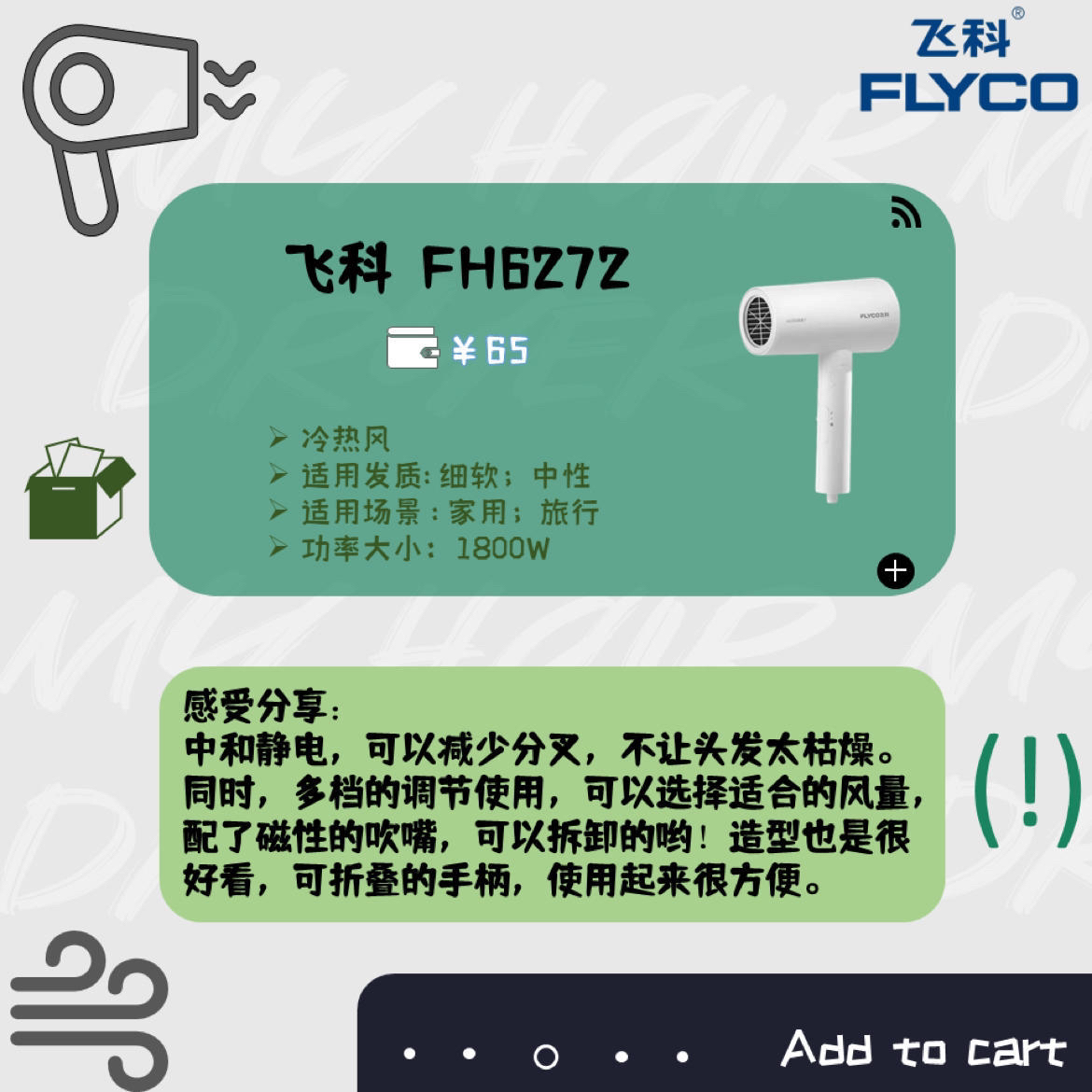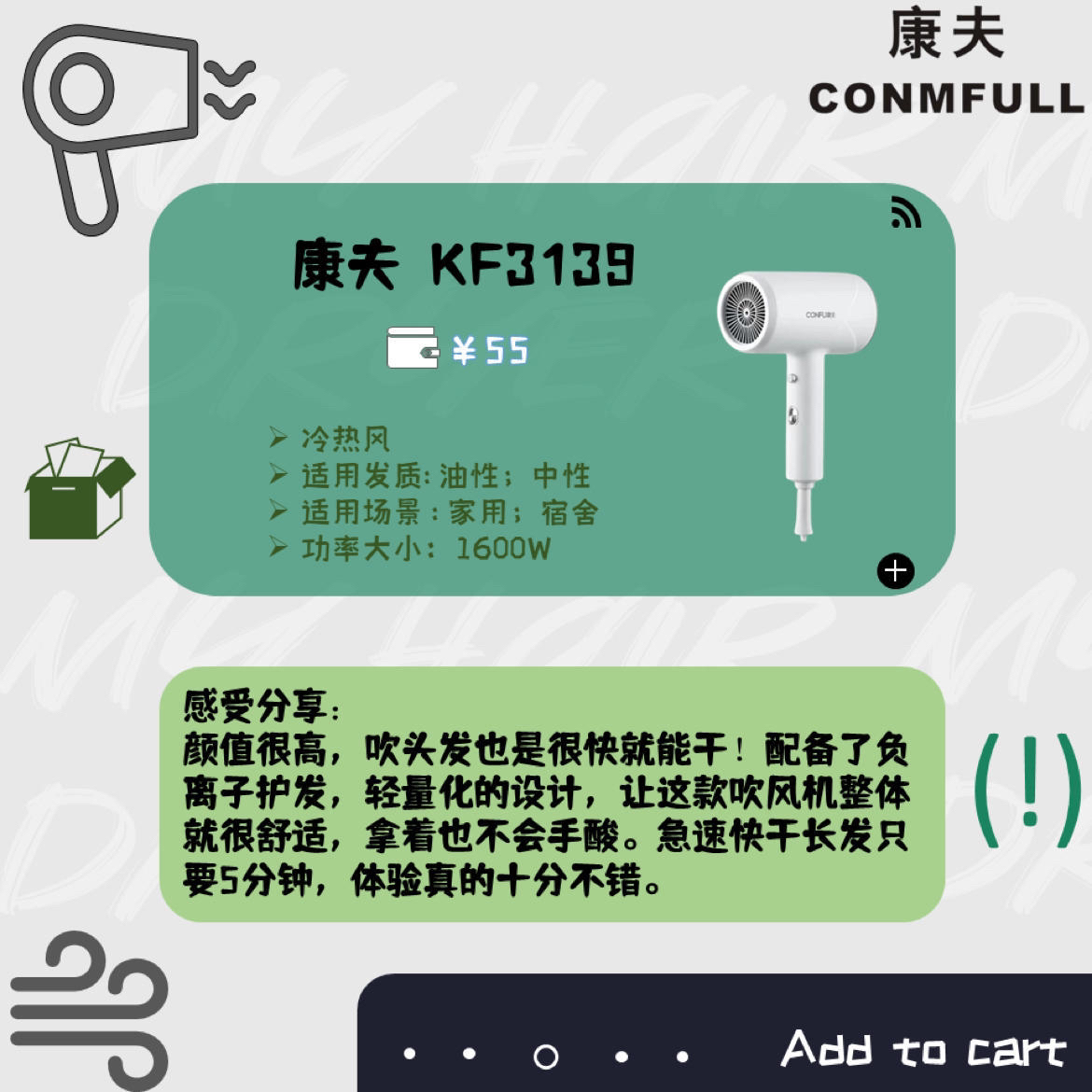 本篇笔记关联了Flyco/飞科 FH6276 电吹风 负离子护发 家用宿舍用 大功率 可折叠 恒温 冷热风 大风力 速干 发廊 不伤发 理发店 白色、CONFU/康夫 KF-3139 电吹风 恒温 宿舍 护发 大功率 速干 发型师 冷热风 蓝光 负离子 发廊 大风力 不伤发 简约白、Flyco/飞科 FH6290 电吹风 柔风 负离子 恒温护发 家用大风量 快速干发 宿舍用 大功率 冷热风 发廊 不伤发 理发店 不可折叠 静音 白色+集风嘴等商品,为用户提供真实的使用体验和购买参考。