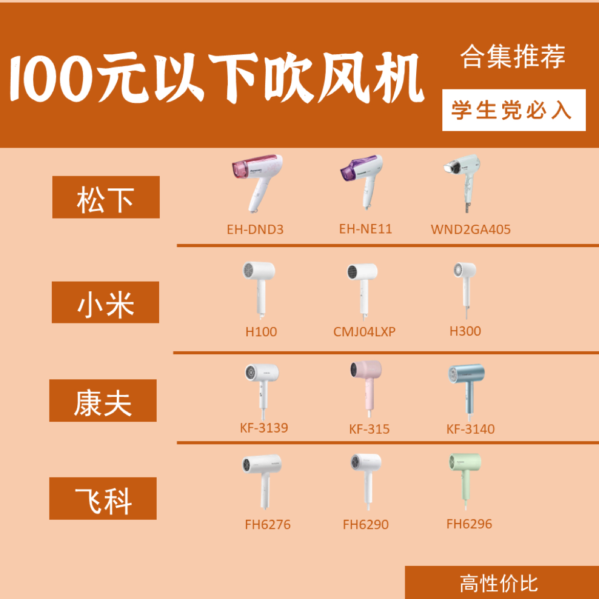 好用不贵的吹风机是学生生活的必备品之一,如何选择一款价格不贵功能又好的吹风机是不容易的,🤔🤔小编今天为大家整理了几款,供大家选择。👏 🌼美的 MB-AJ0604 小小的一个吹风机,功率不算大,但是风很温柔,可以满足基本的需求。有四个档,负离子可以进行护发,简单的外观,整体很简约,但是颜值很高,小巧方便携带,学生党必入! 🌼集致 VF1 这款吹风机颜值在线,功能也很强,双通道的负离子,更好地护发,...