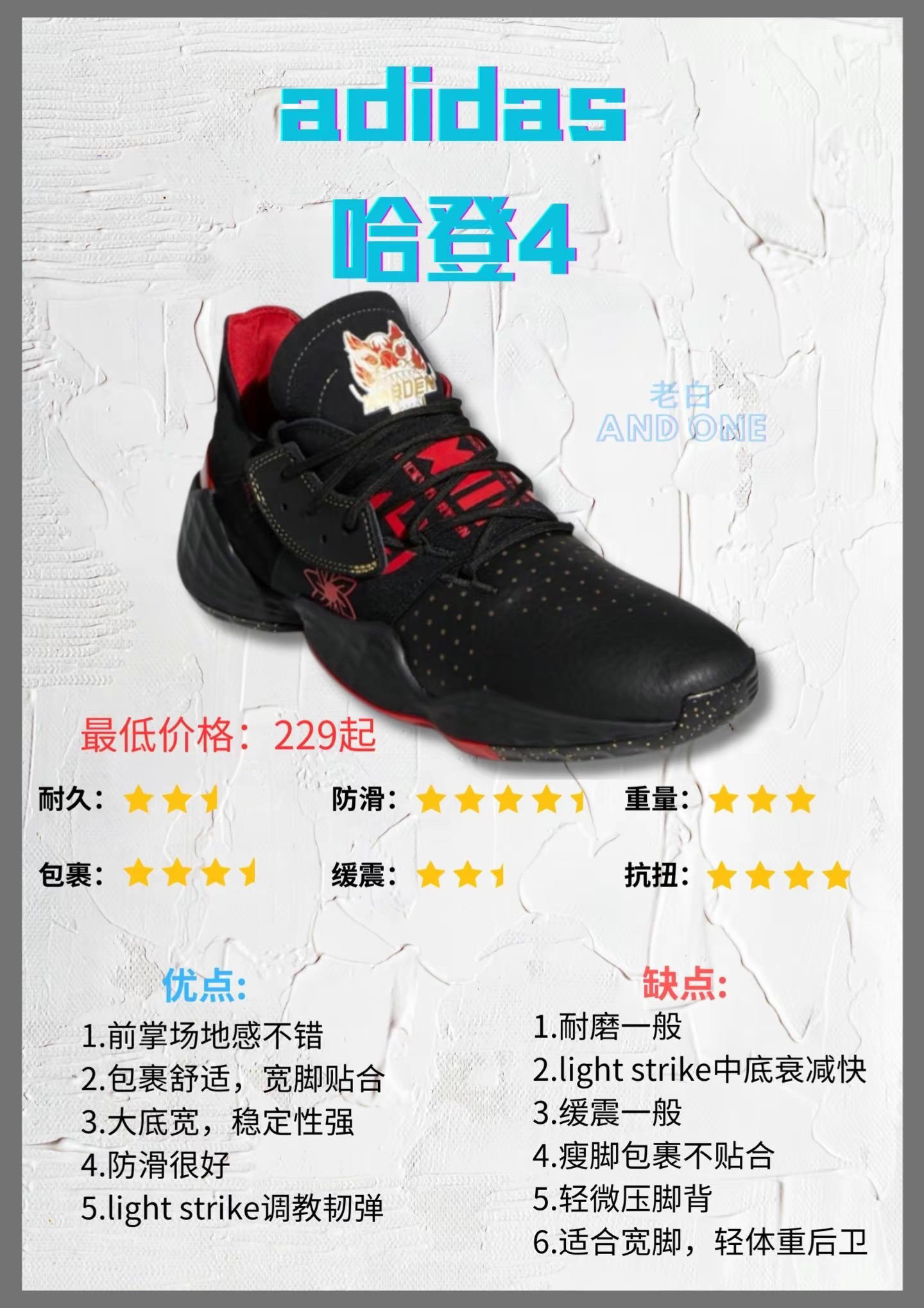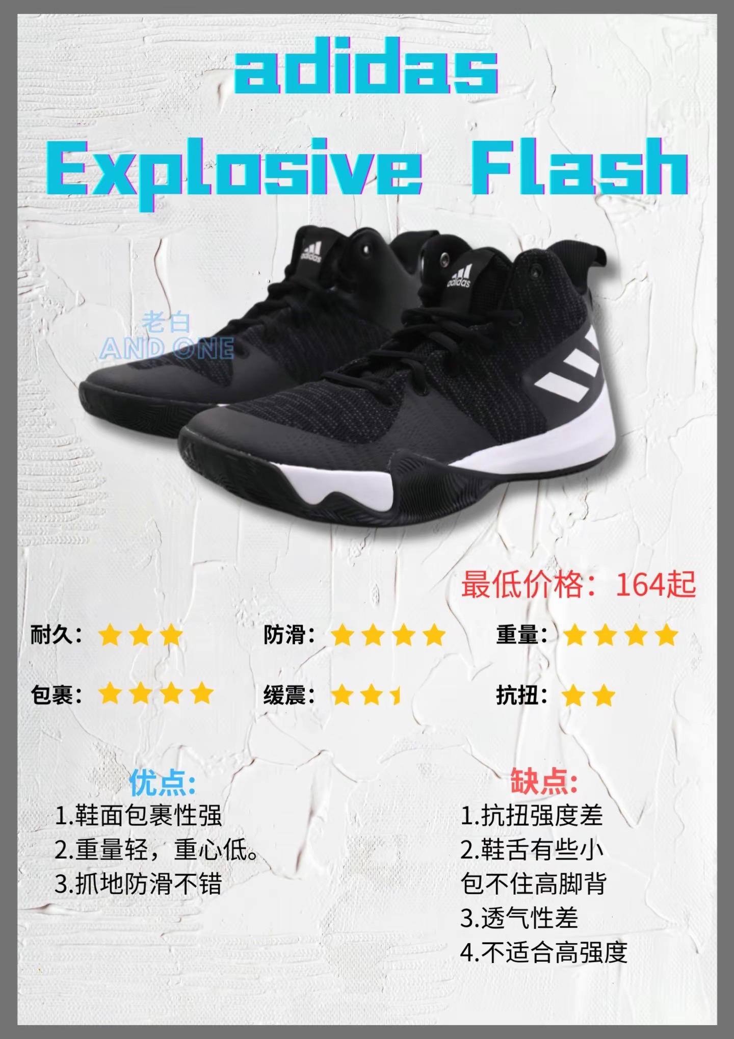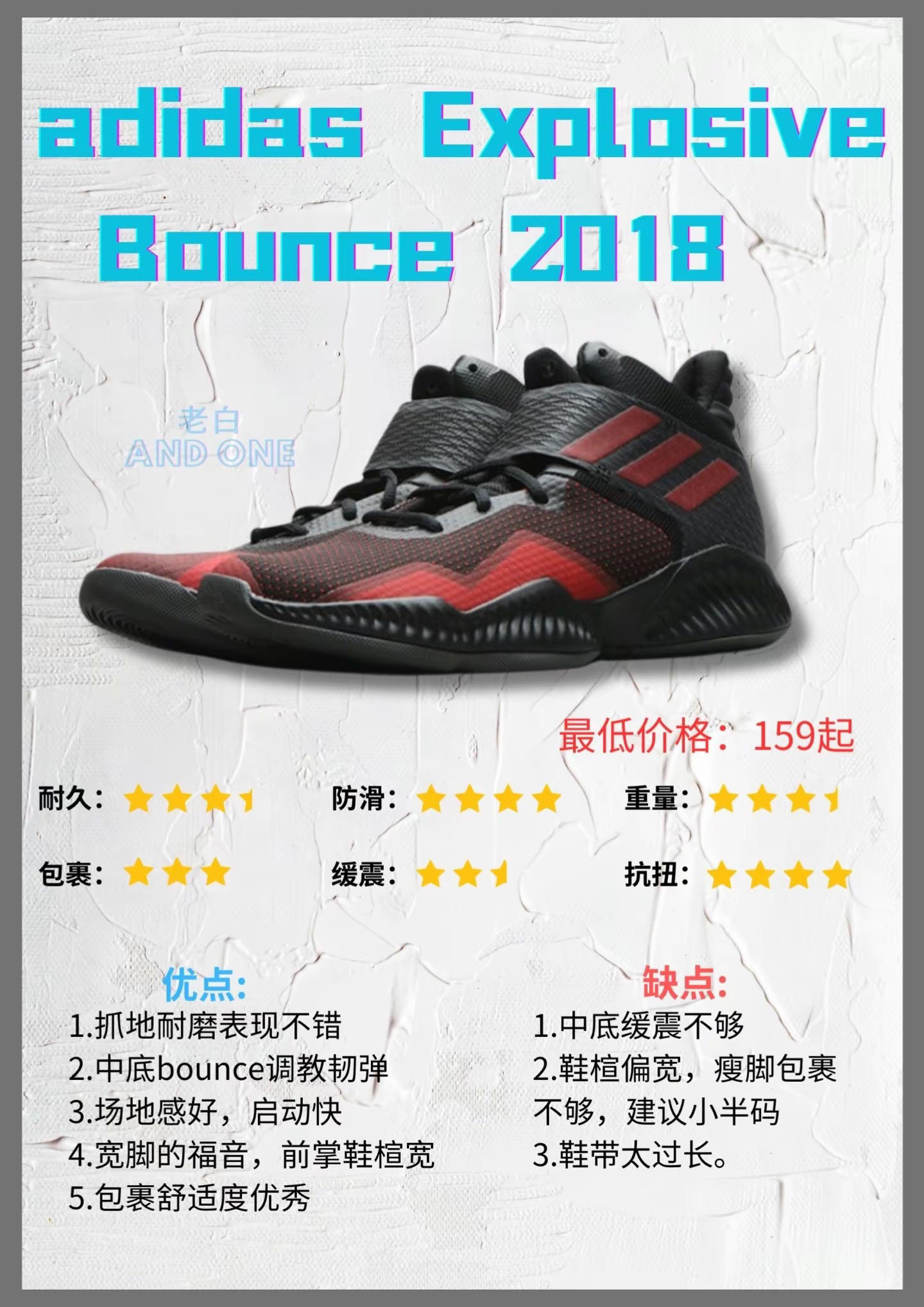 本篇笔记关联了adidas Agent Gil Restomod 阿里纳斯 实战复古 防滑 舒适百搭 休闲潮流 减震 耐磨 包裹性 支撑 低帮 篮球鞋 黑白泼墨、adidas Explosive Flash 复古透气 实战缓震 篮球鞋 黑蓝、adidas Explosive Bounce 2018 团队款 防滑透气 实战缓震 耐磨 篮球鞋 黑红等商品,为用户提供真实的使用体验和购买参考。