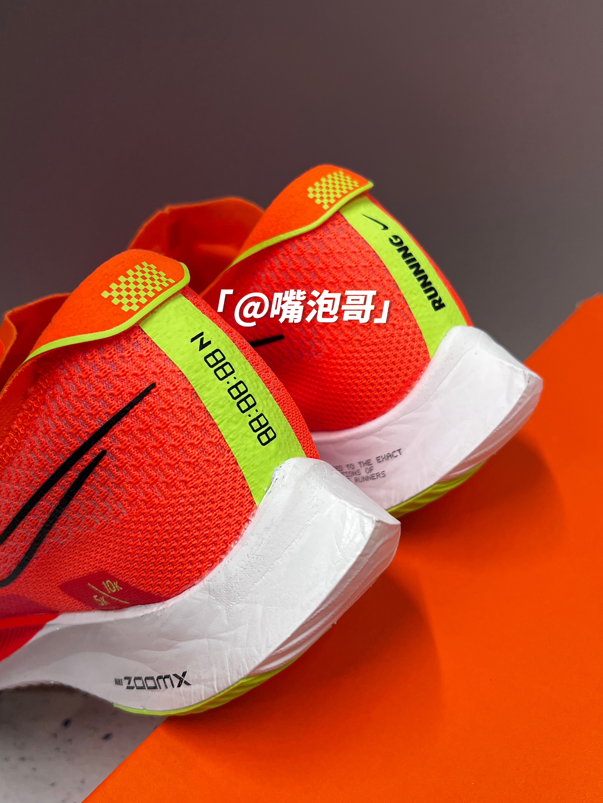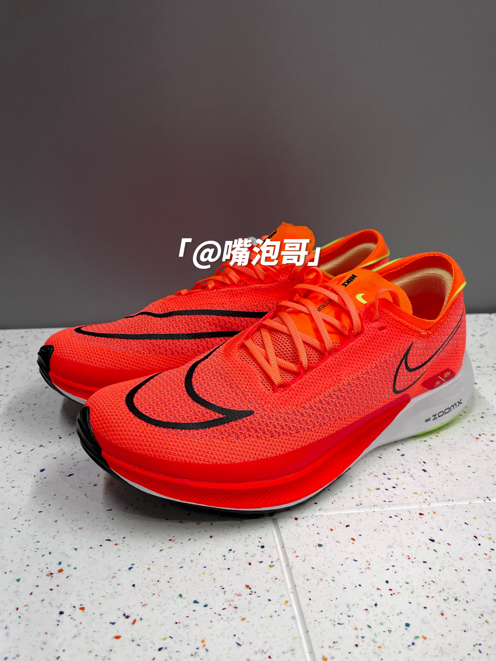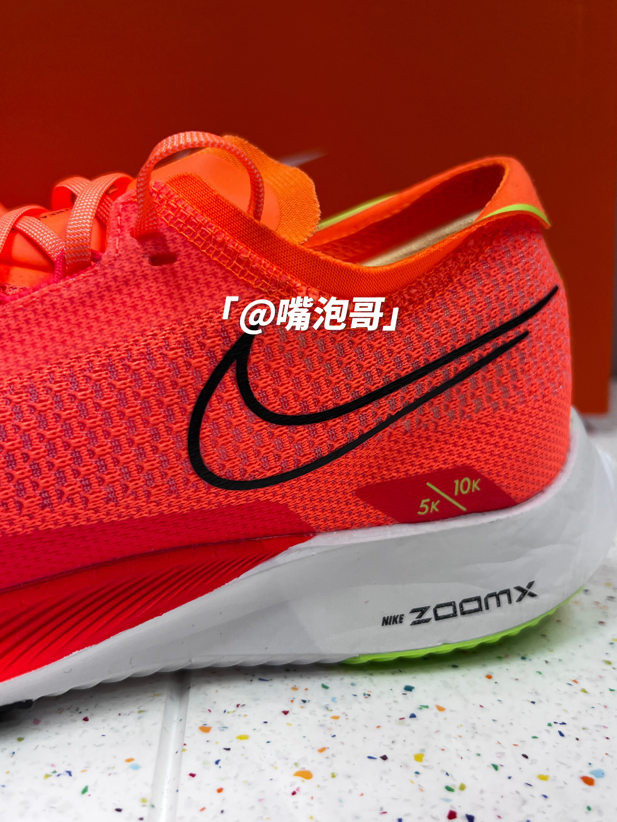 👟:ZoomX Streakfly 橙色 简介: 鞋款是一双具有良好脚感的跑步鞋,整双鞋子的外套配色选用了橙红色来呈现,使鞋款整体更具活力感,在细节处又加入了黑色、白色、绿色等颜色装饰,鞋子选用了多种轻质材料制作鞋面,搭配上柔软的ZoomX中底,不仅使整体重量减轻,同时又提升了脚感。 细节: 鞋面采用了复合织物材料制作而成,很是轻薄,使鞋面重量减轻,同时又有比较好的透气性,鞋舌为复合网眼...